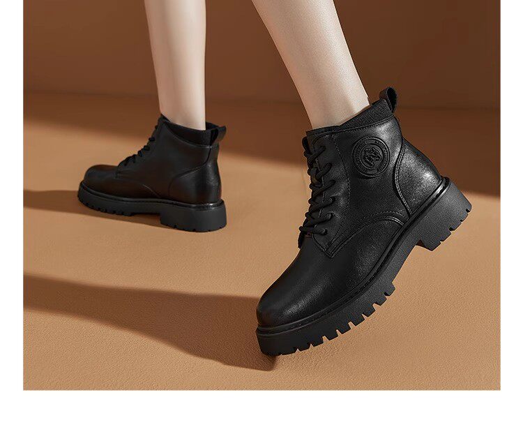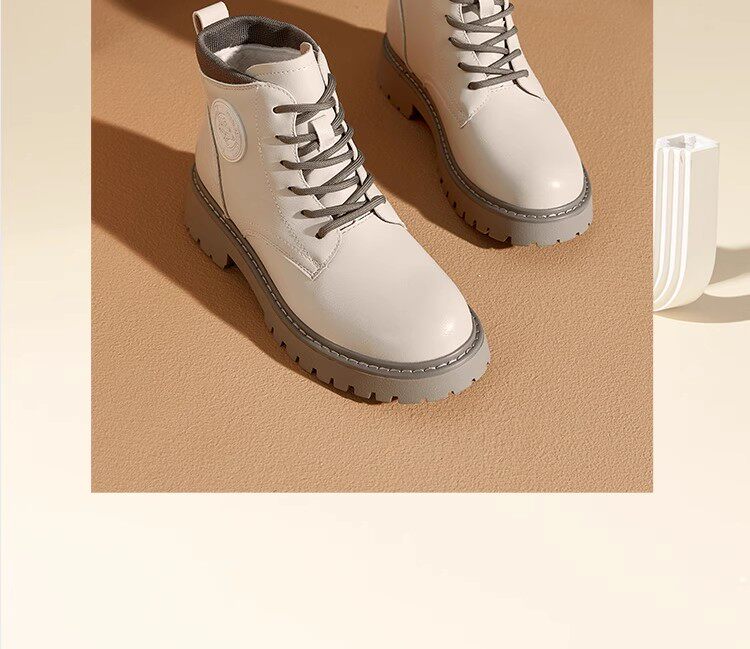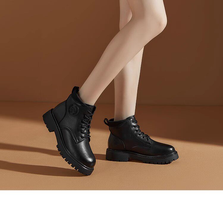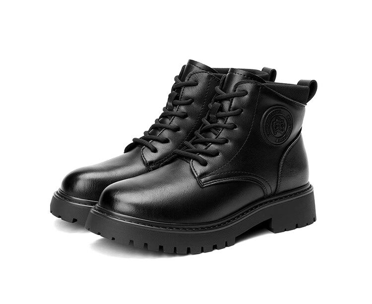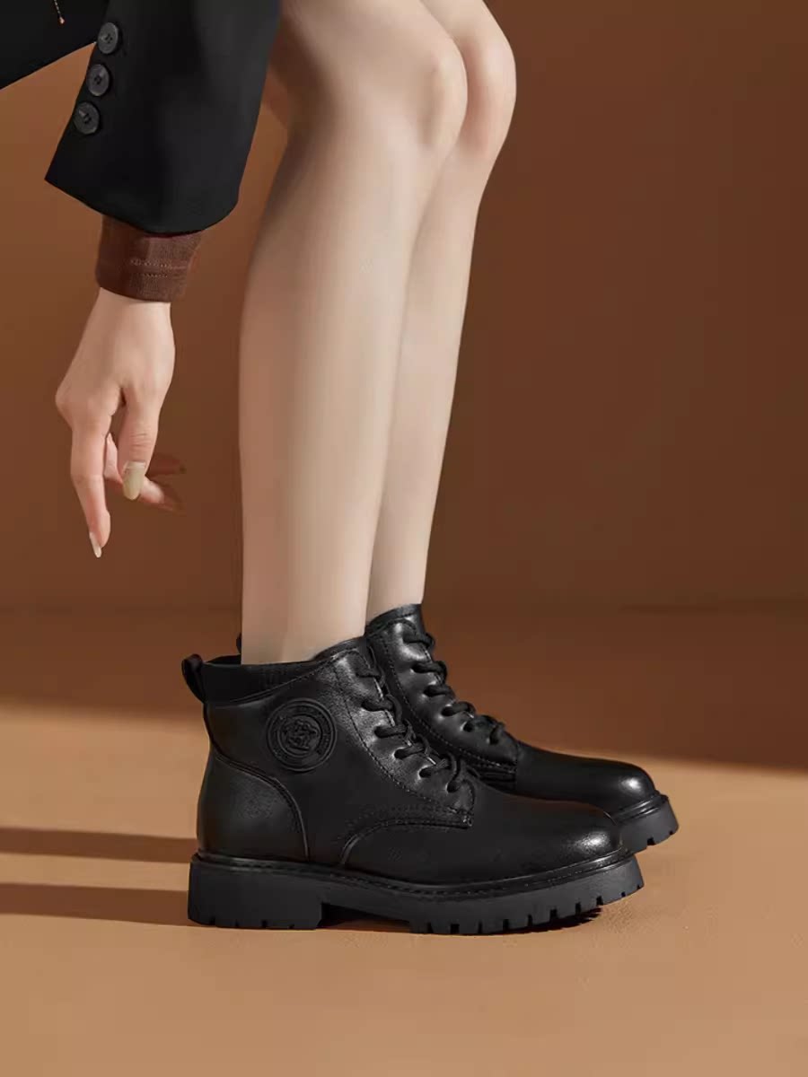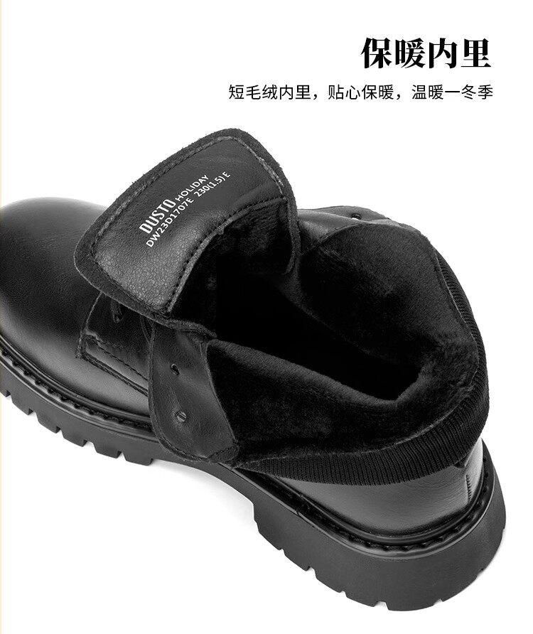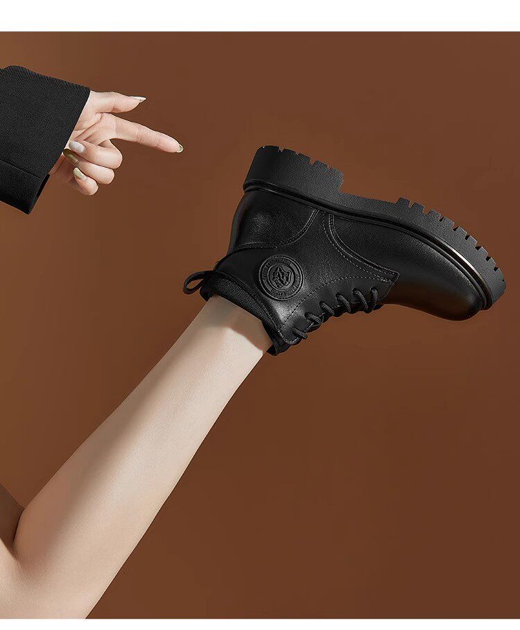 大東23冬季新款韓版圓頭粗跟系帶低筒戶外短馬丁潮靴女鞋23D1707
