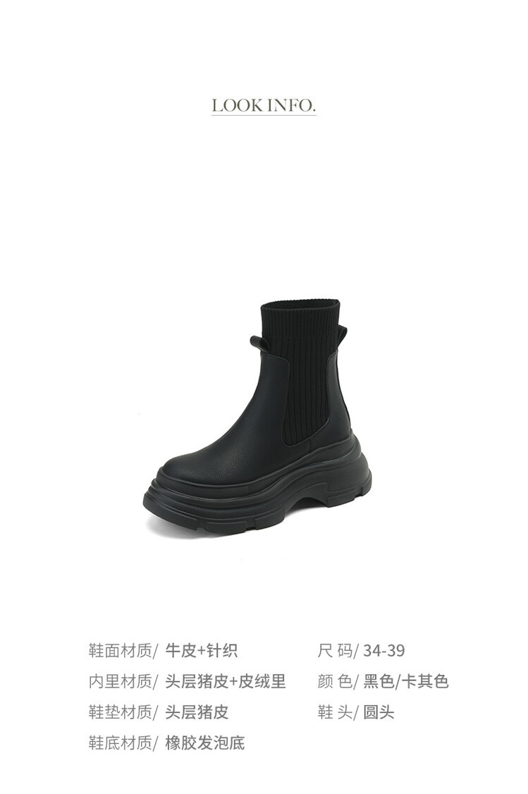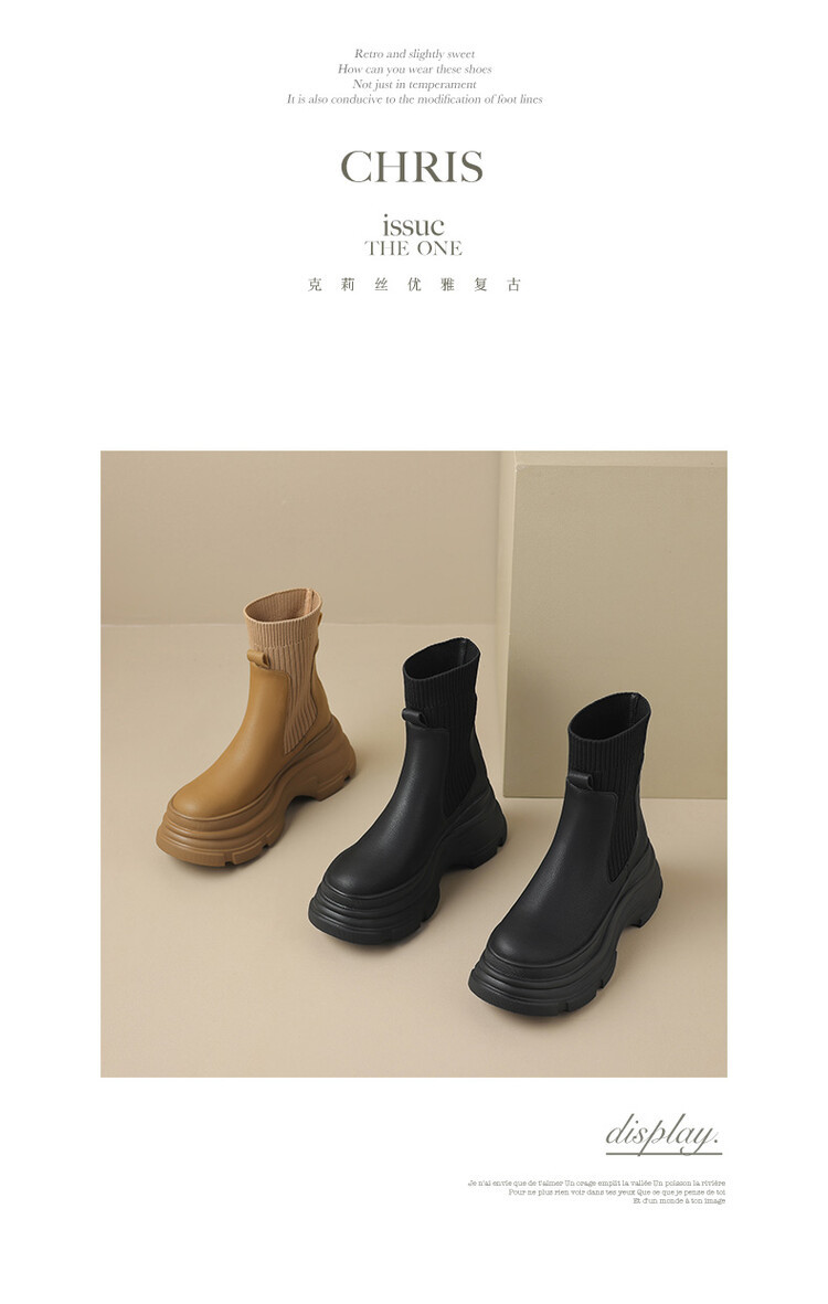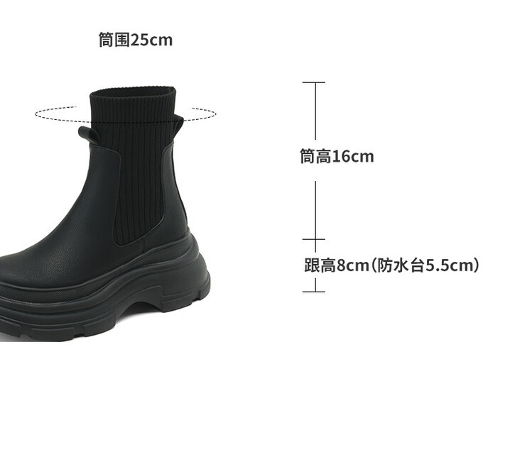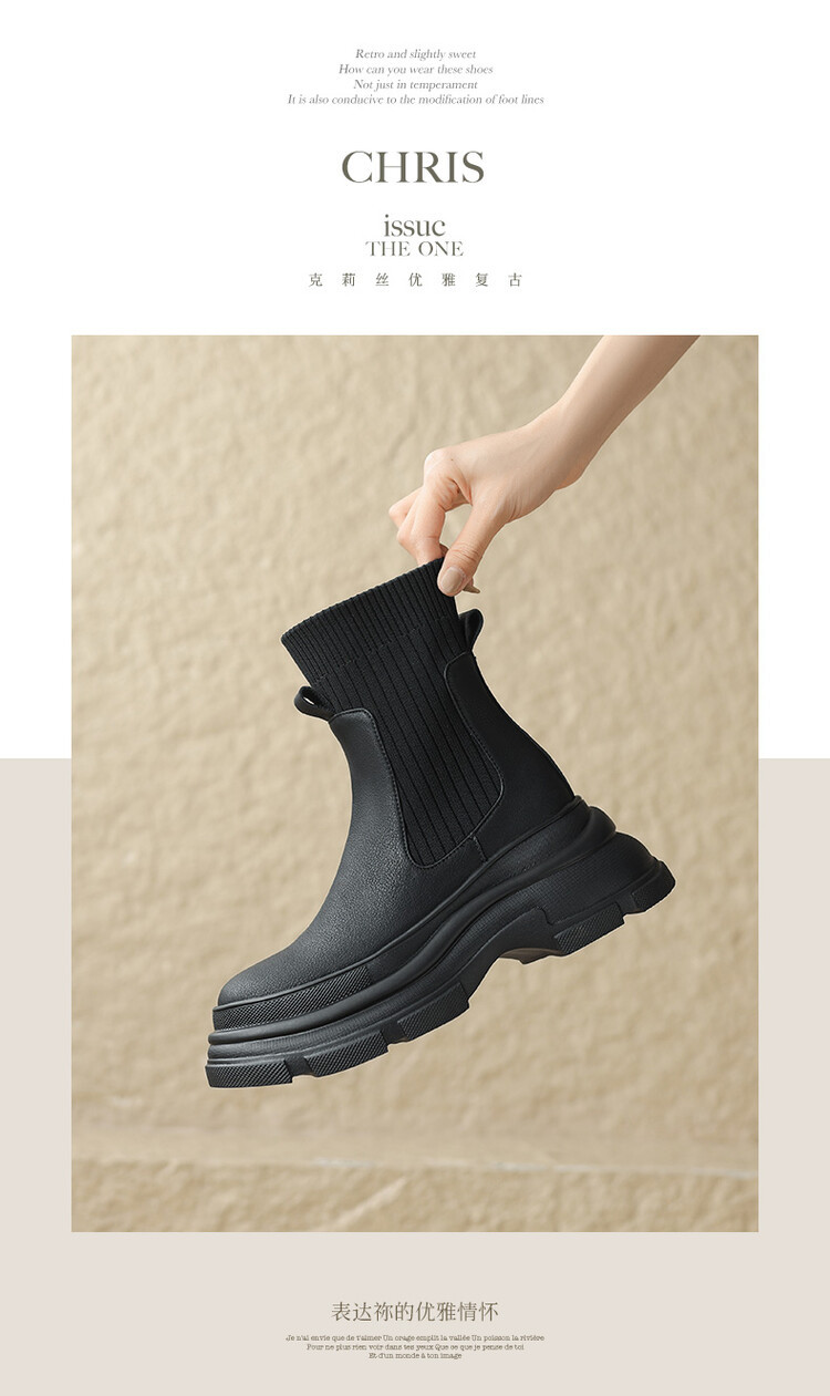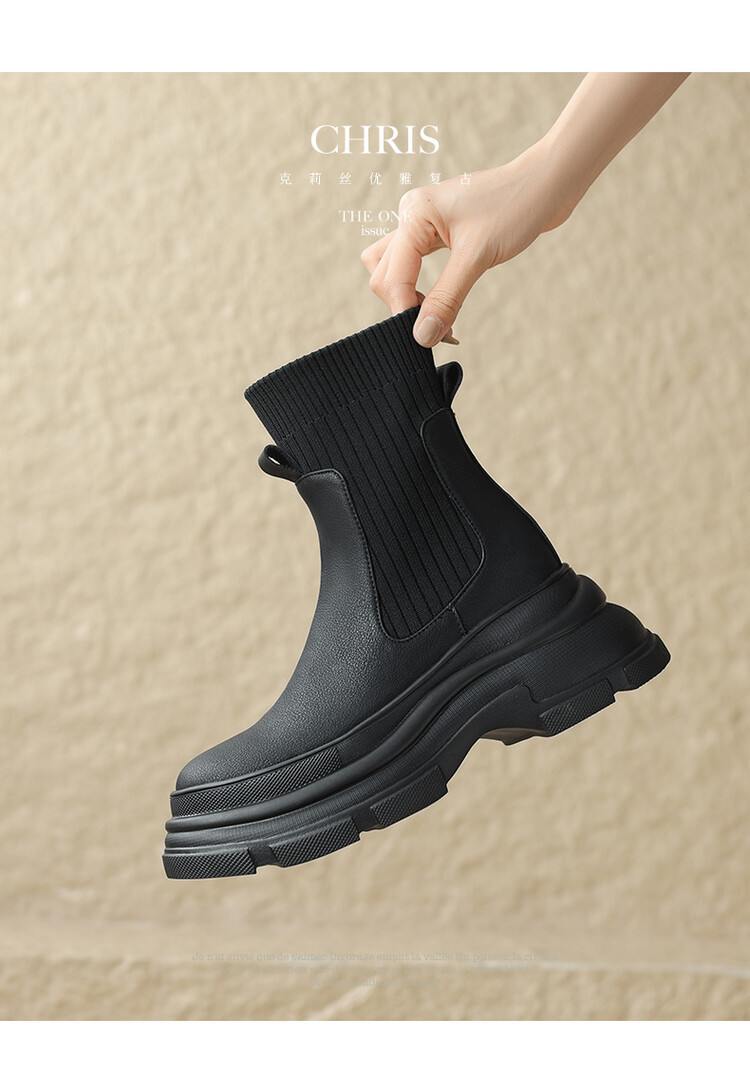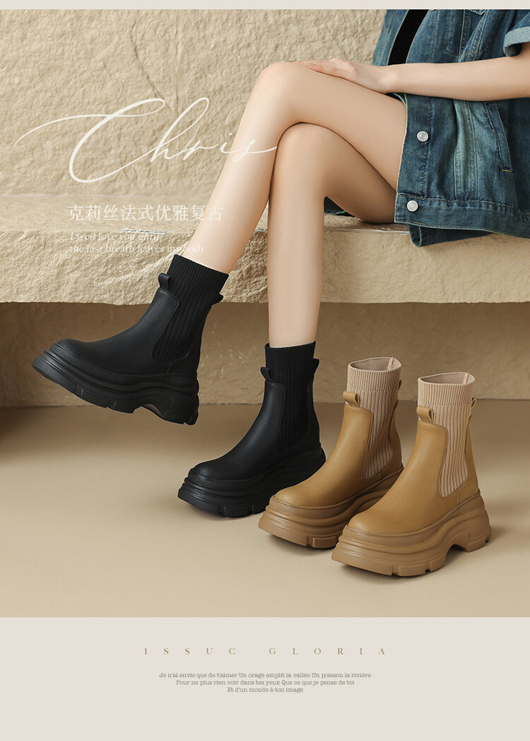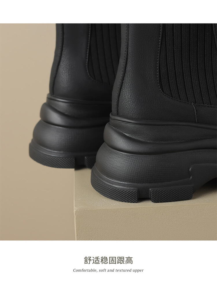 厚底短靴女2026年秋冬季新款英倫風毛線口松糕底靴子小個子彈力靴