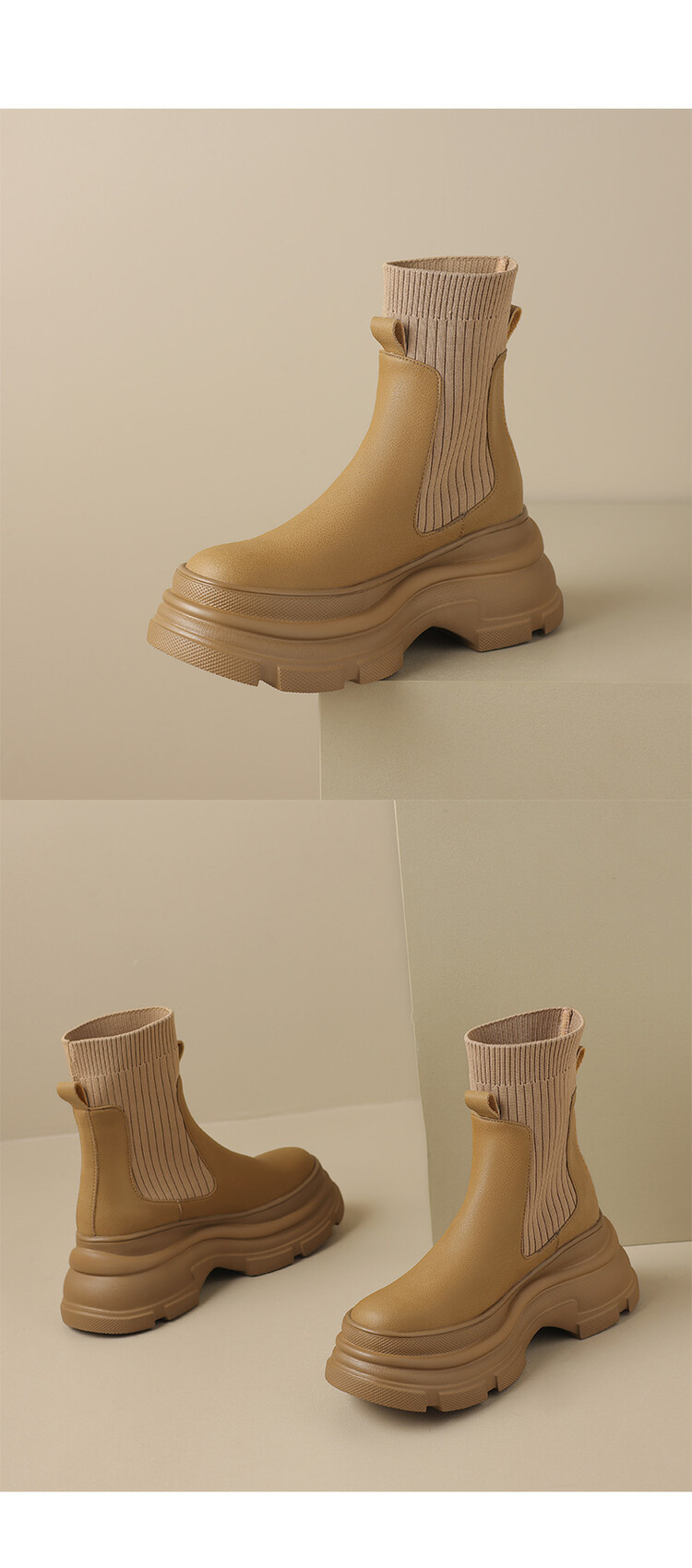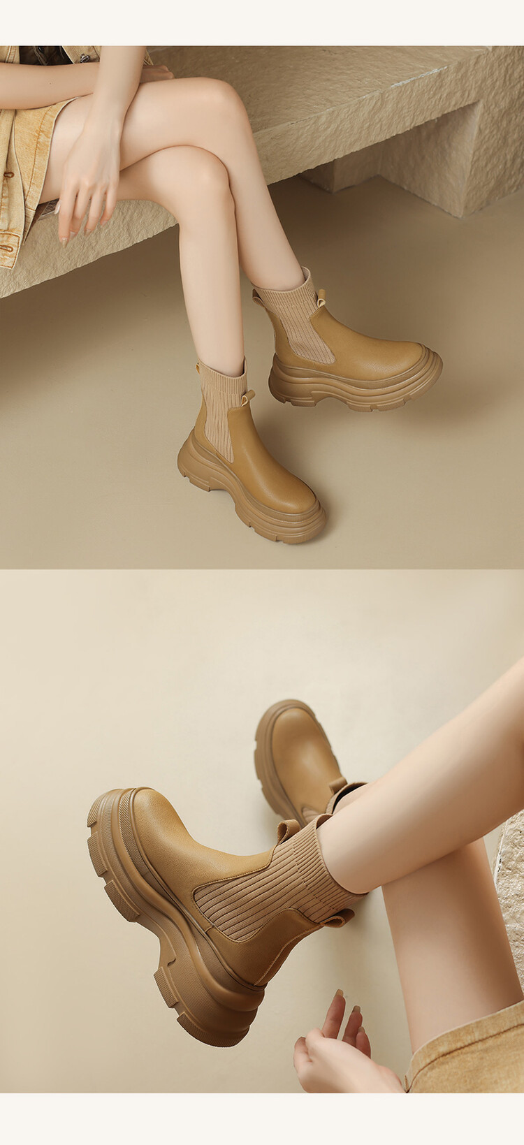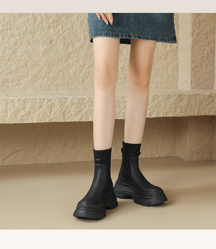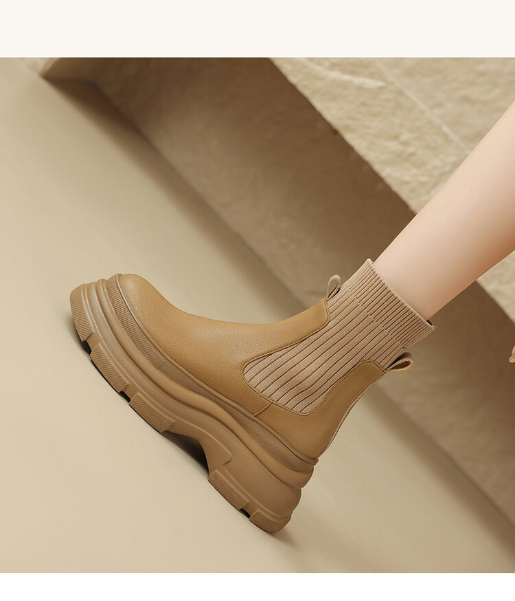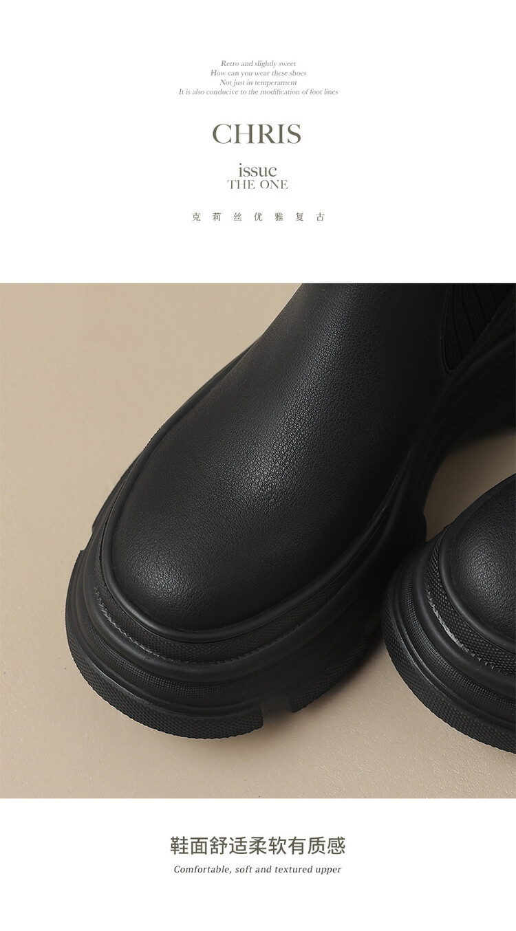 厚底短靴女2026年秋冬季新款英倫風毛線口松糕底靴子小個子彈力靴