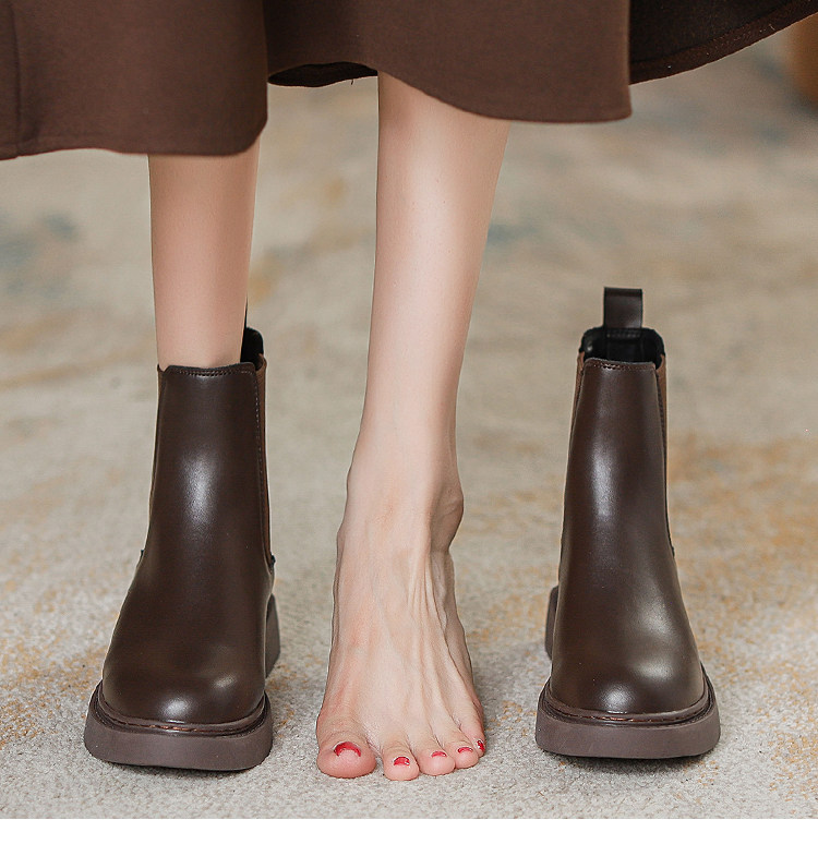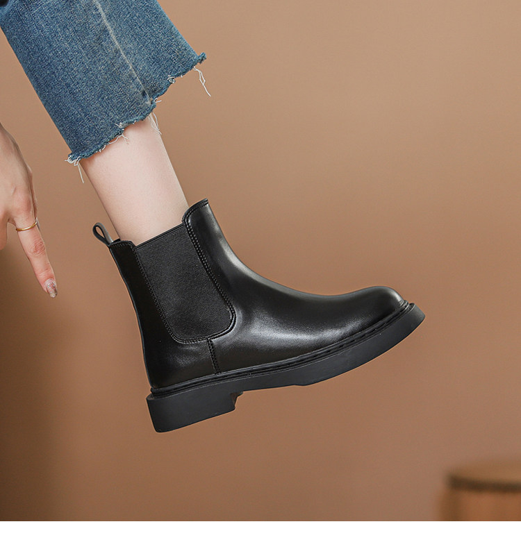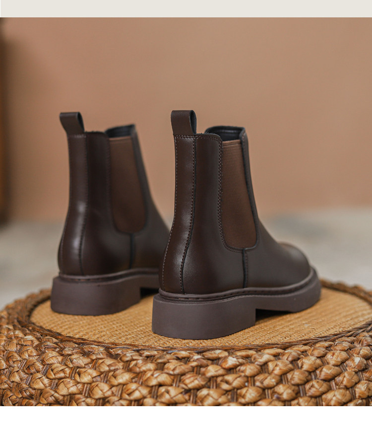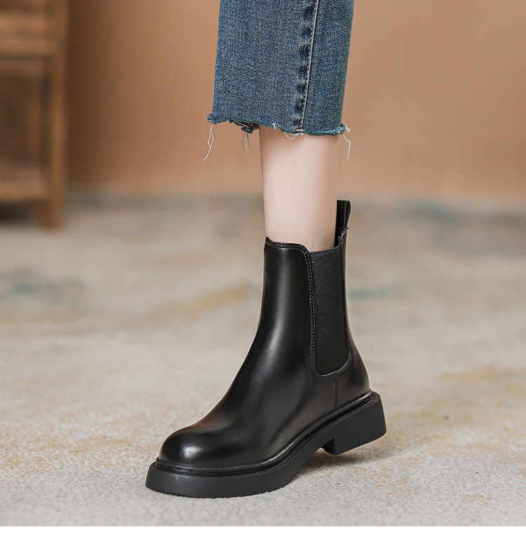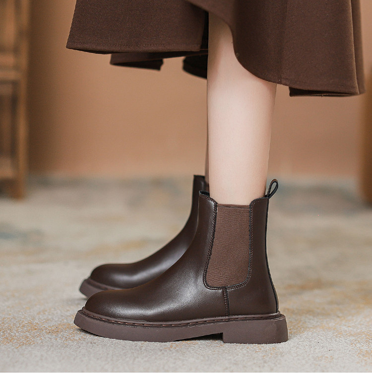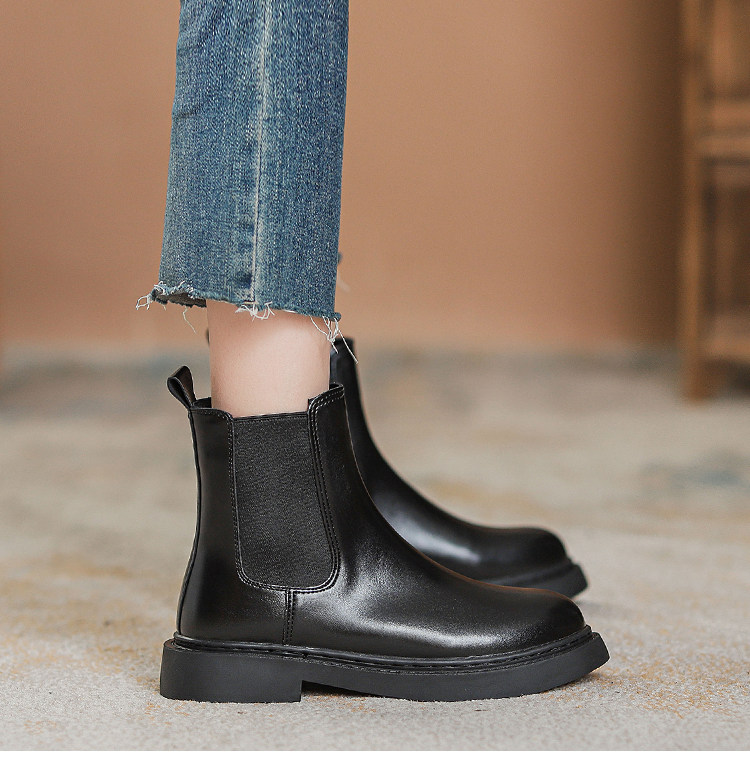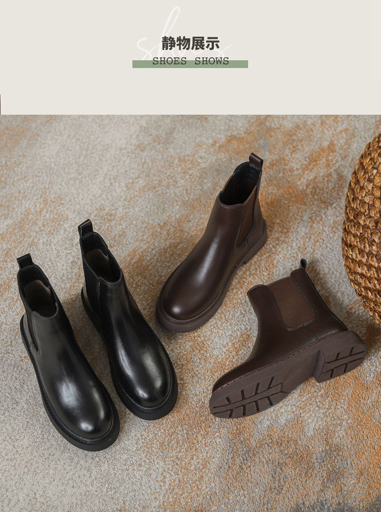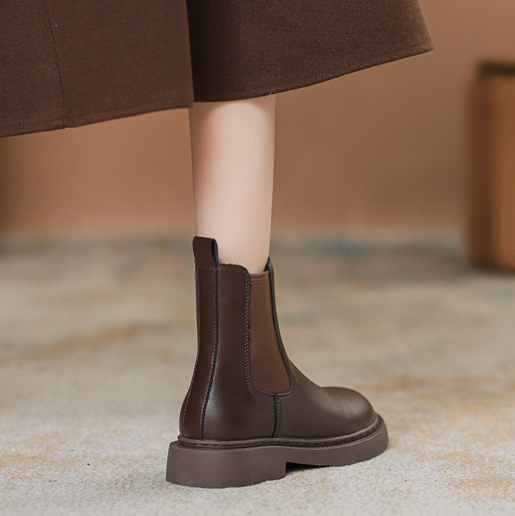 真皮切爾西菸筒靴子2026年新款秋冬加絨厚底短筒靴馬丁靴女英倫風