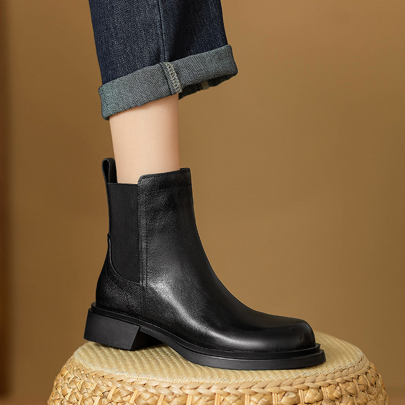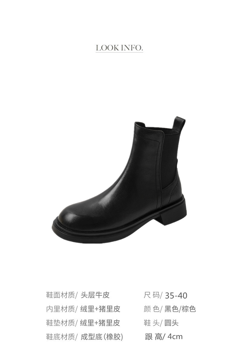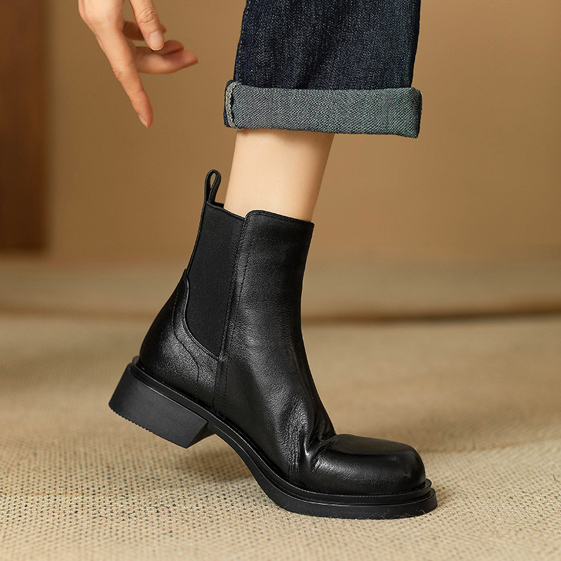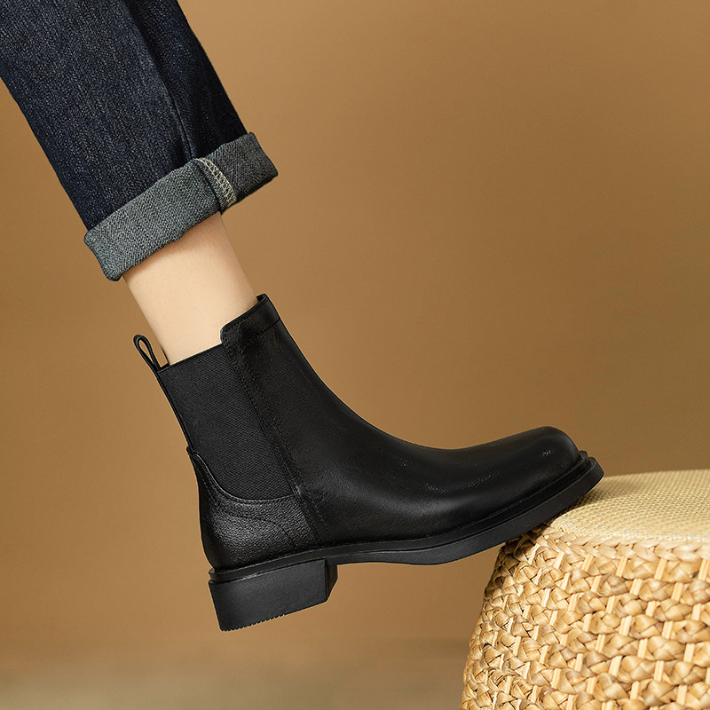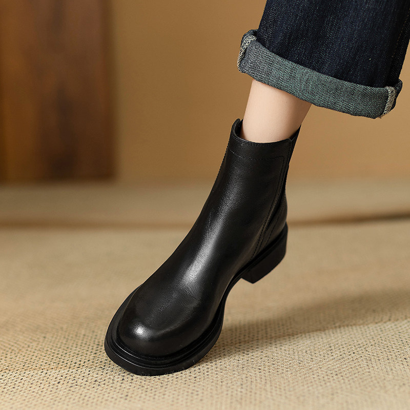 巨軟英倫風復古真皮圓頭馬丁靴女春秋單靴百搭舒適中跟切爾西短靴