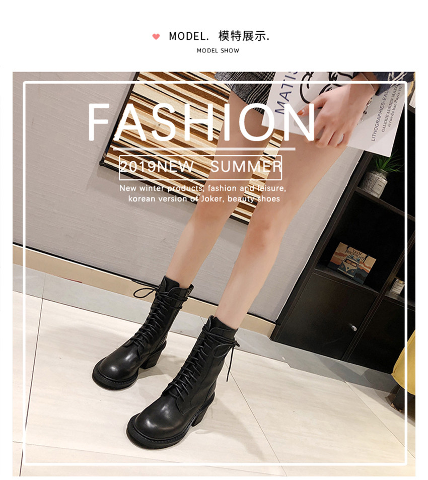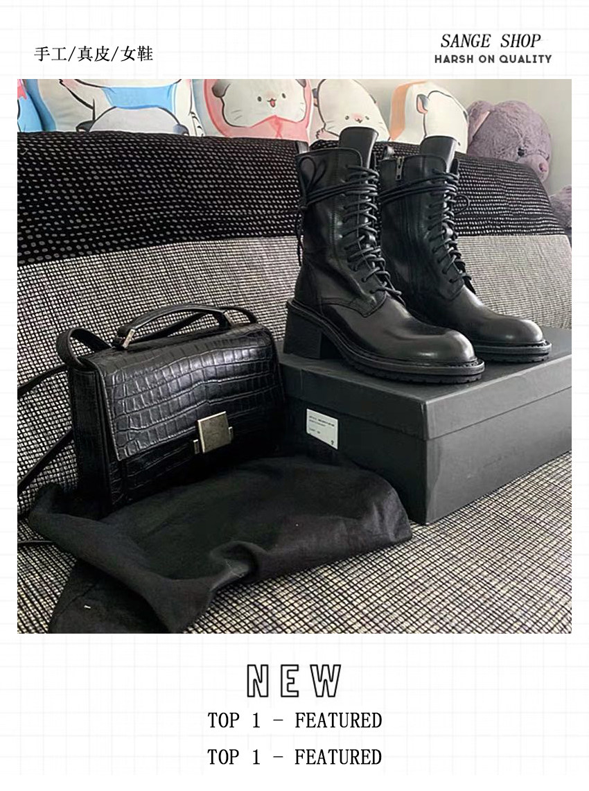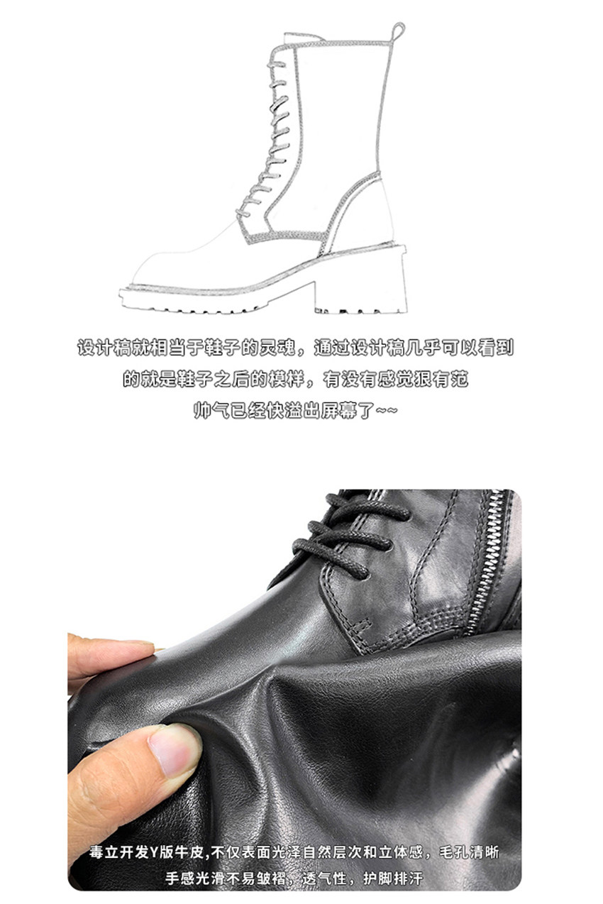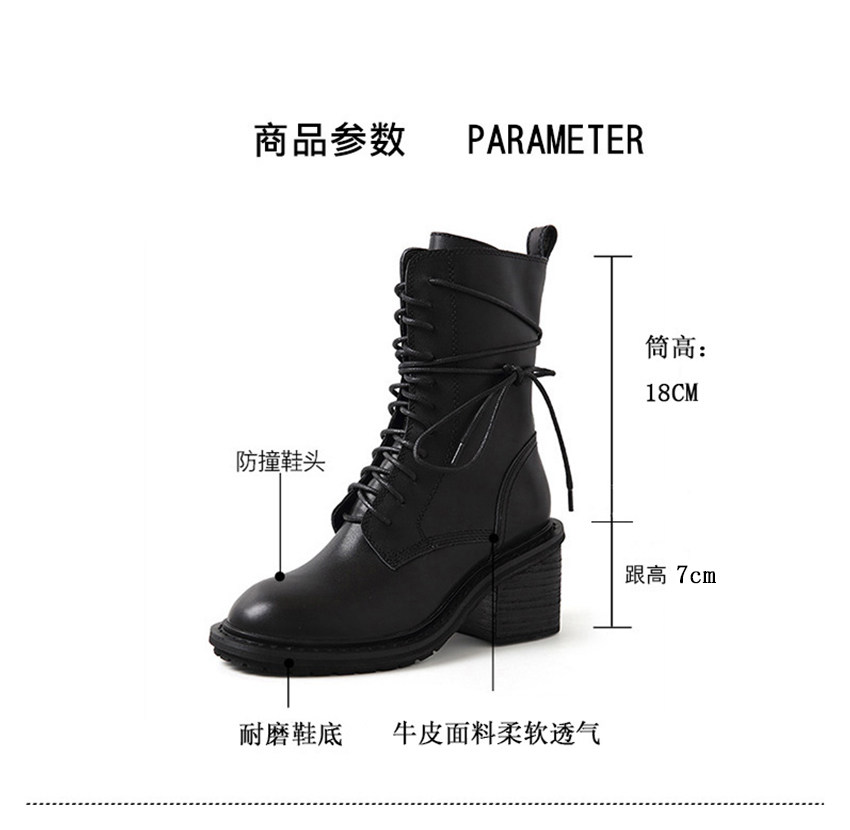 牛皮版~2026春秋新款ANN短靴女真皮顯瘦高跟馬丁靴中筒機車靴子潮