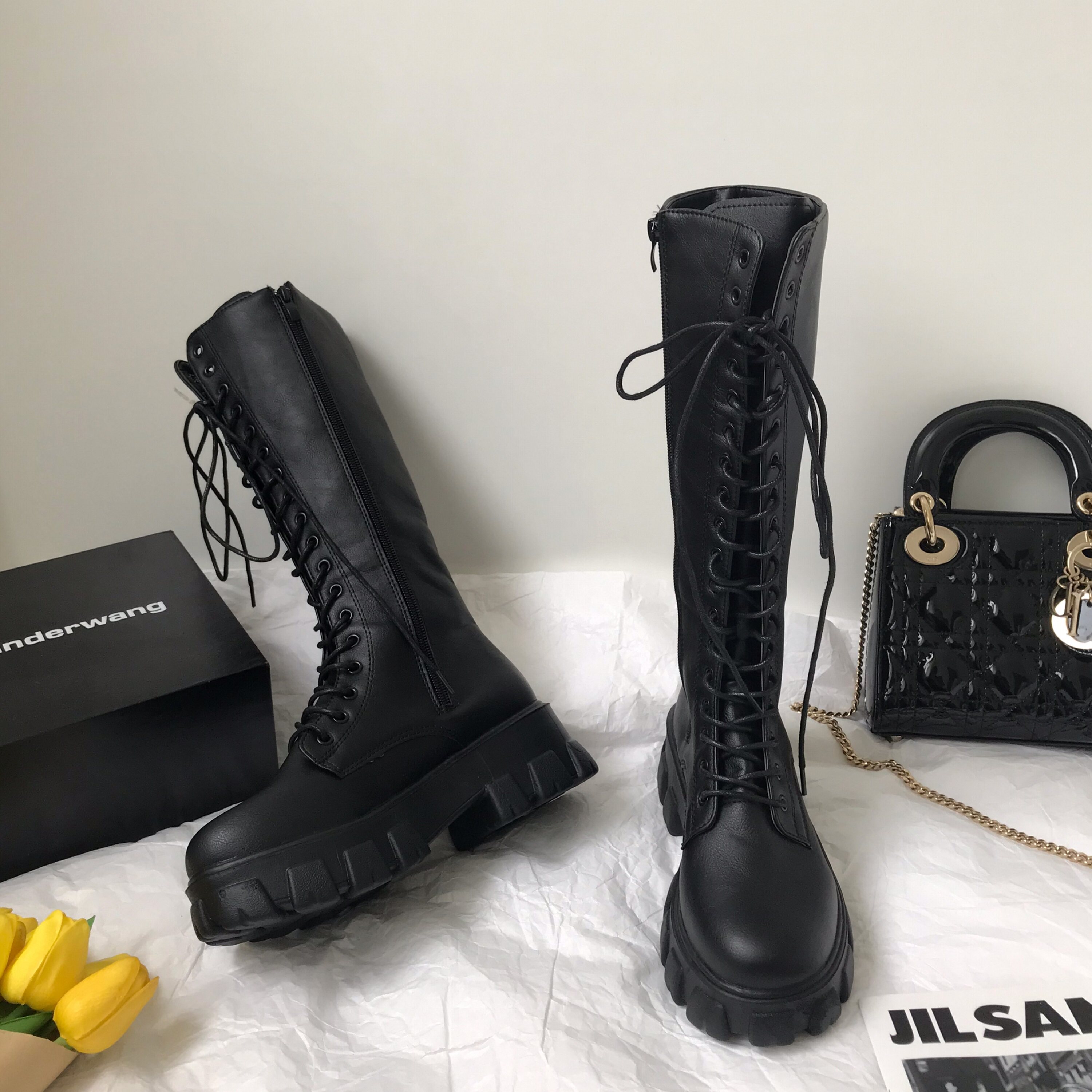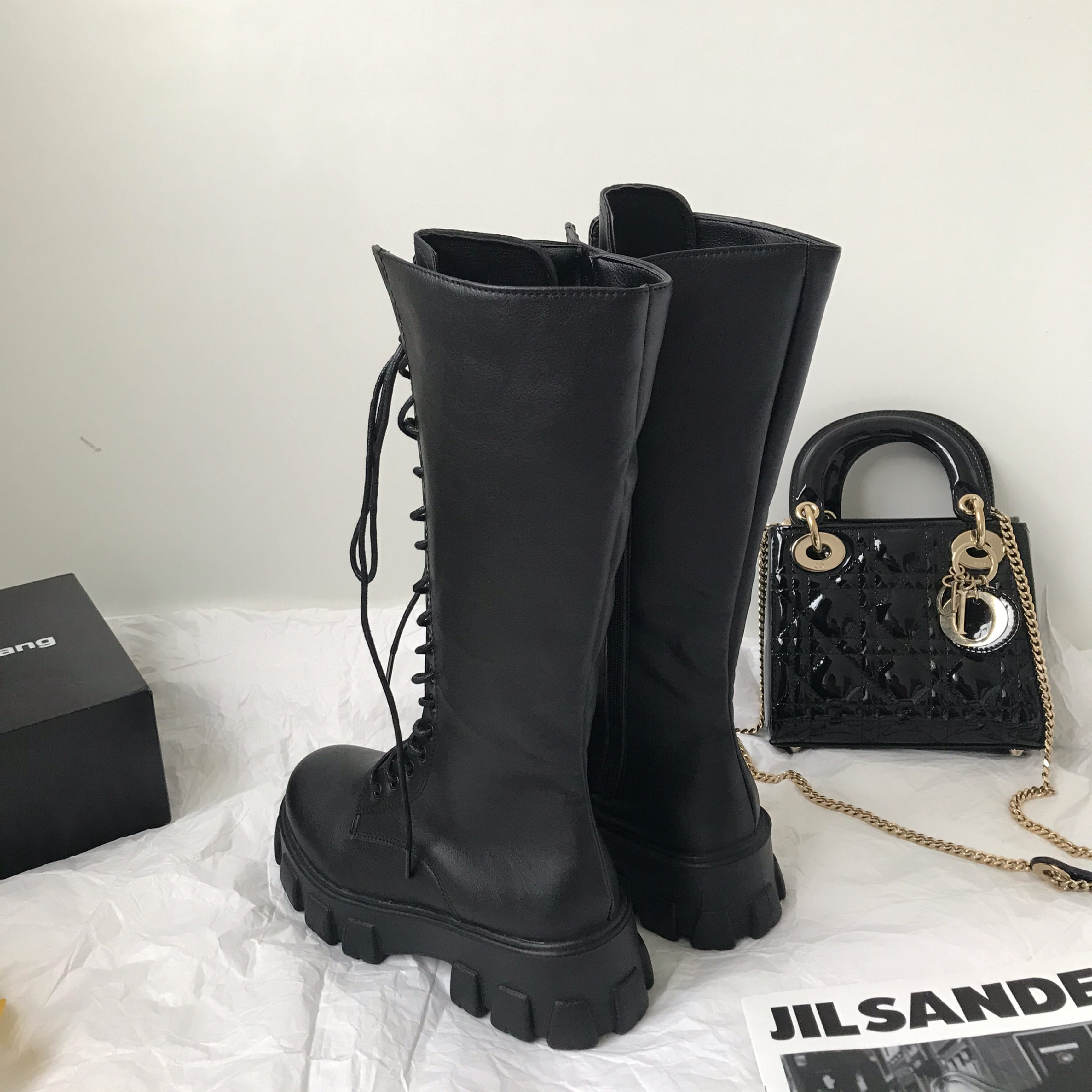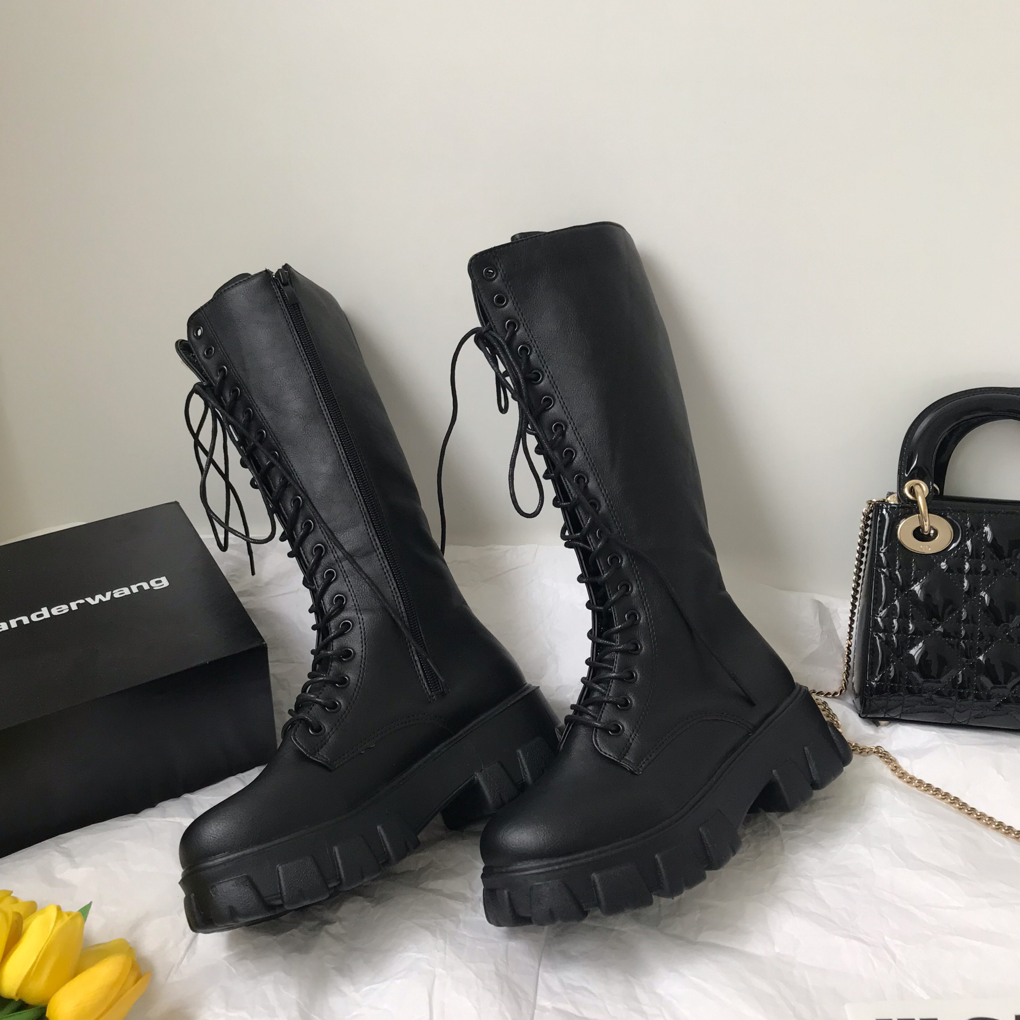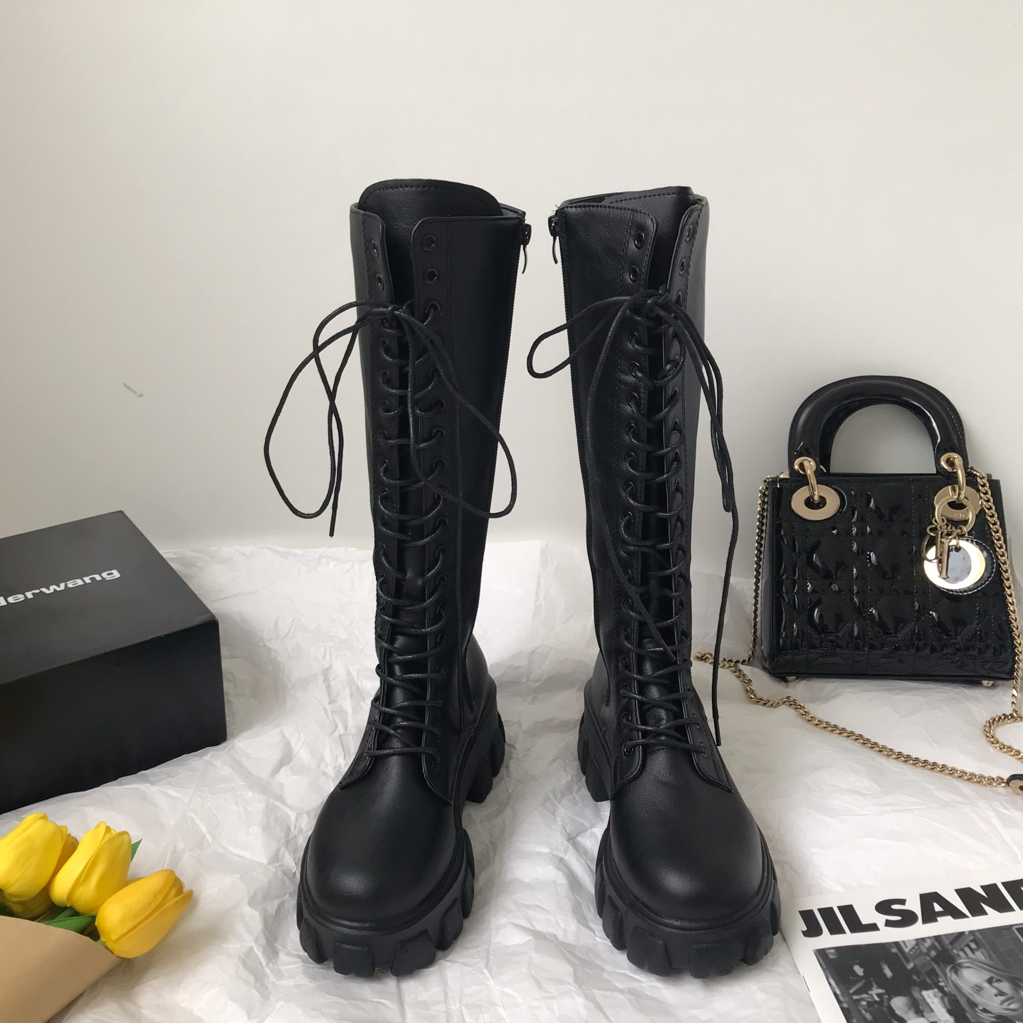 小sun家 韓版馬丁靴女春季單靴厚底不過膝高筒騎士機車大碼長筒靴