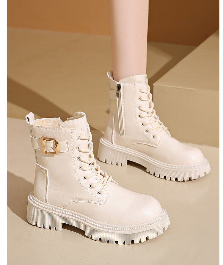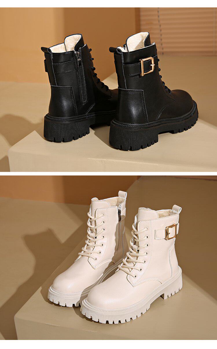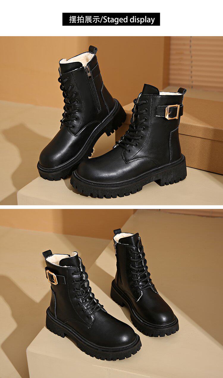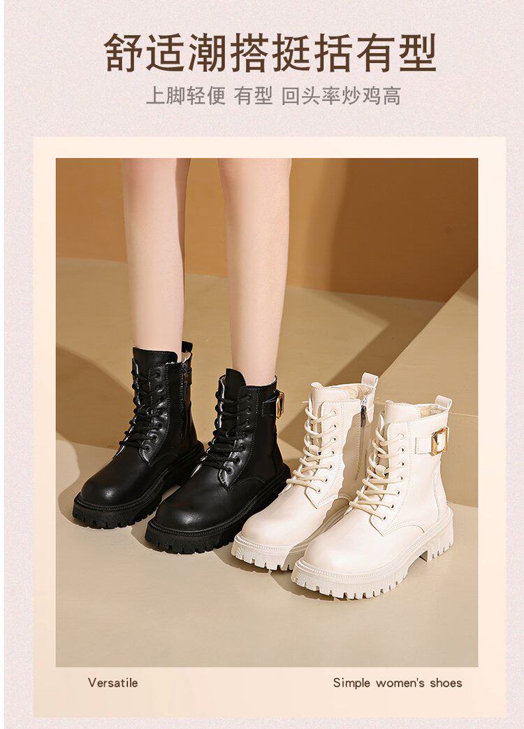 馬丁靴女款2024秋冬保暖舒適加絨靴子英倫風增高厚底機車靴大碼女