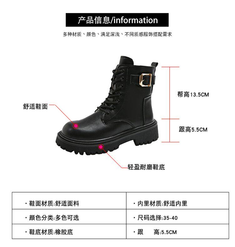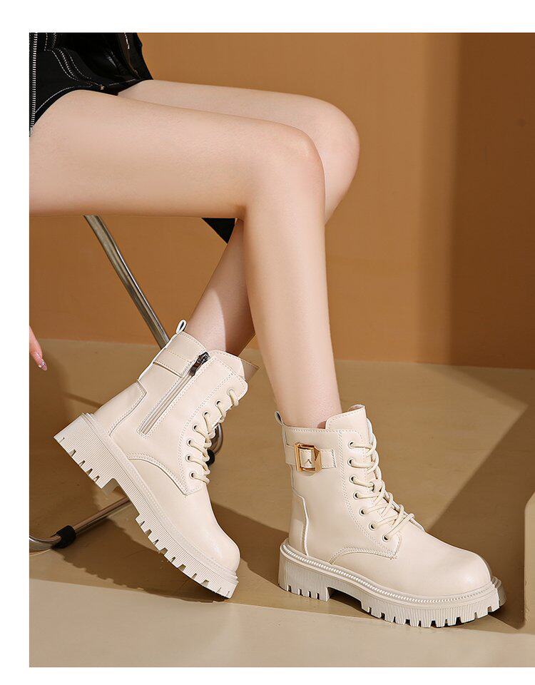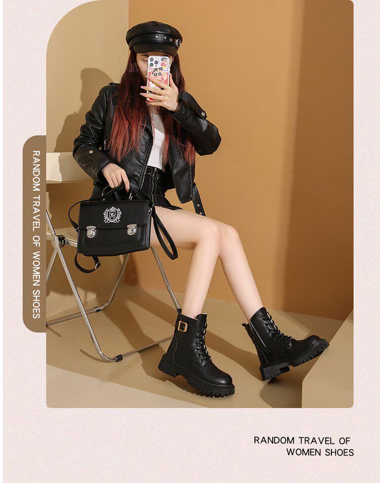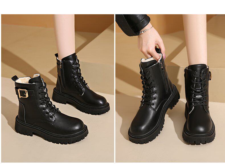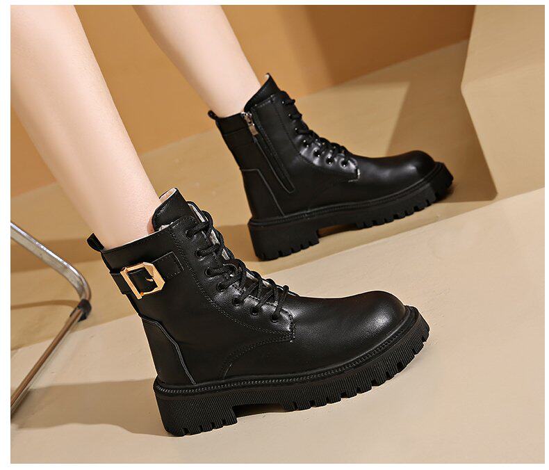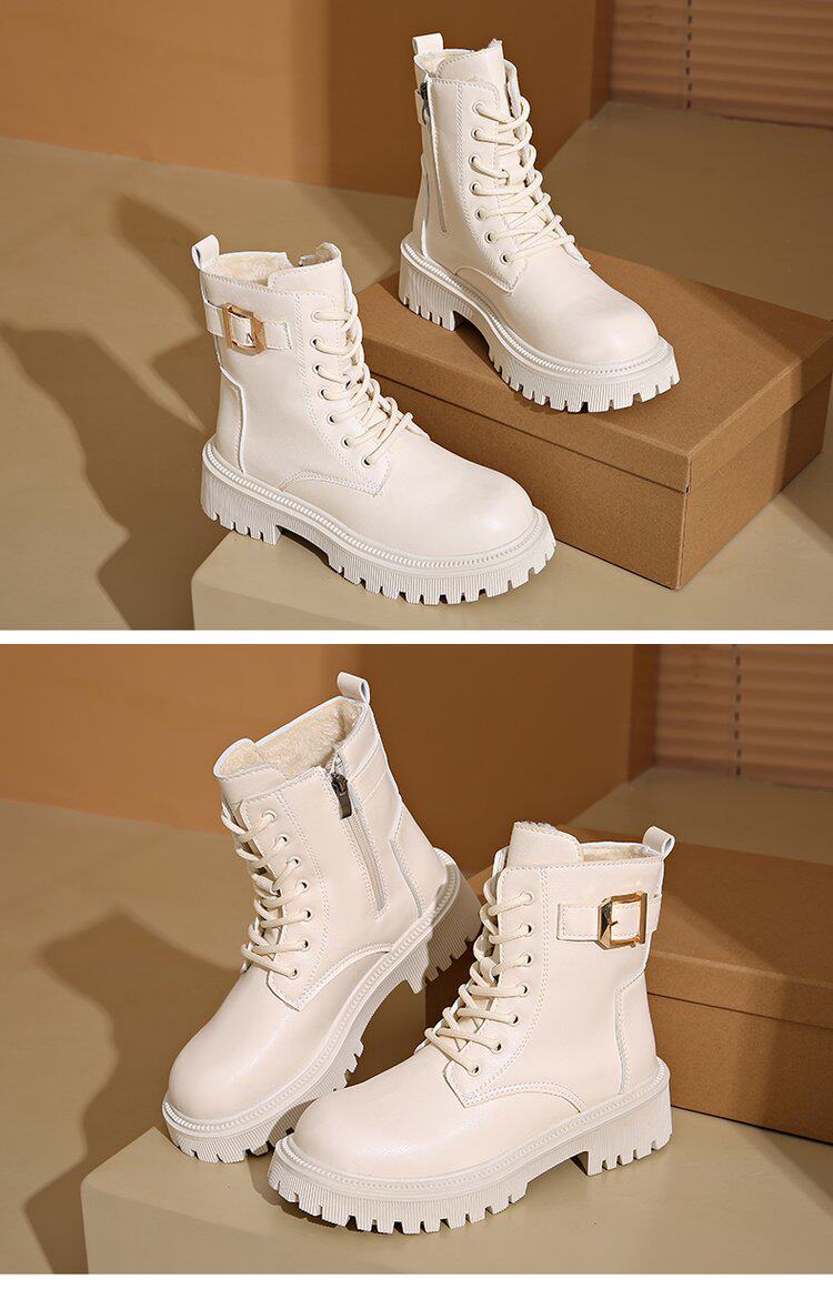 馬丁靴女款2024秋冬保暖舒適加絨靴子英倫風增高厚底機車靴大碼女