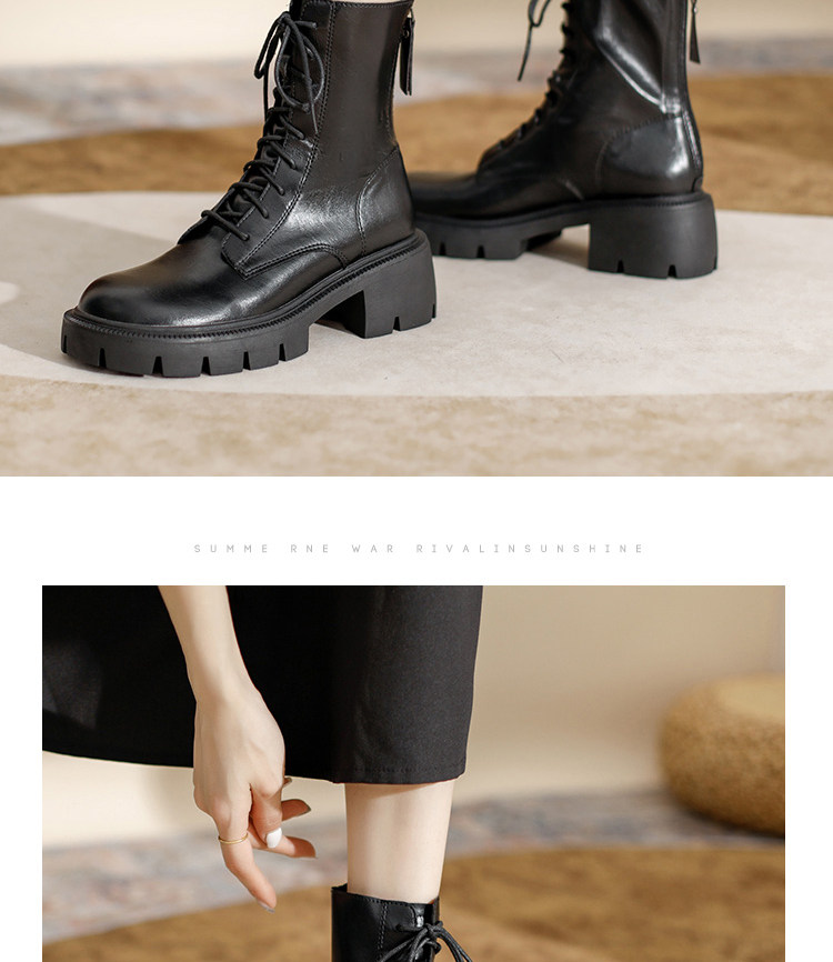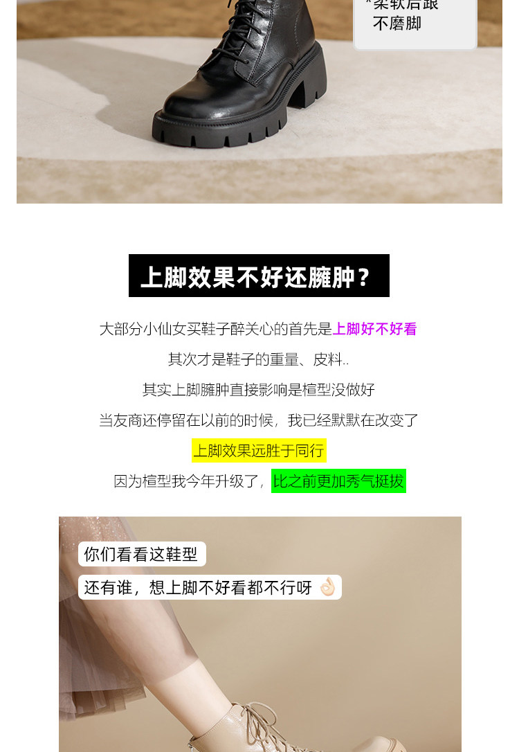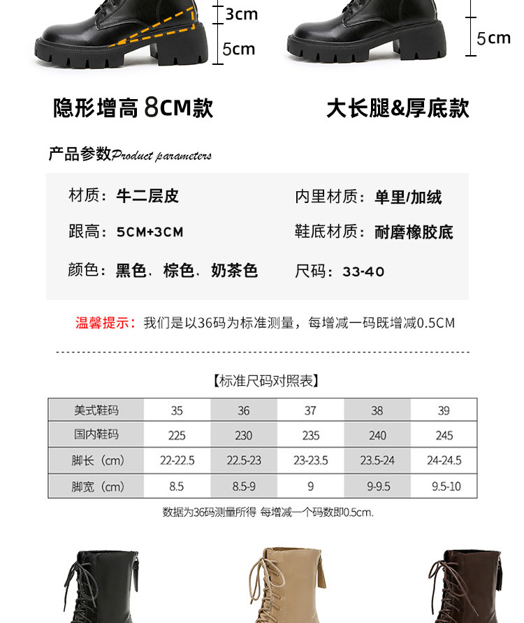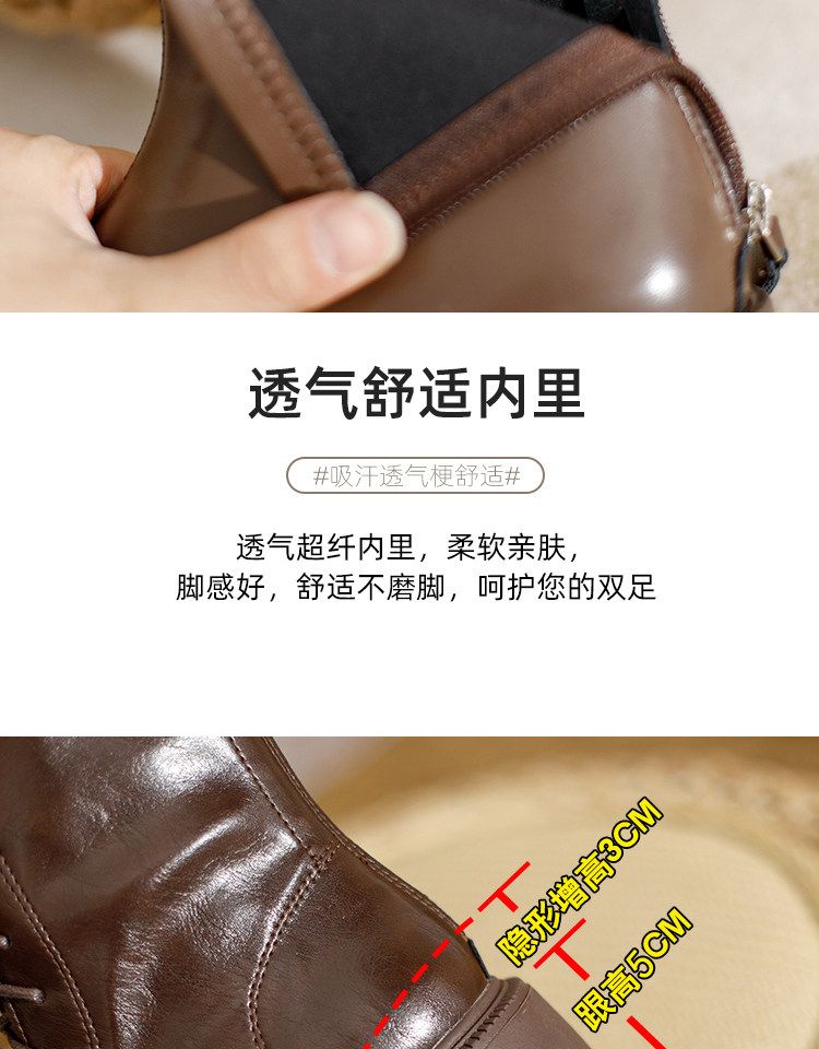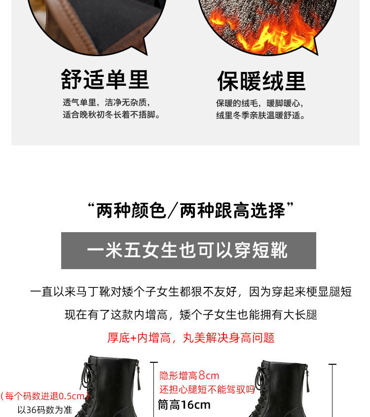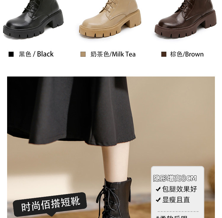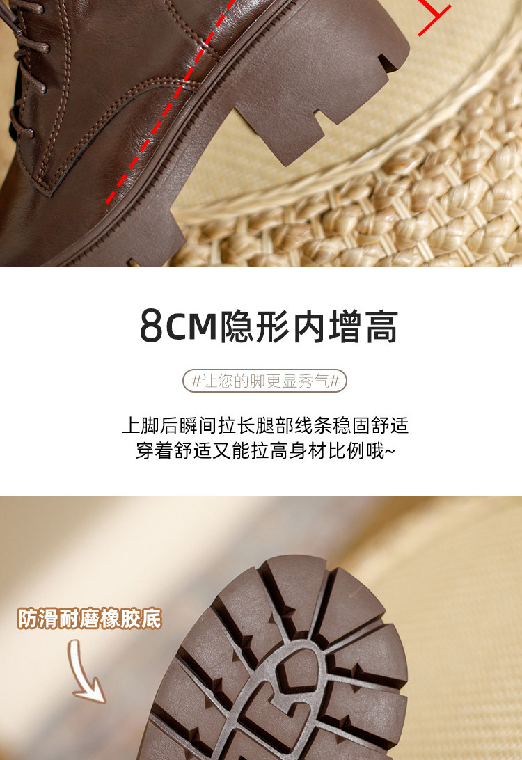 內增高短靴系帶粗跟厚底防水台馬丁靴小個子8CM真皮高跟秋冬單靴