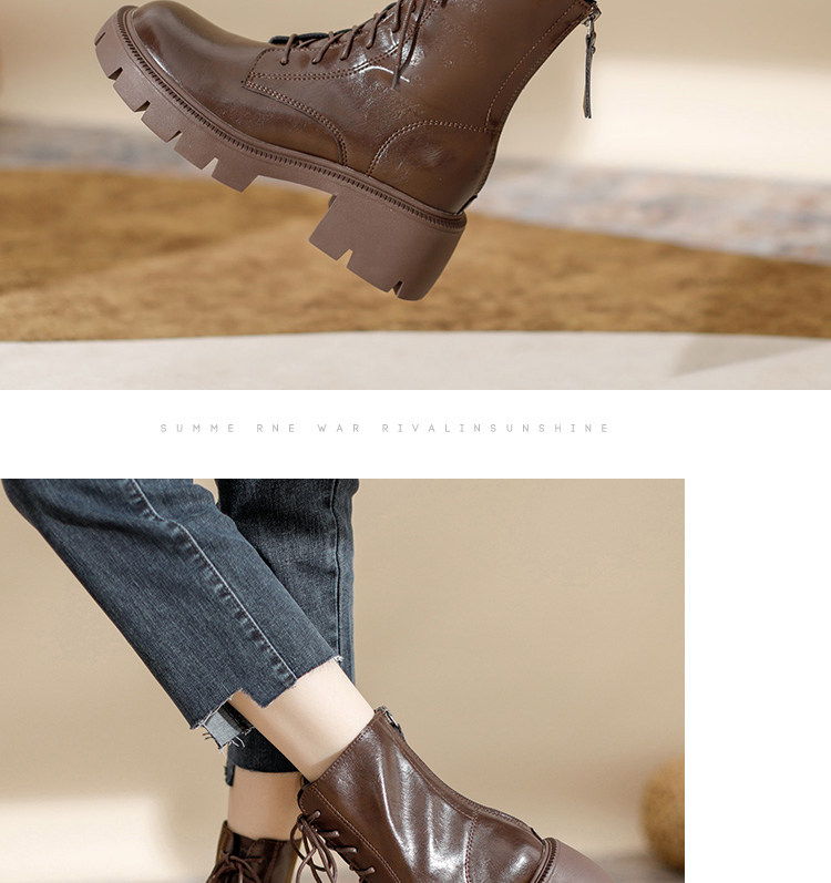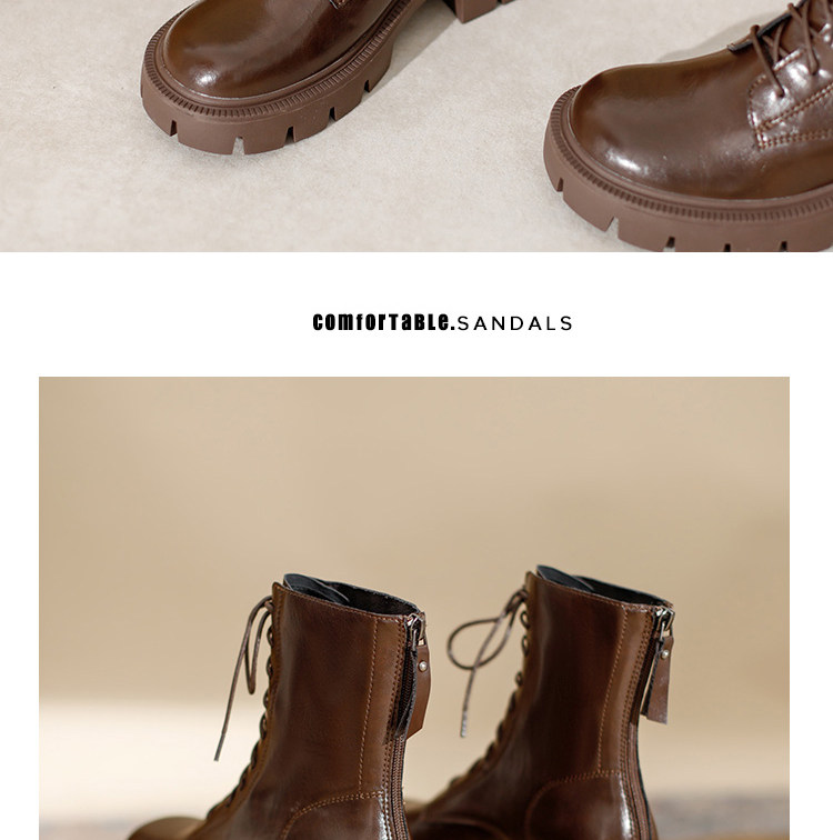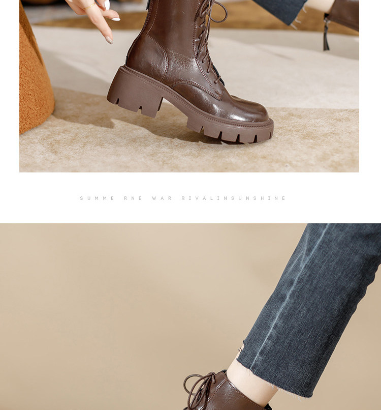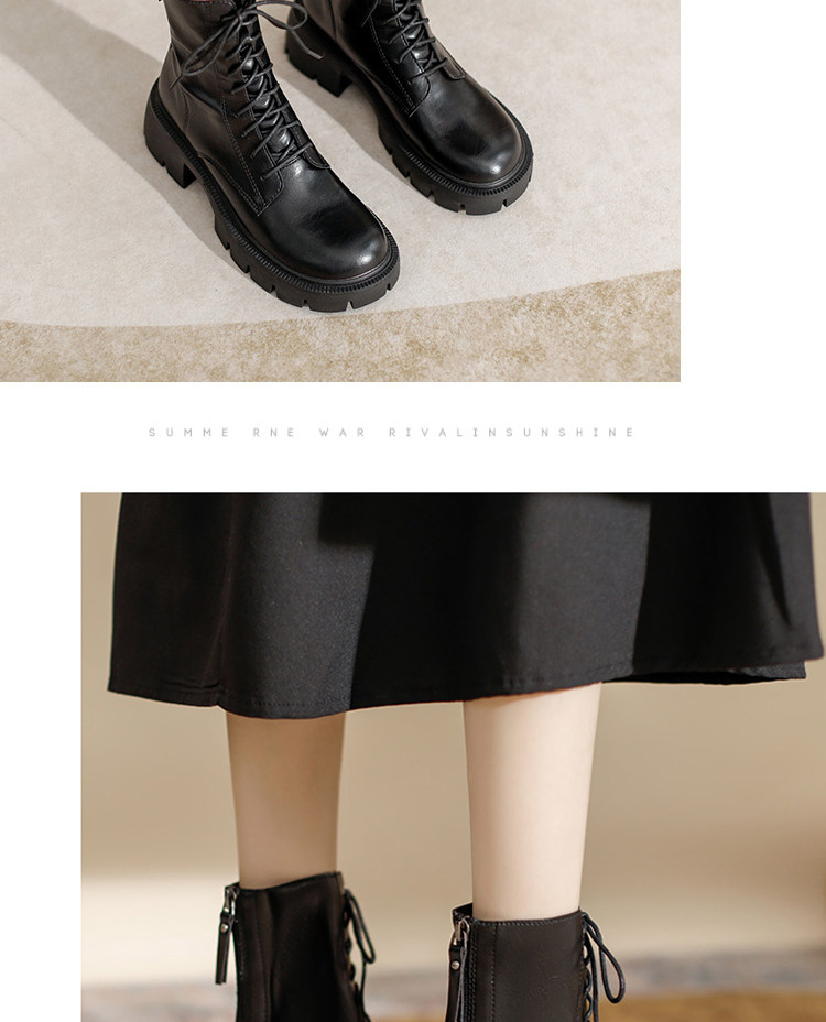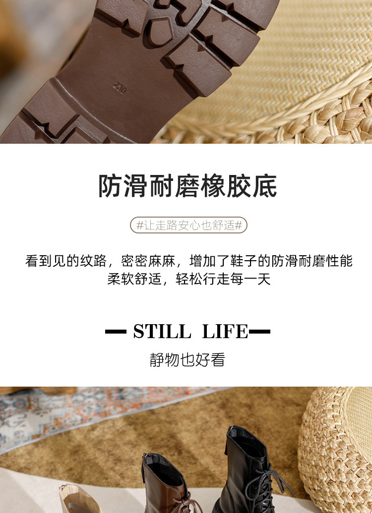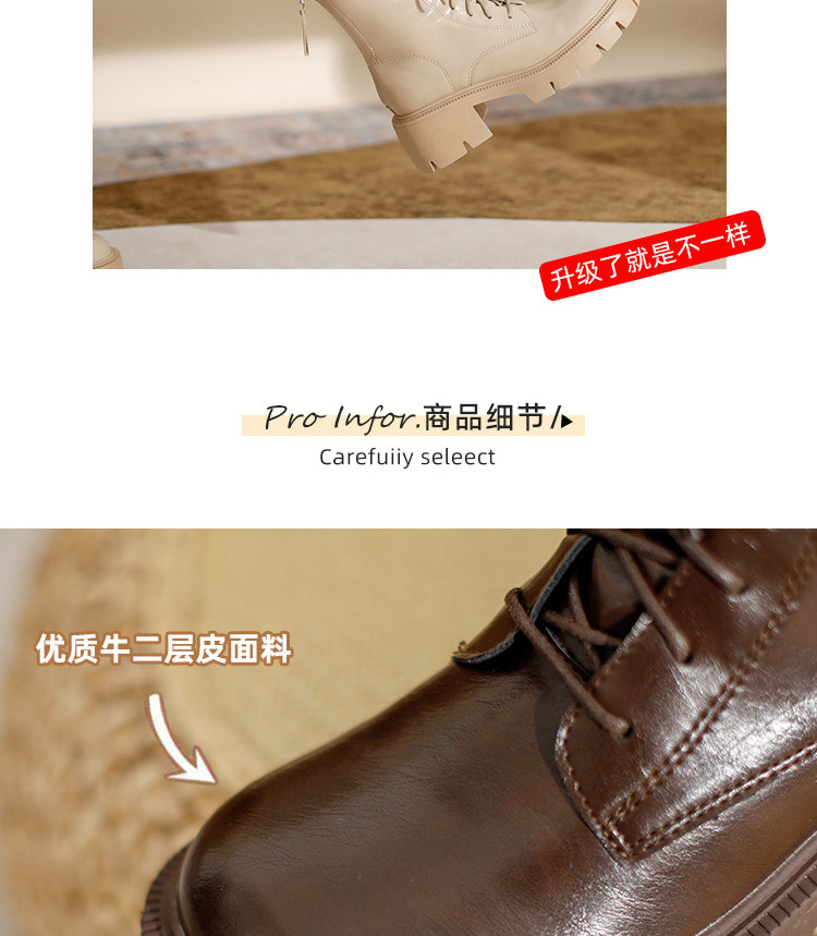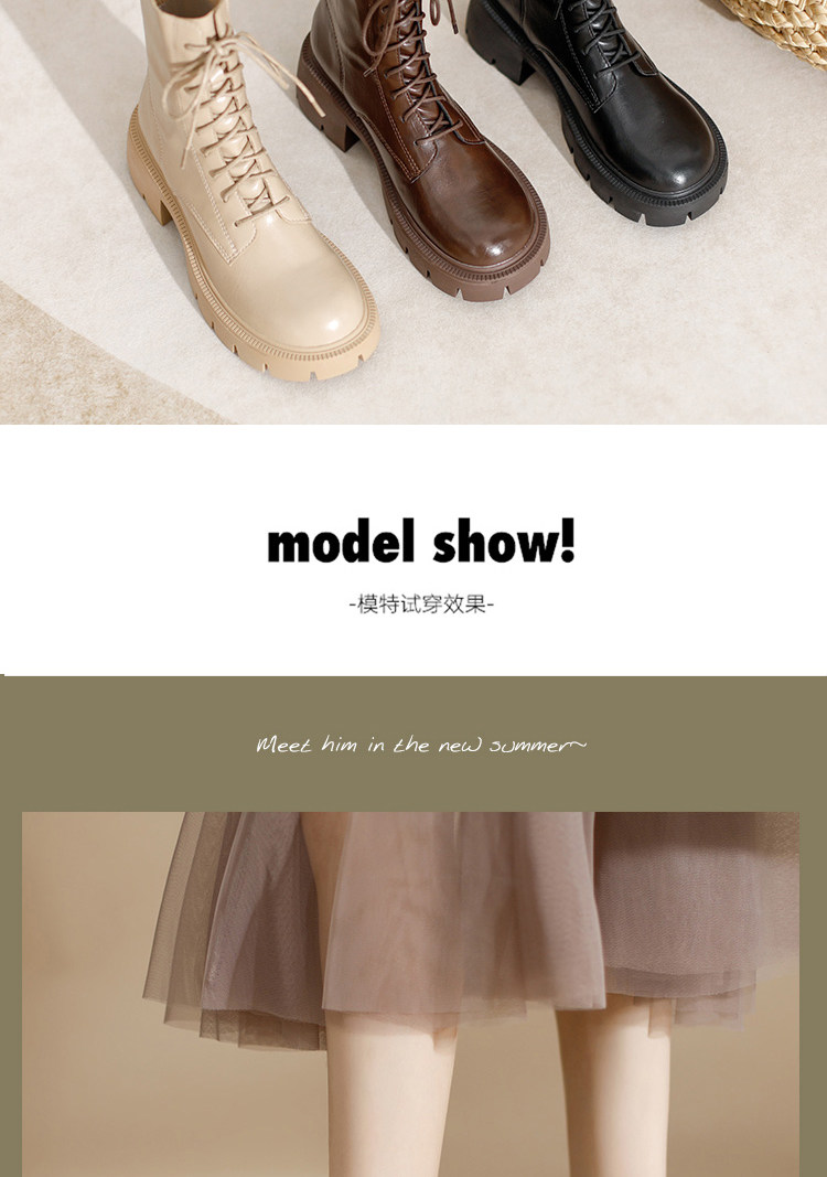 內增高短靴系帶粗跟厚底防水台馬丁靴小個子8CM真皮高跟秋冬單靴