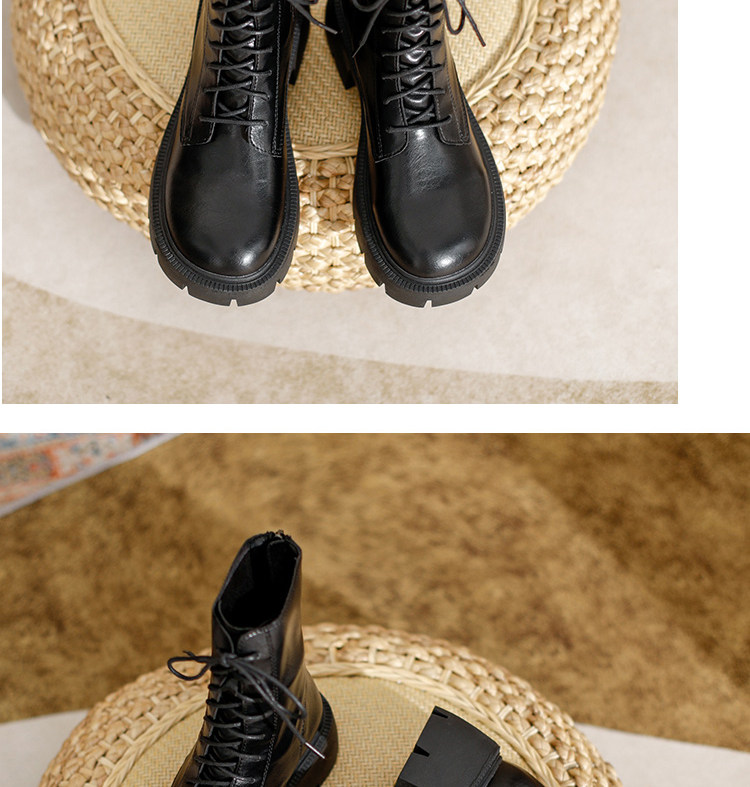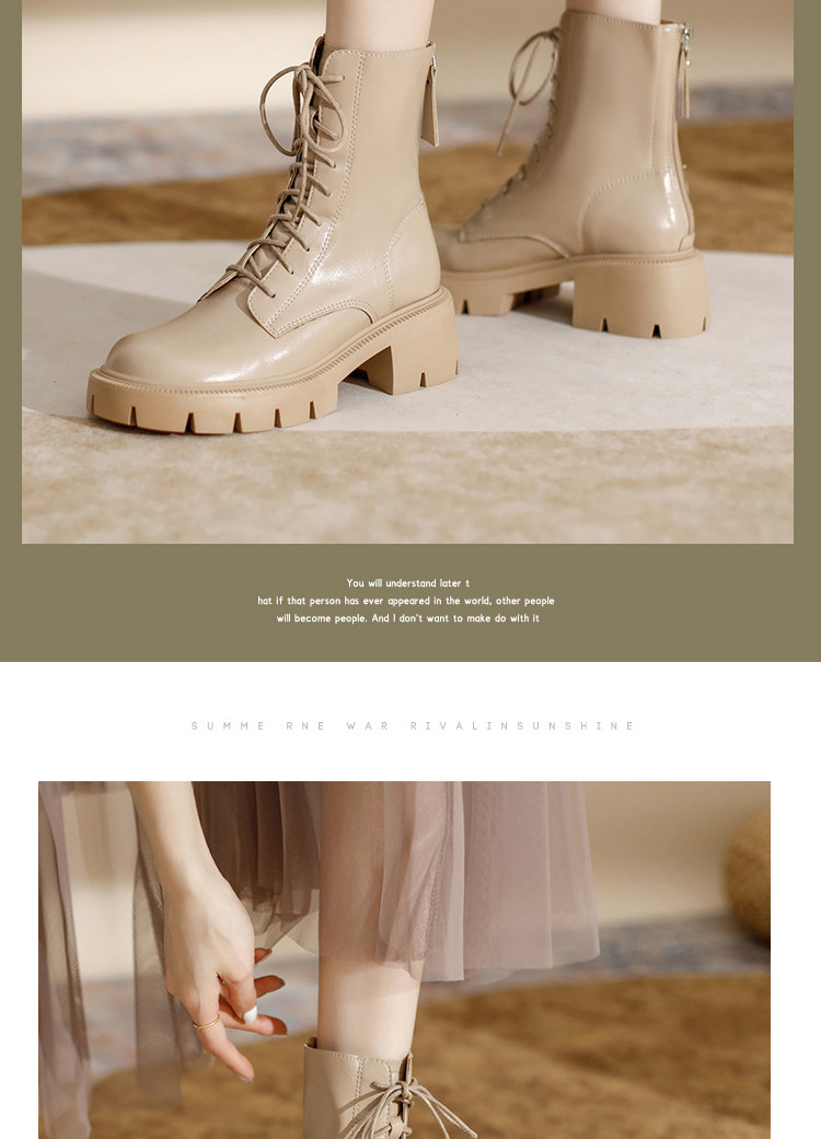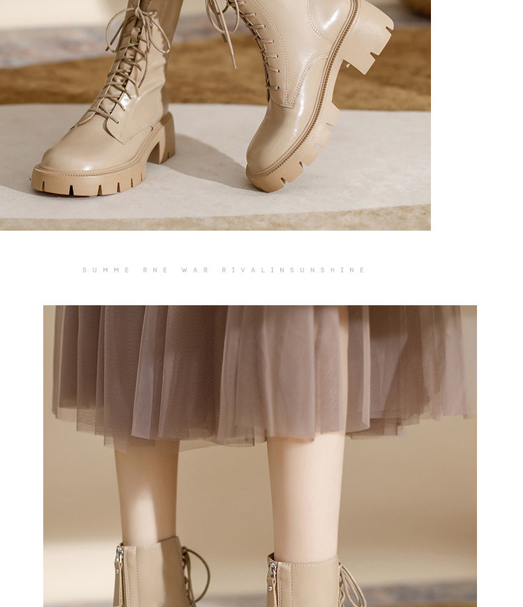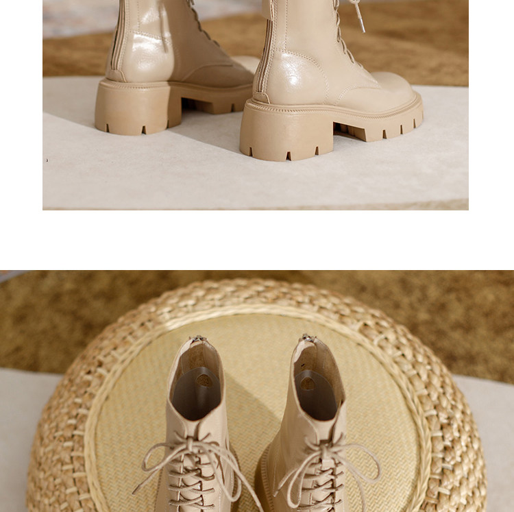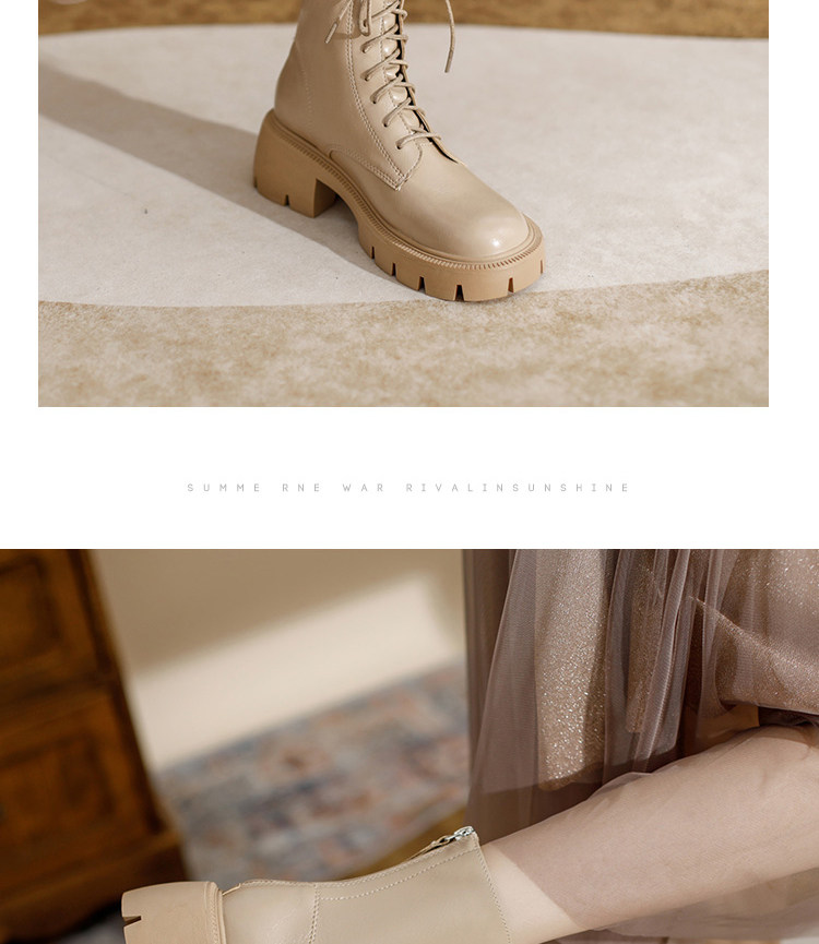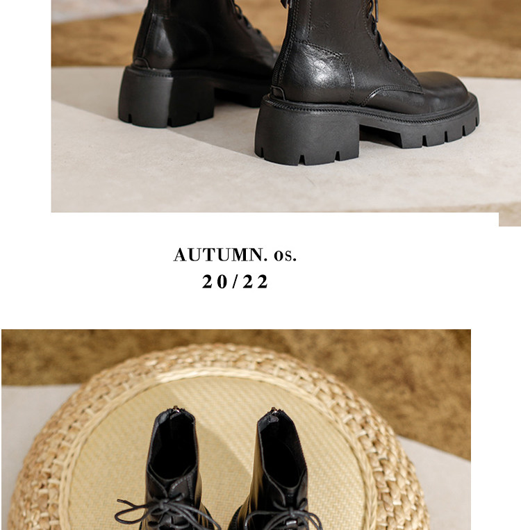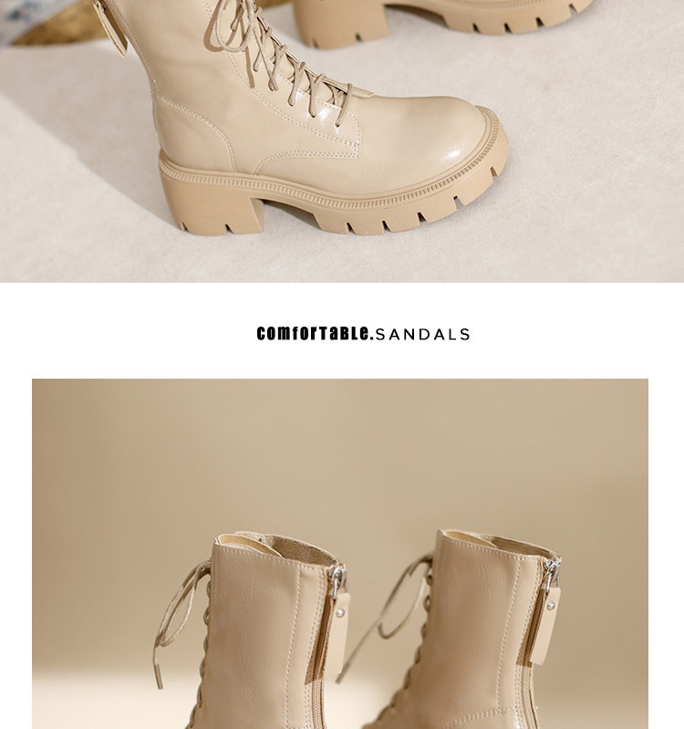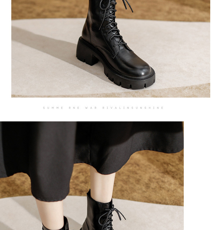 內增高短靴系帶粗跟厚底防水台馬丁靴小個子8CM真皮高跟秋冬單靴