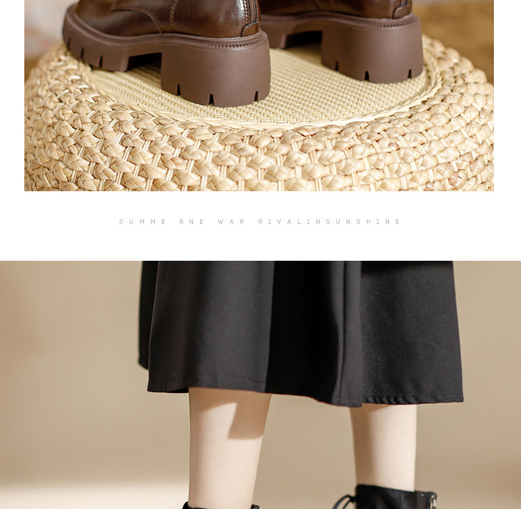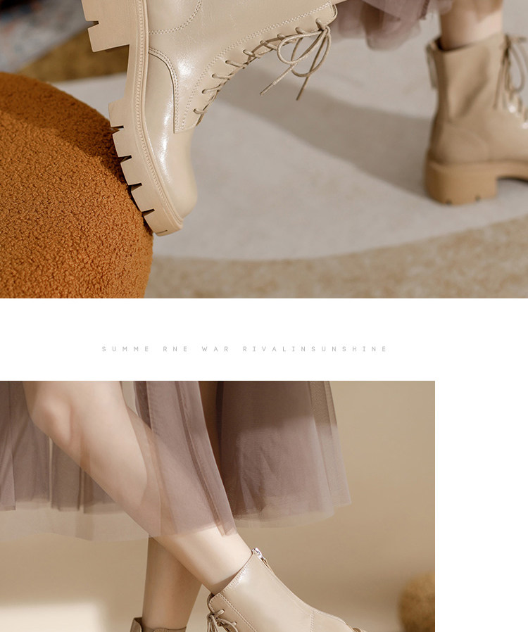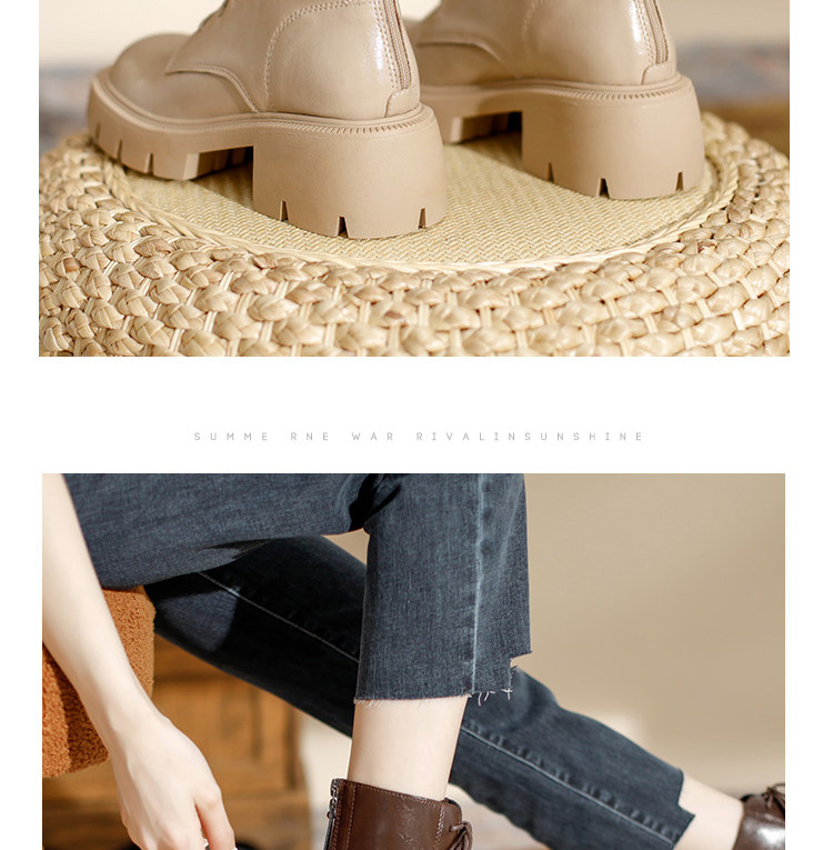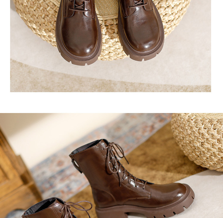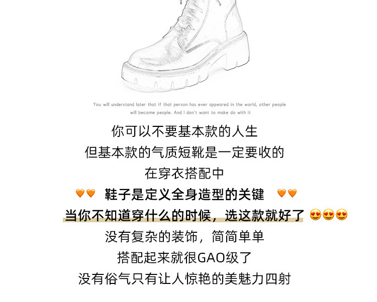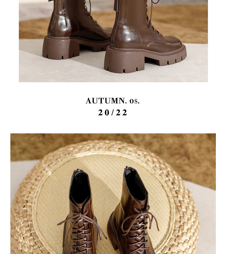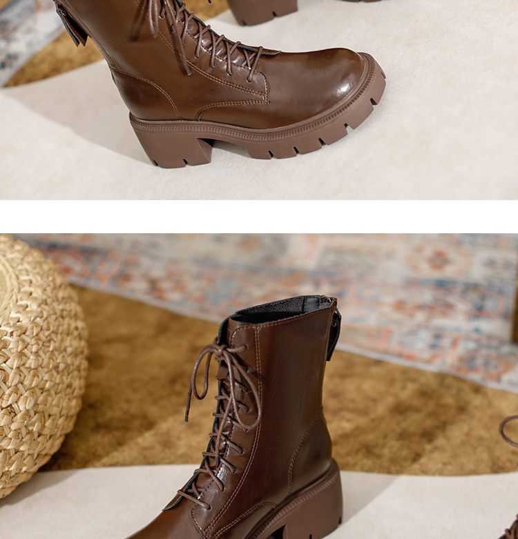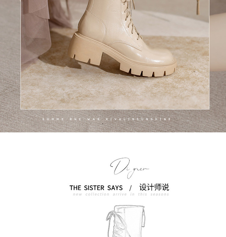 內增高短靴系帶粗跟厚底防水台馬丁靴小個子8CM真皮高跟秋冬單靴