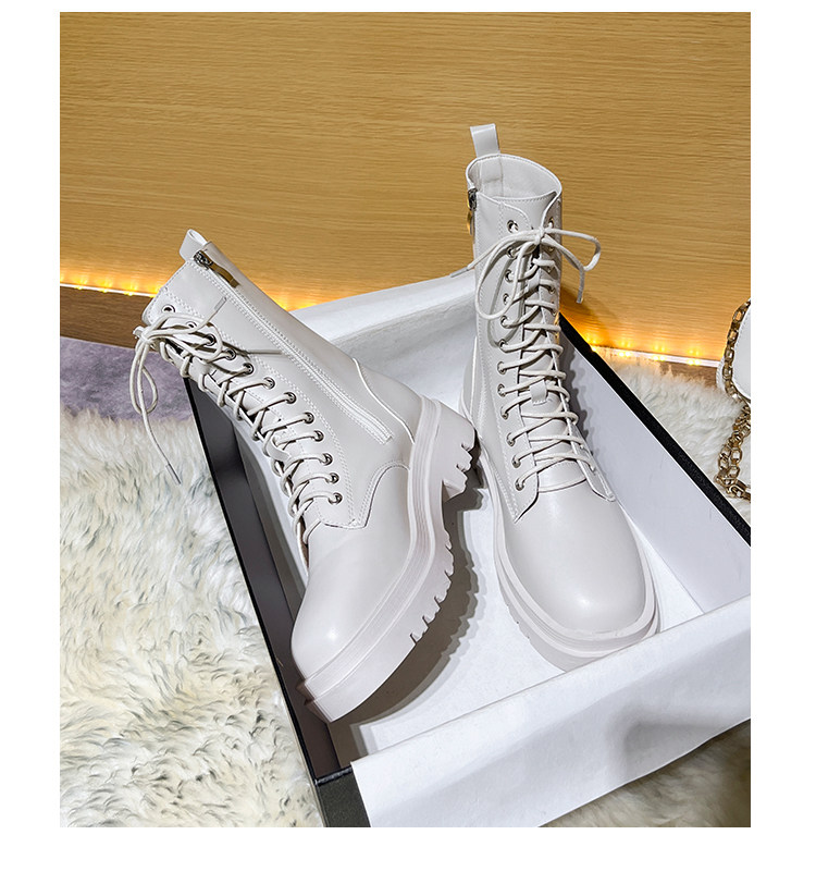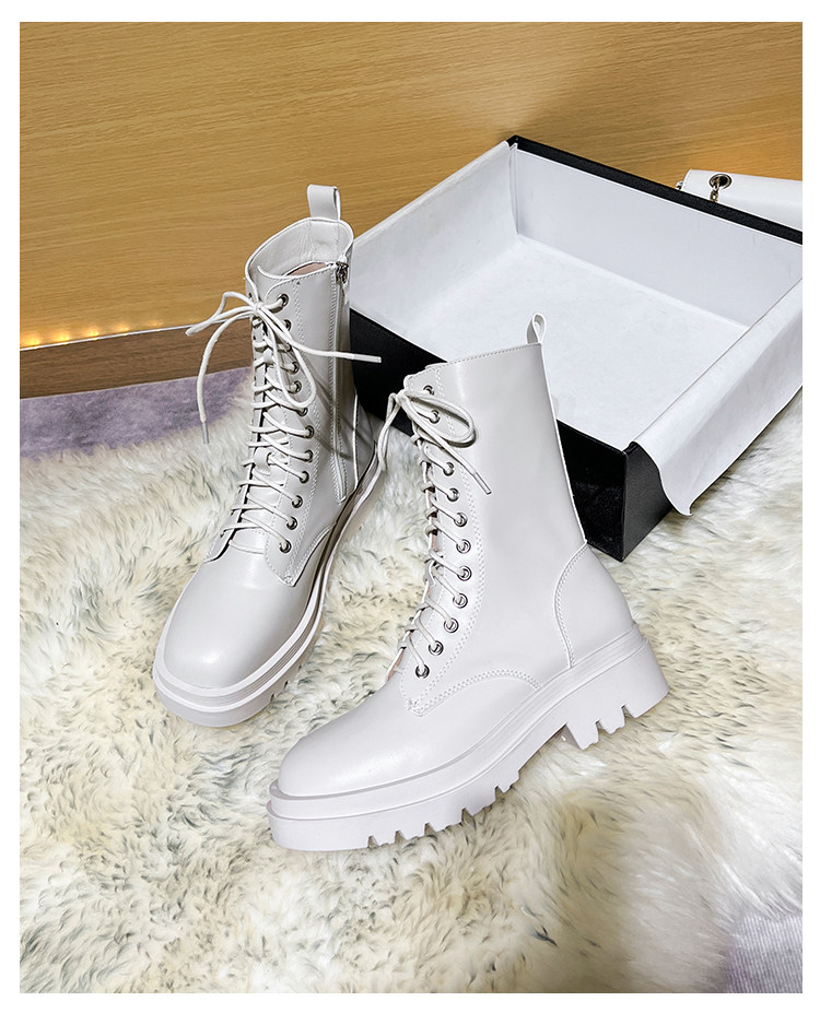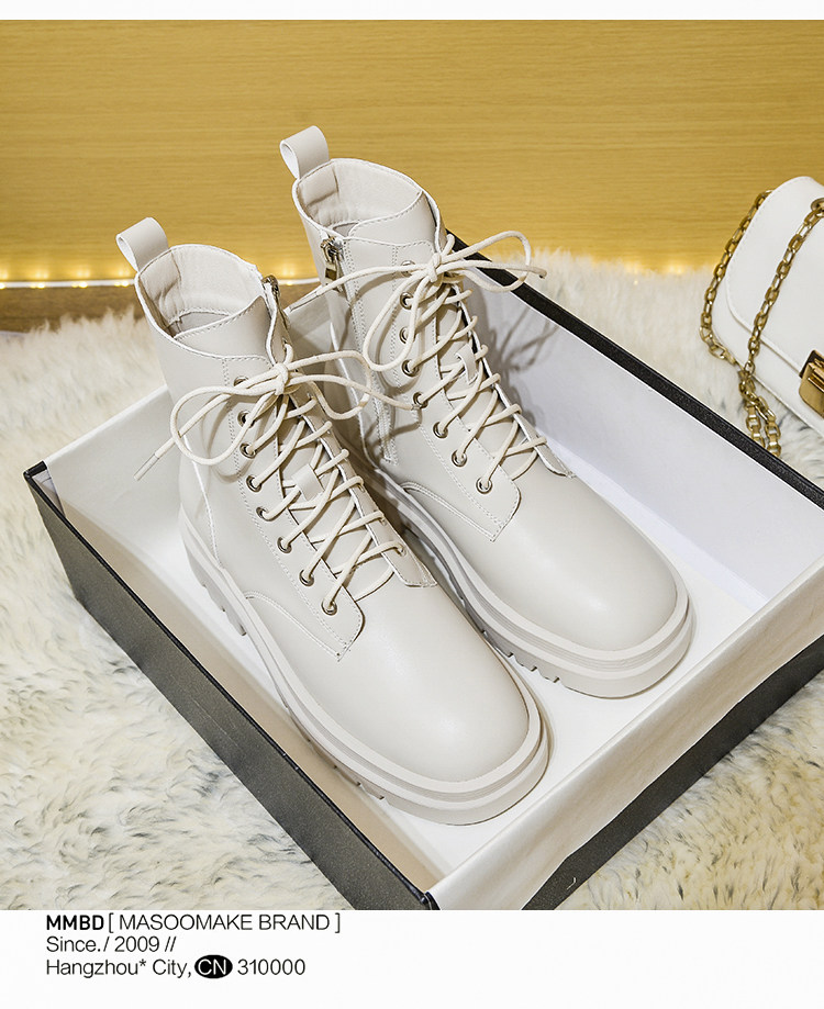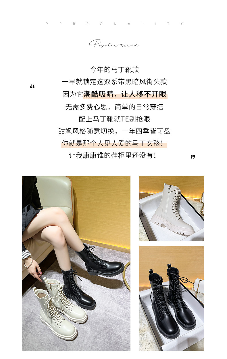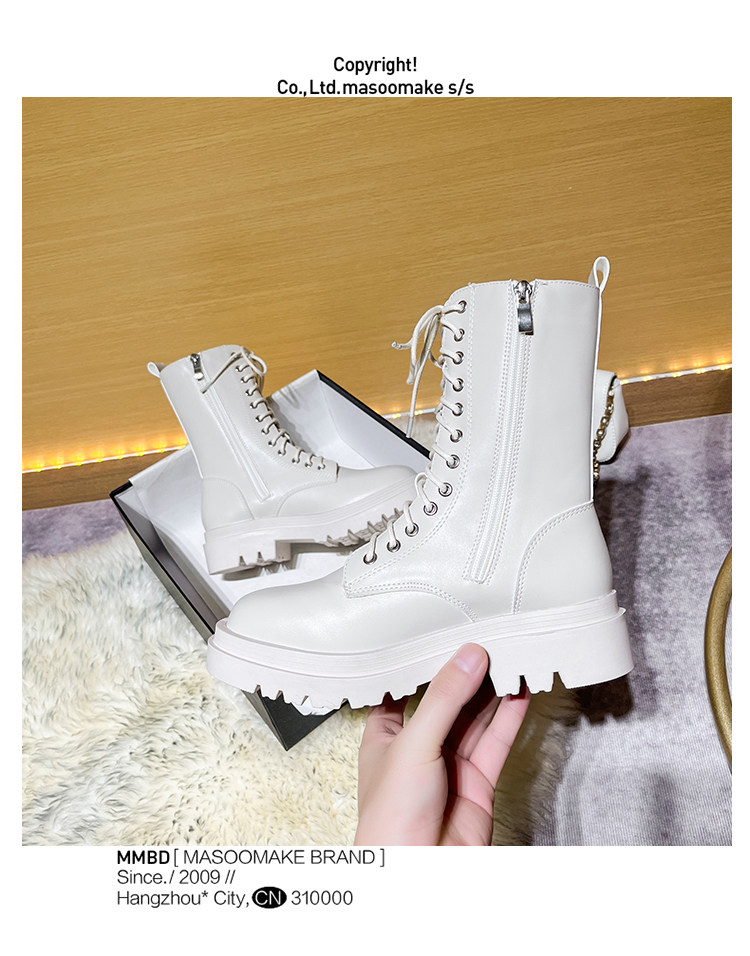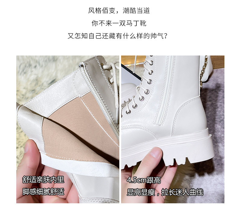 厚底馬丁靴女2026新款英倫風短靴秋冬加絨黑色白色中筒單靴側拉鍊