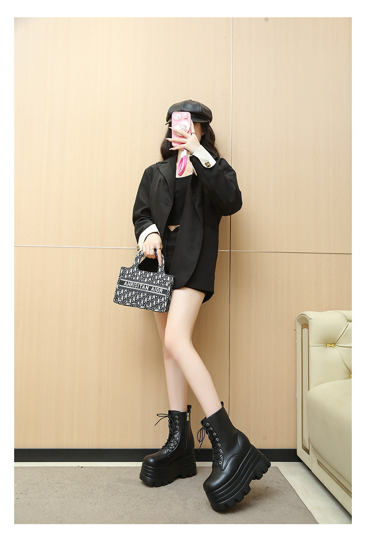 漫展cos增高鞋馬丁靴20cm15小個子中筒短靴男女大碼演唱會站坑
