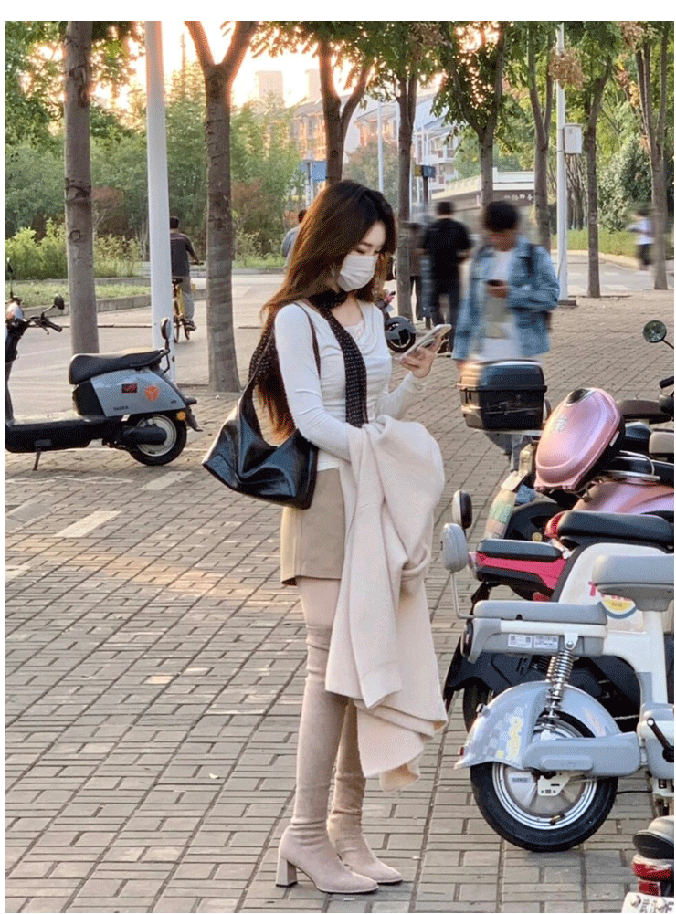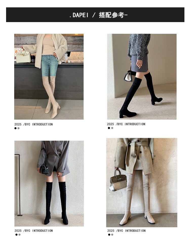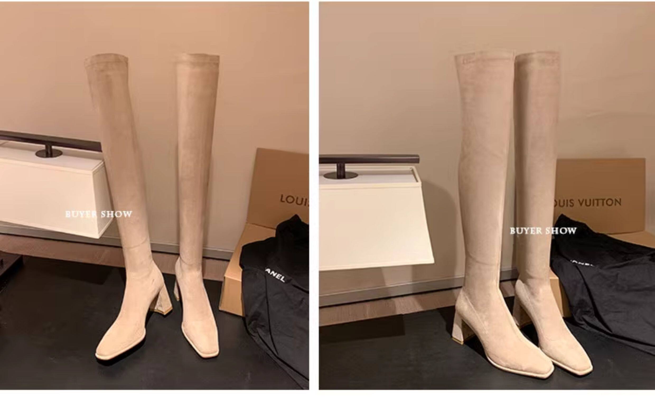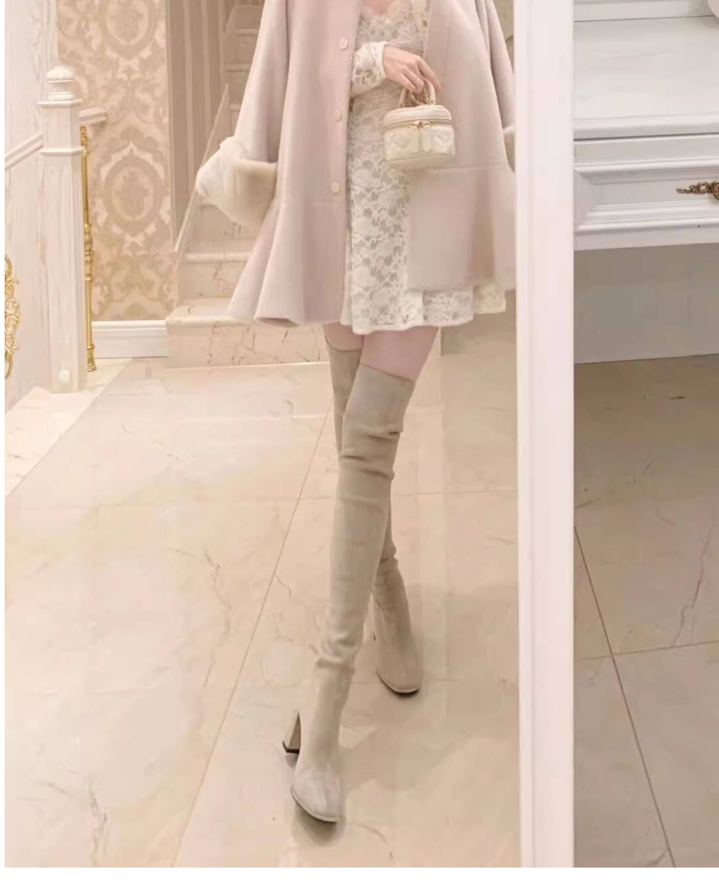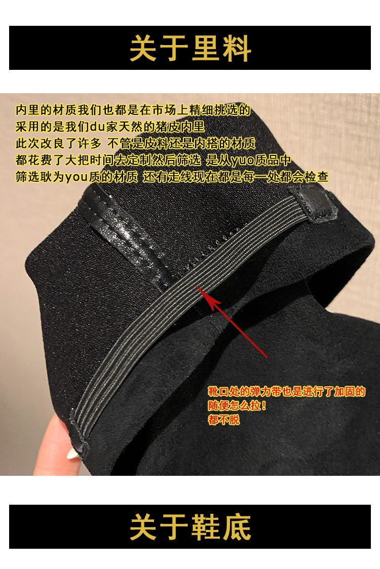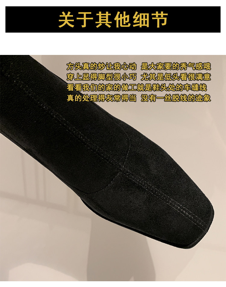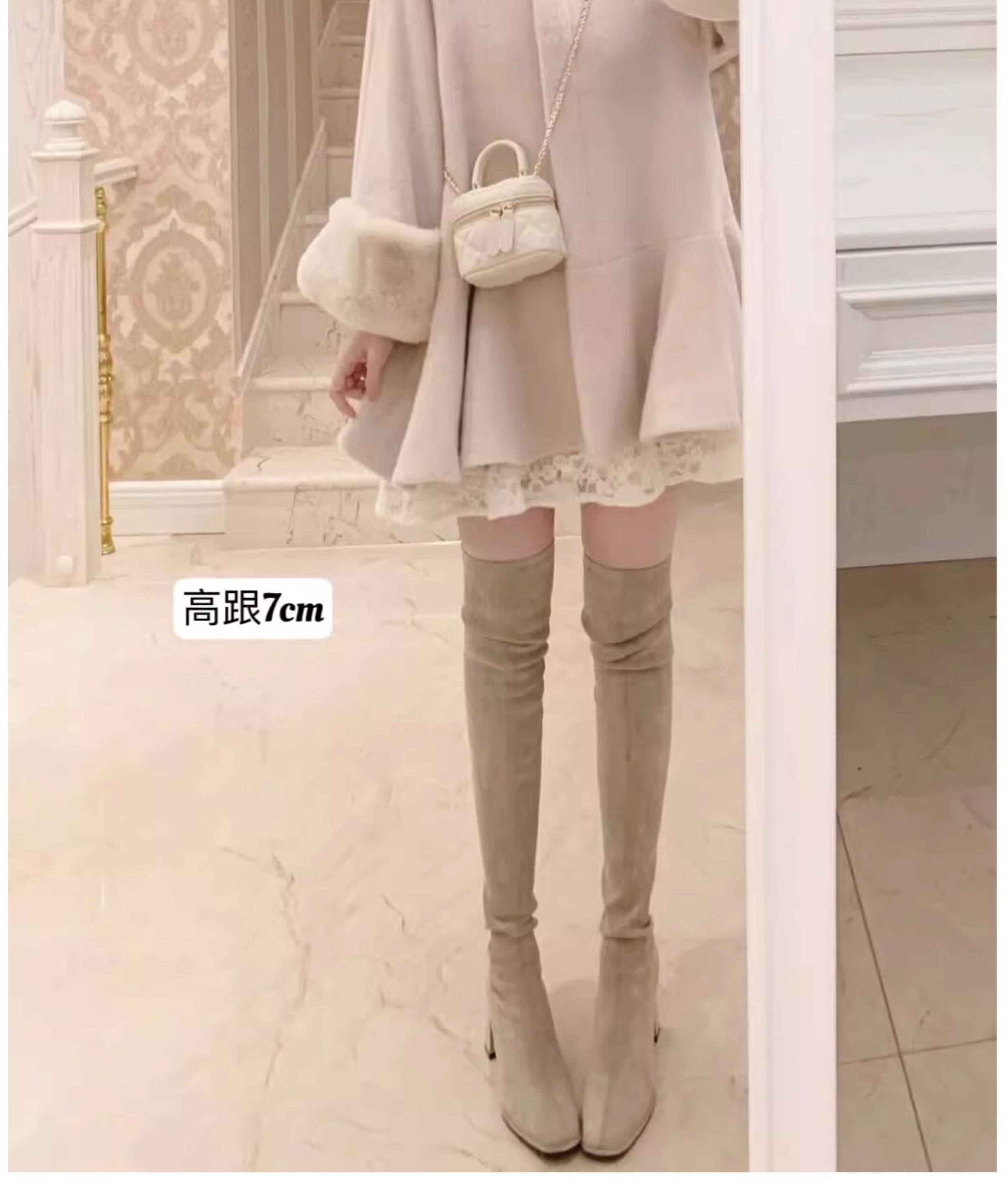 西魚許5050方頭粗跟瘦腿過膝長靴女高跟高筒靴秋冬顯瘦彈力長筒靴