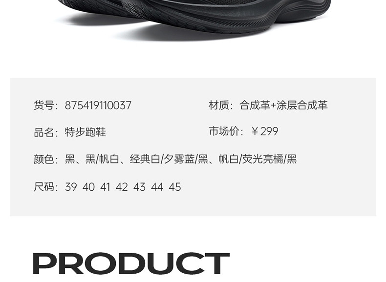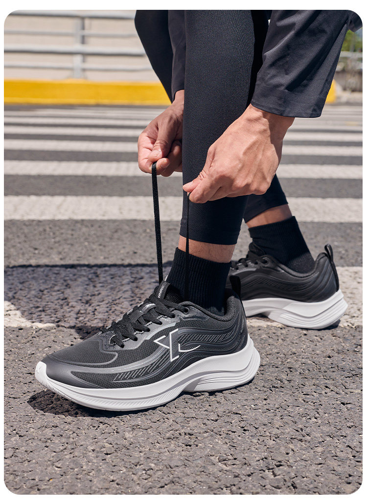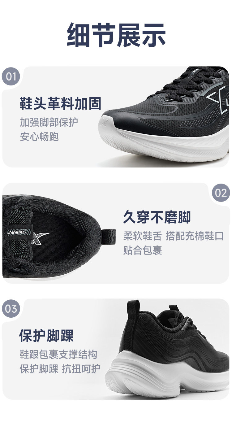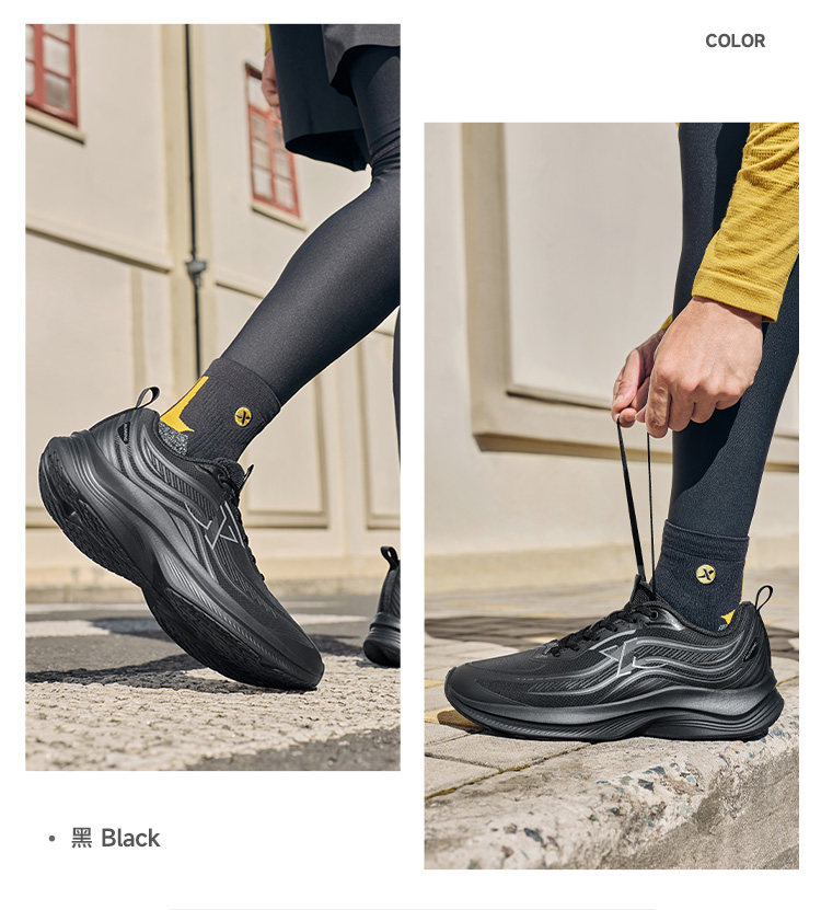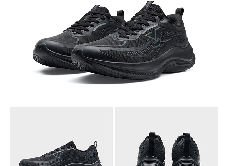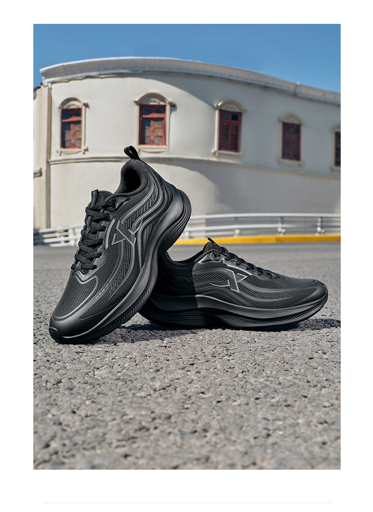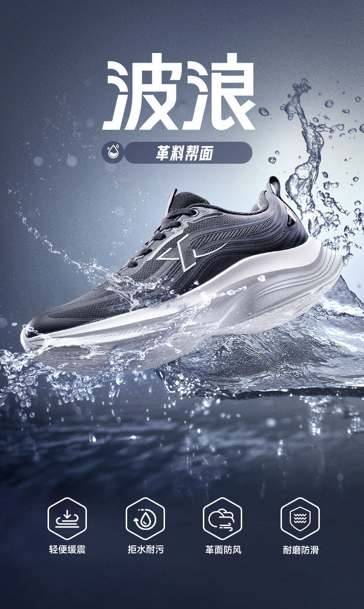 特步波浪鞋丨綜訓鞋男鞋跑步鞋夏季黑色公務運動鞋皮面減震跑鞋女