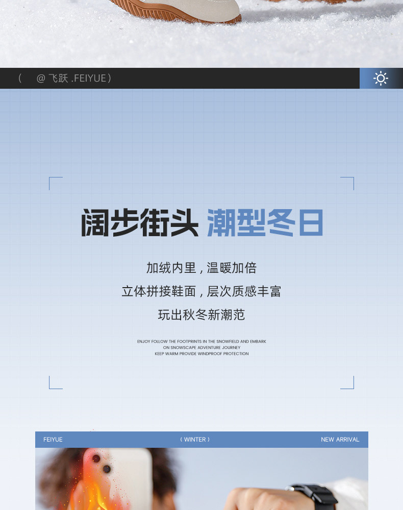 feiyue/飛躍男鞋室內健身鞋男2026春季新款保暖加厚加絨德訓鞋子