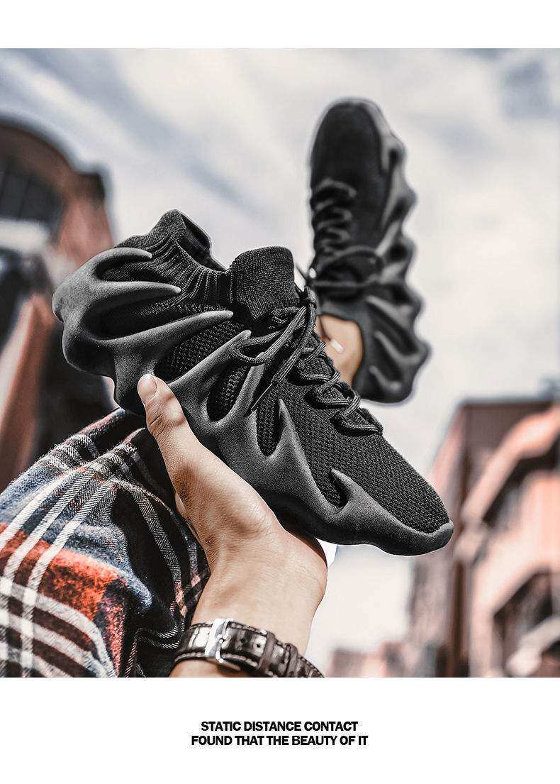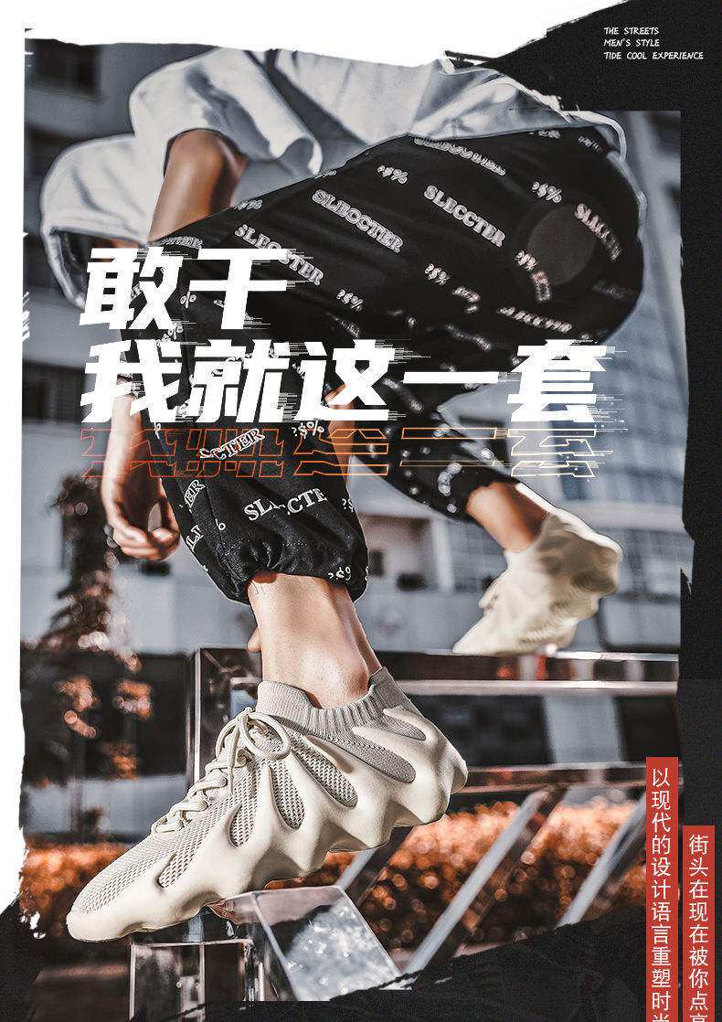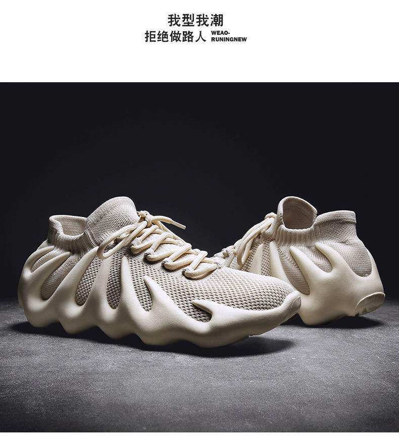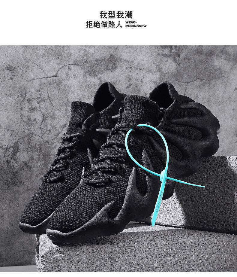 男鞋新款休閒運動鞋子飛織火山底透氣網鞋男士跑步鞋八爪魚襪子鞋