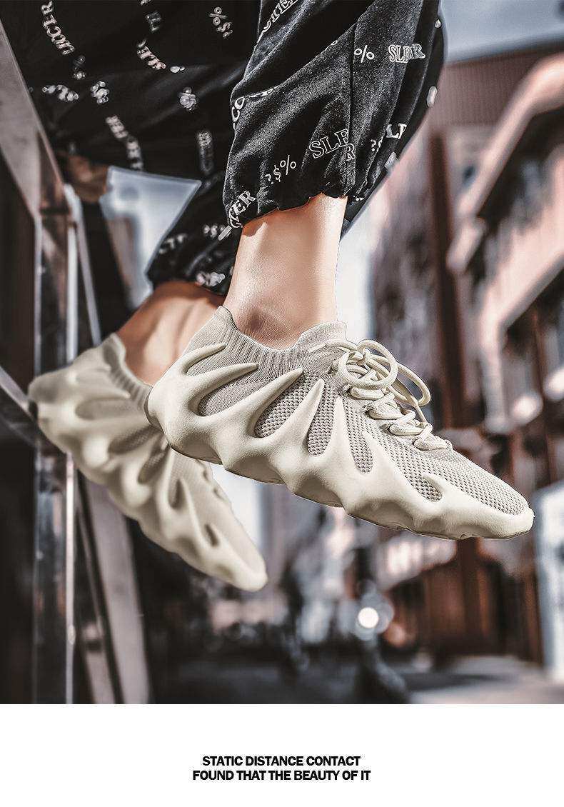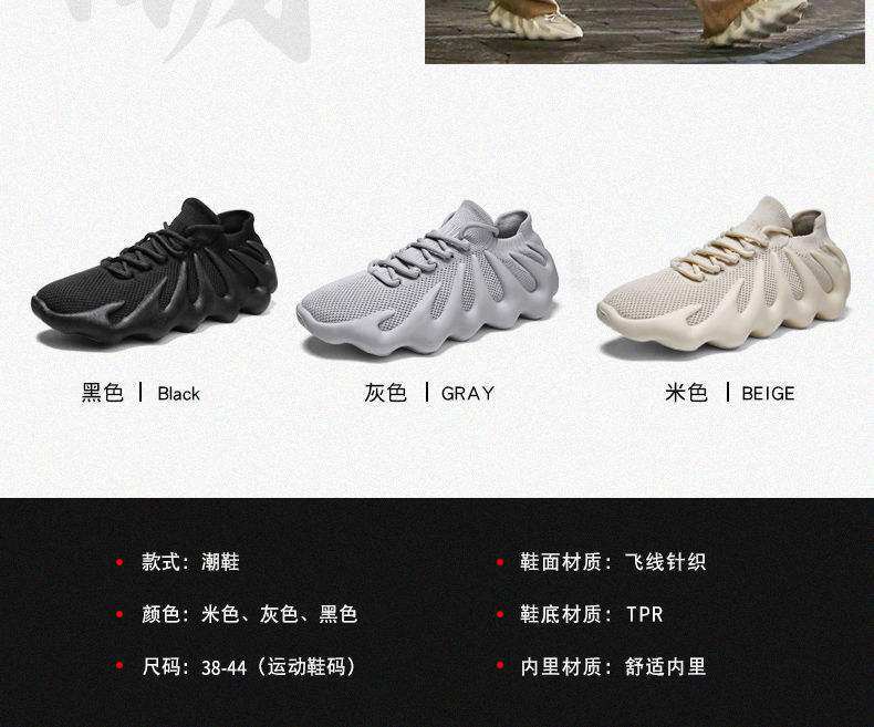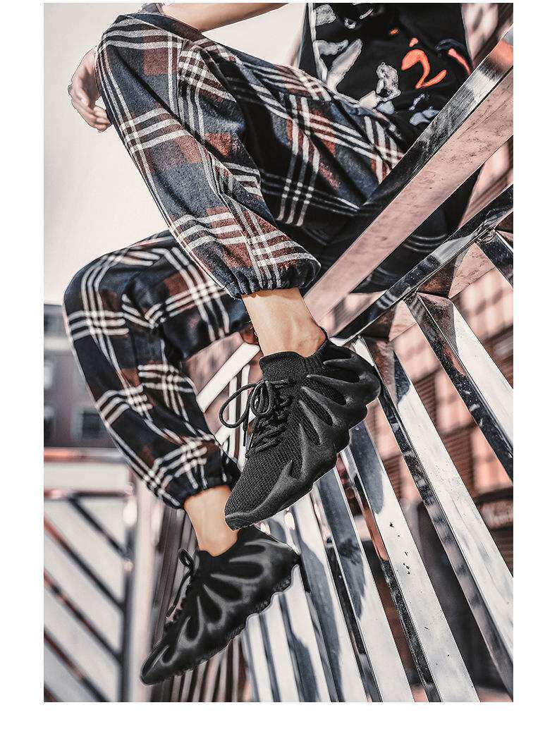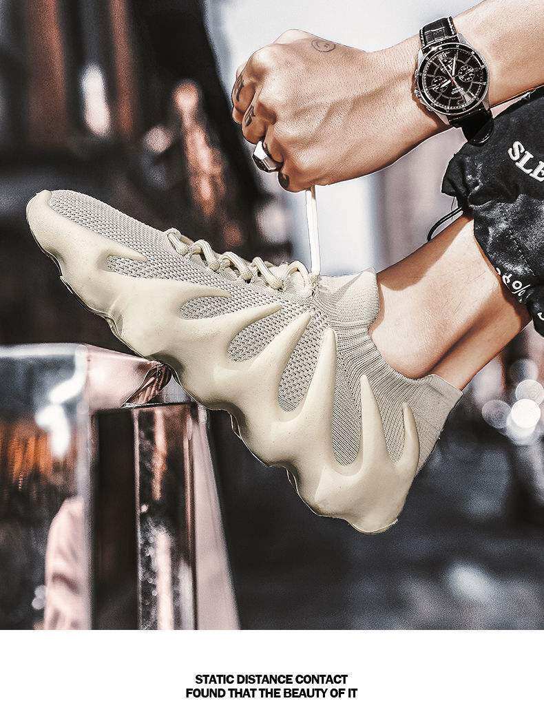 男鞋新款休閒運動鞋子飛織火山底透氣網鞋男士跑步鞋八爪魚襪子鞋