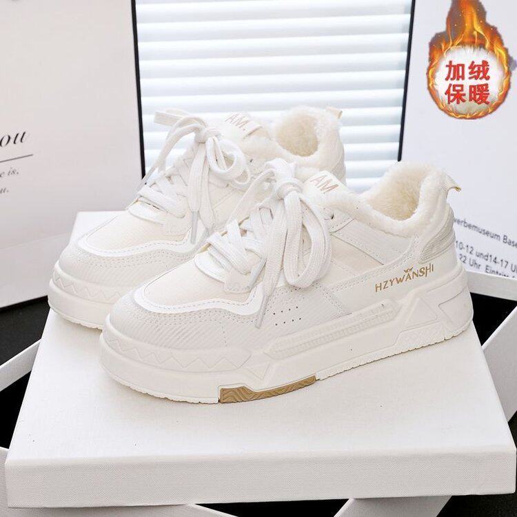 鞋子新款2025爆款女學生加絨小白鞋冬季保暖防滑板鞋休閒運動棉鞋