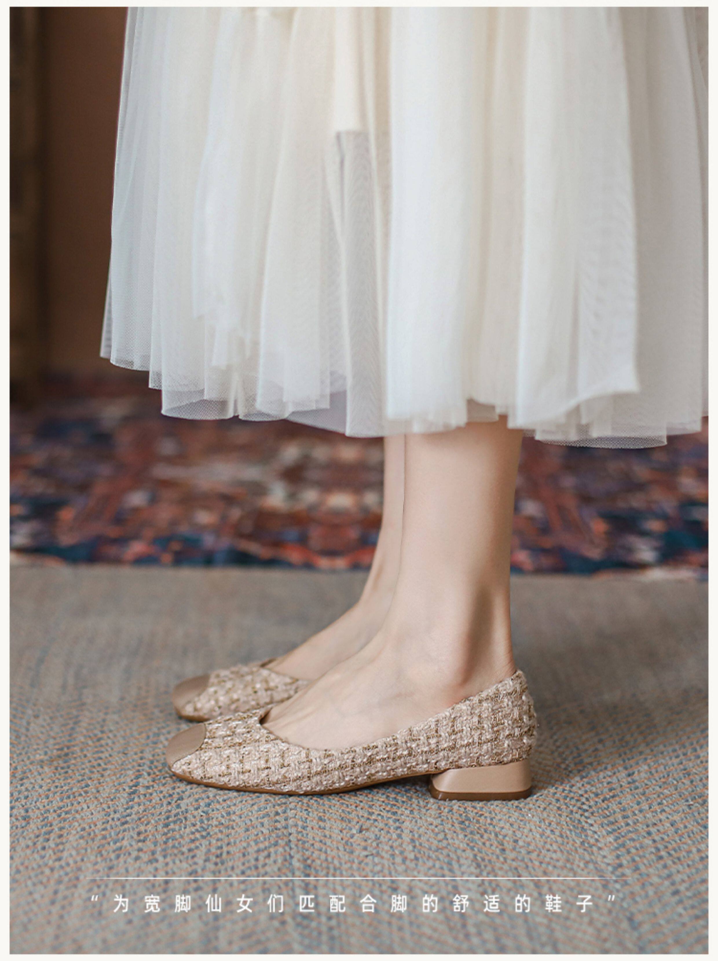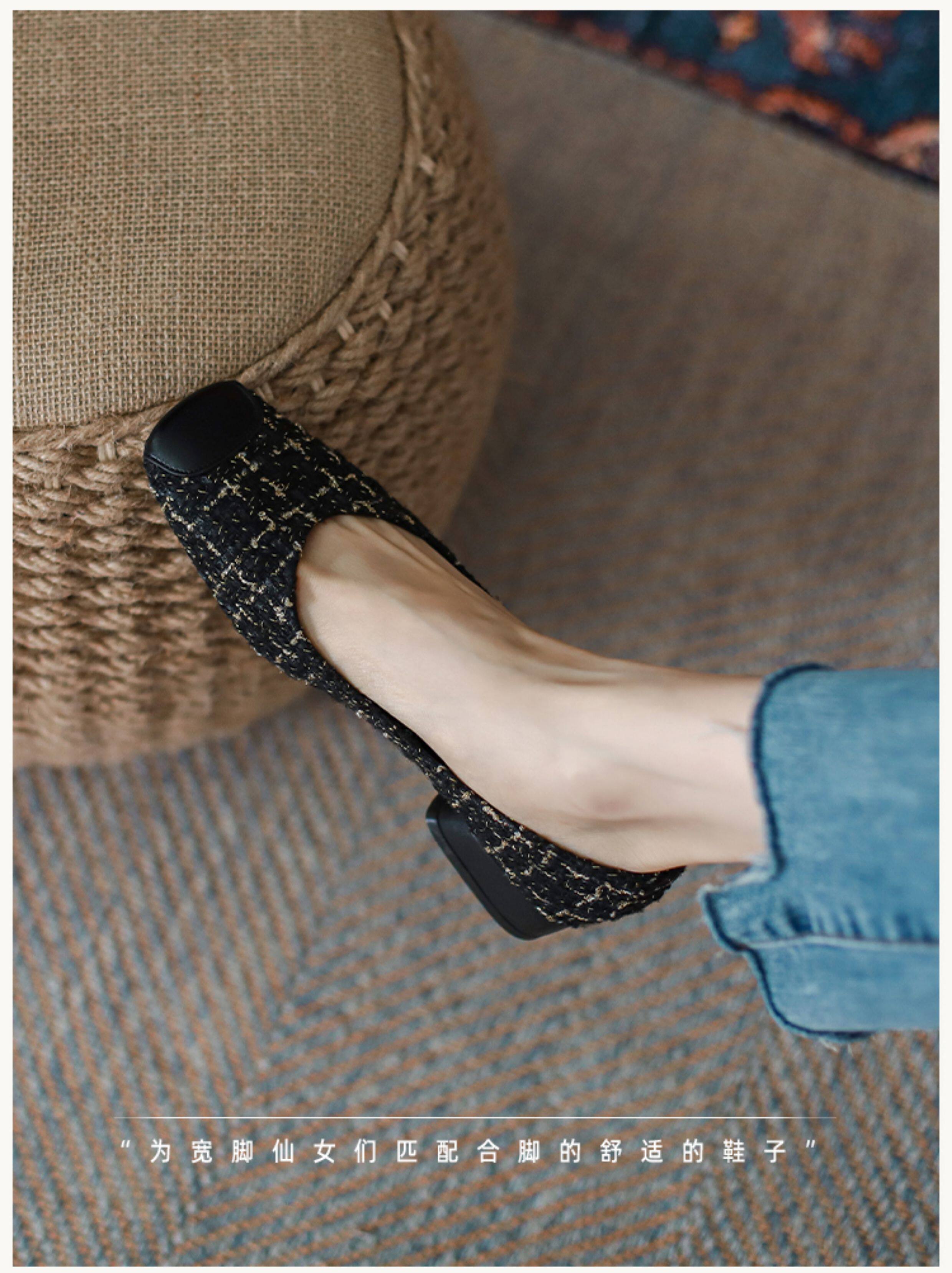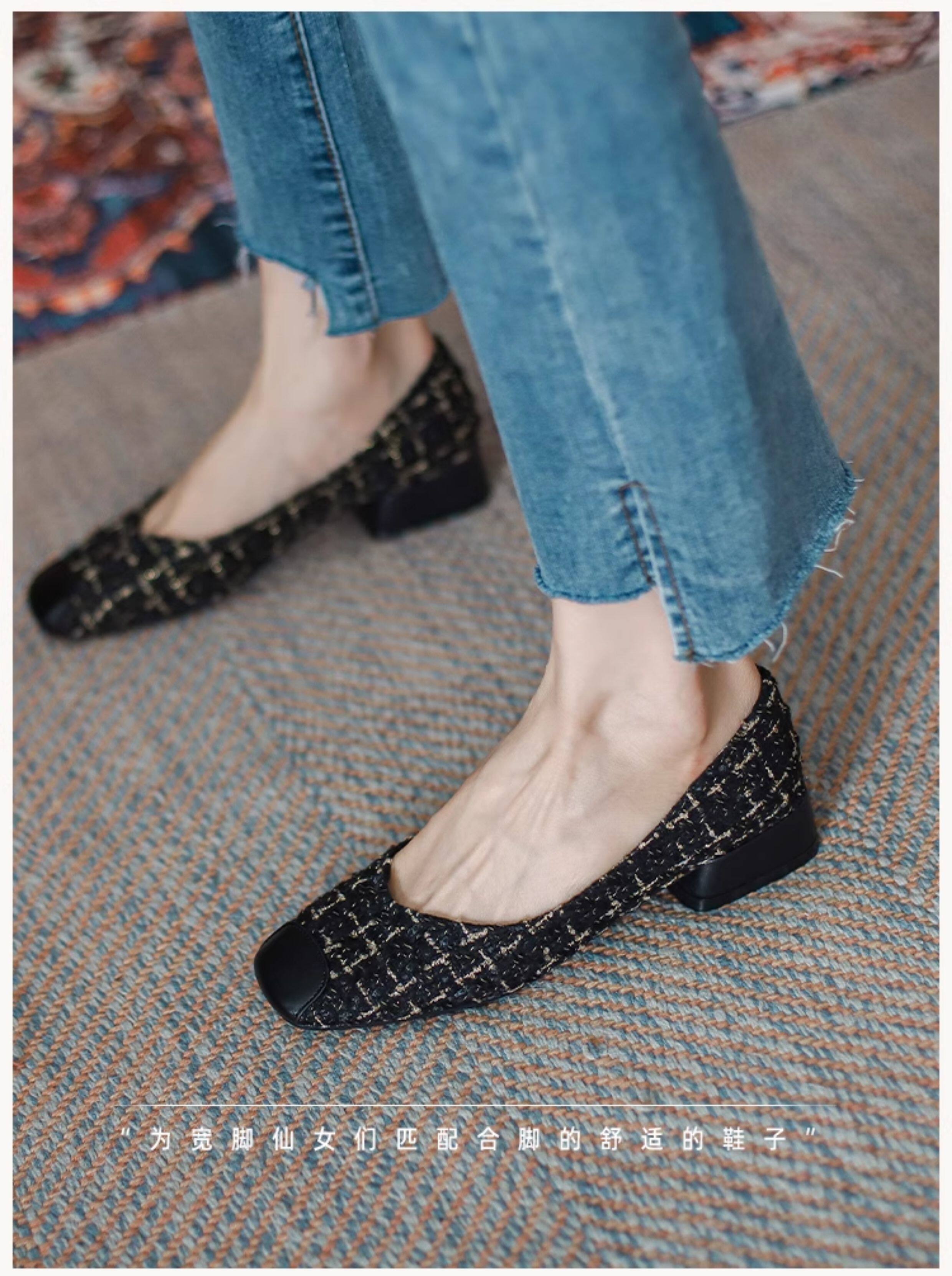 胖腳寬腳女鞋41-43大碼單鞋女粗跟媽媽鞋方頭矮跟孕婦鞋小跟鞋