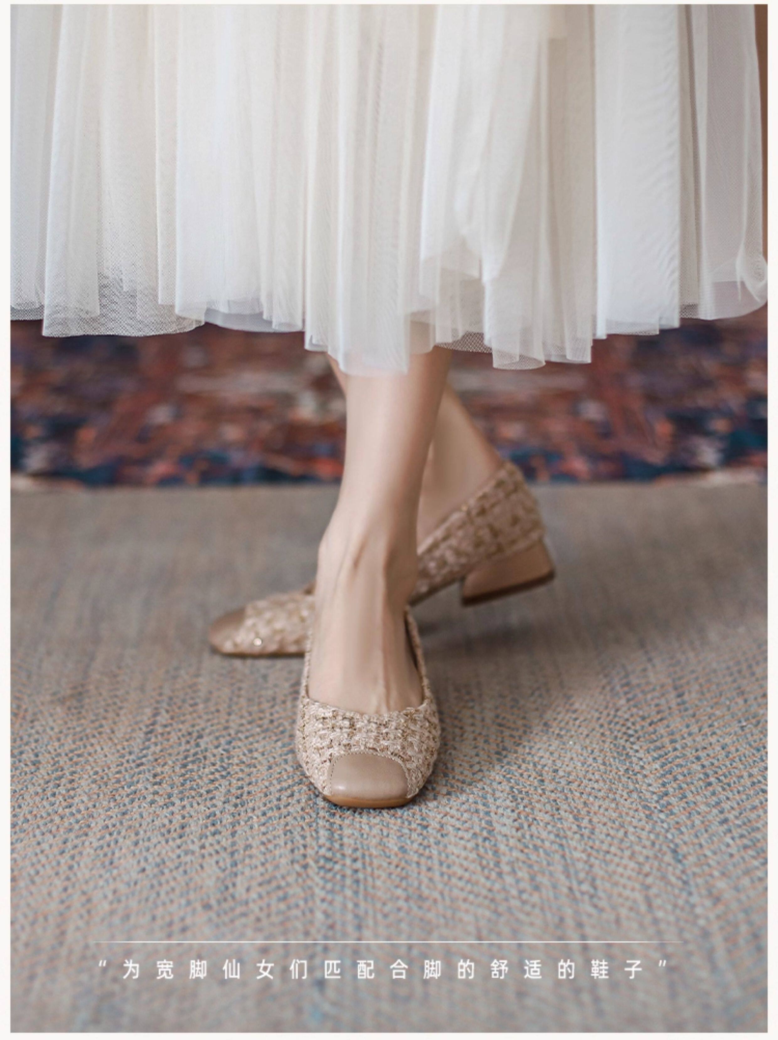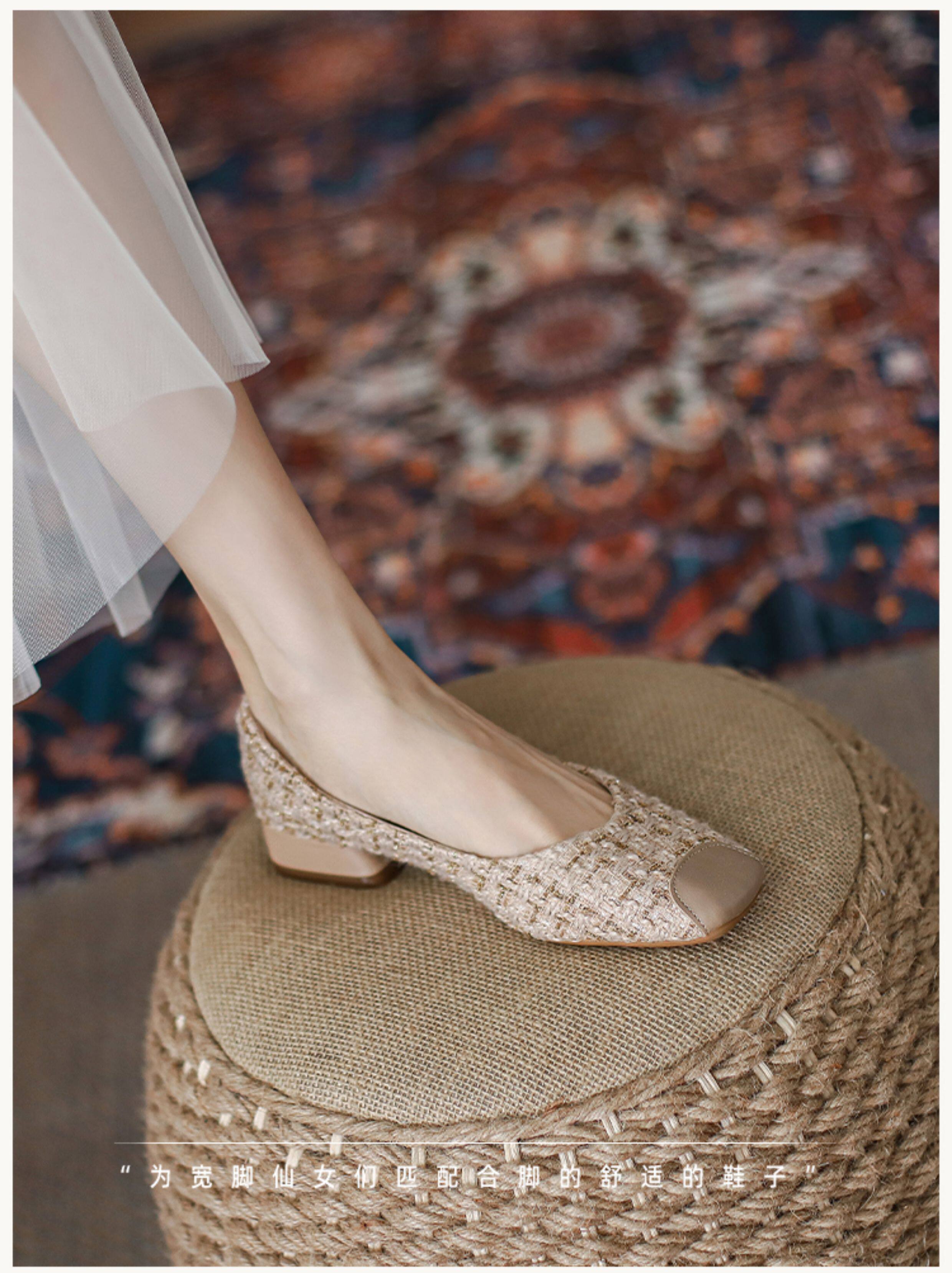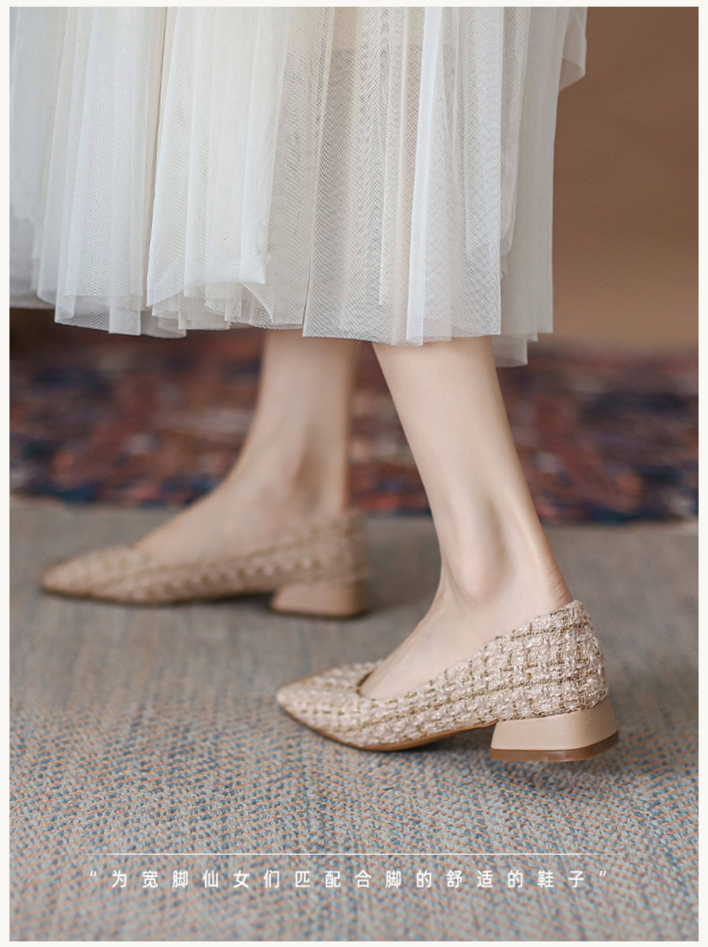 胖腳寬腳女鞋41-43大碼單鞋女粗跟媽媽鞋方頭矮跟孕婦鞋小跟鞋
