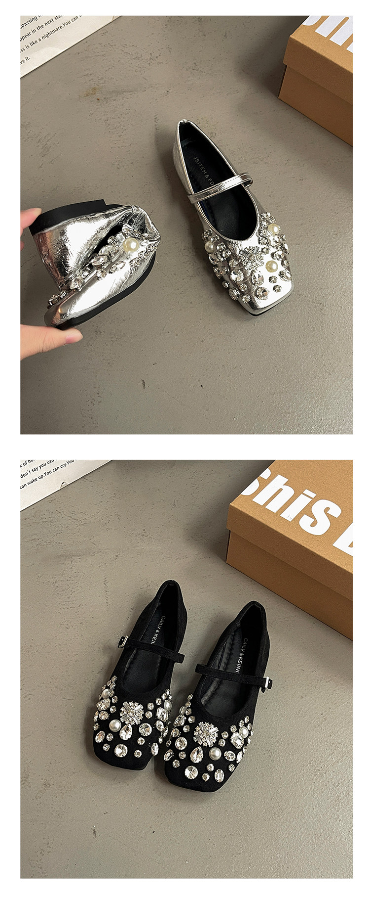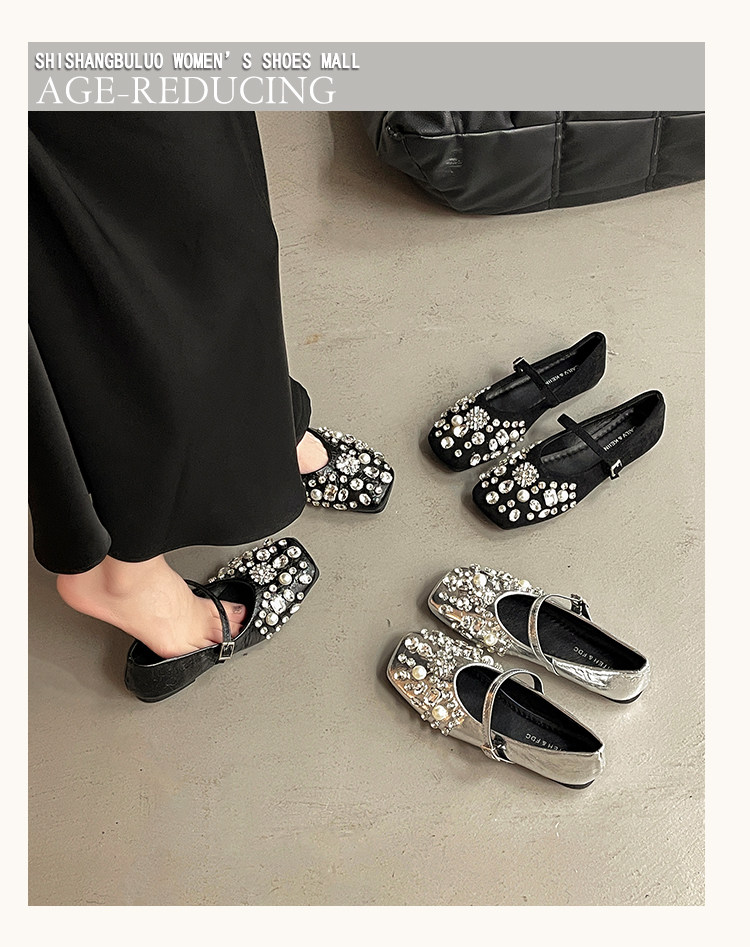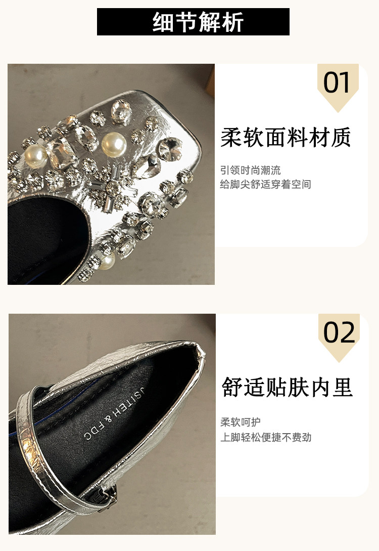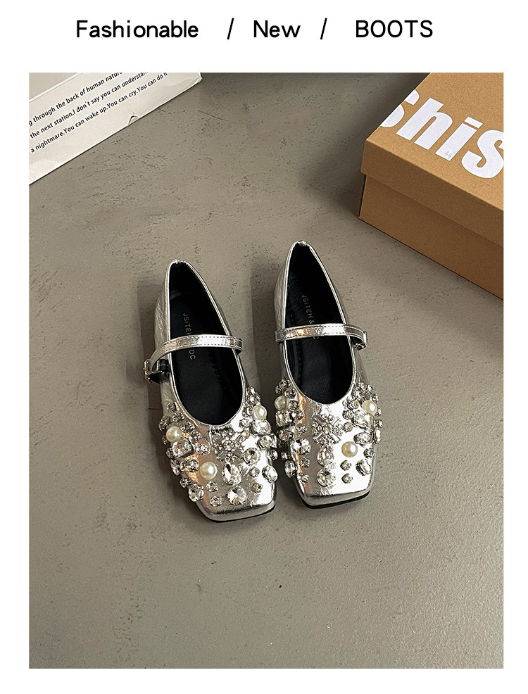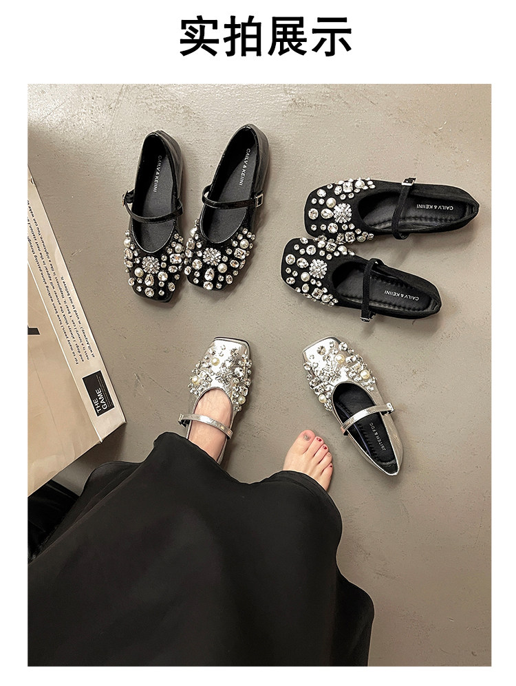 時尚部落仙女風銀色水鑽瑪麗珍鞋女2025年春季新款平底配裙子單鞋