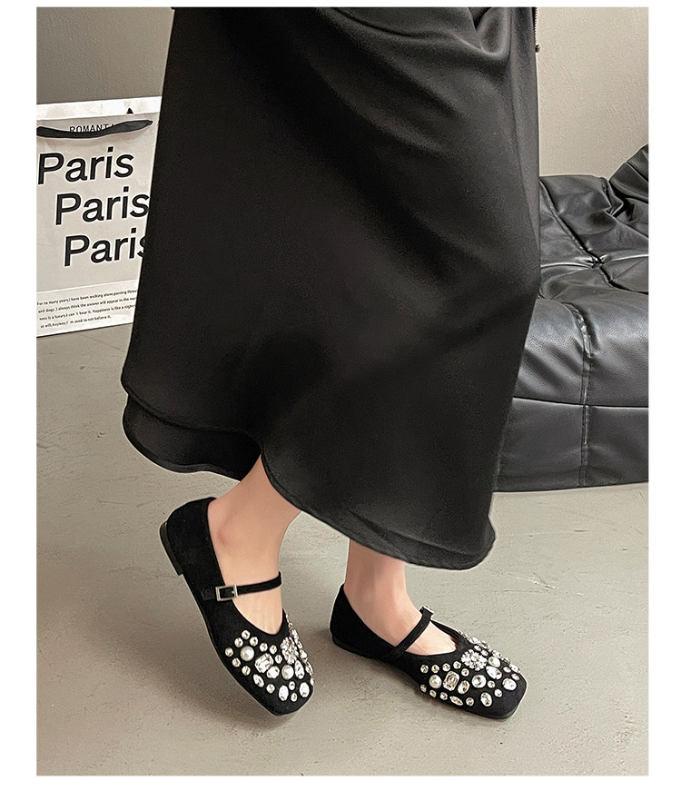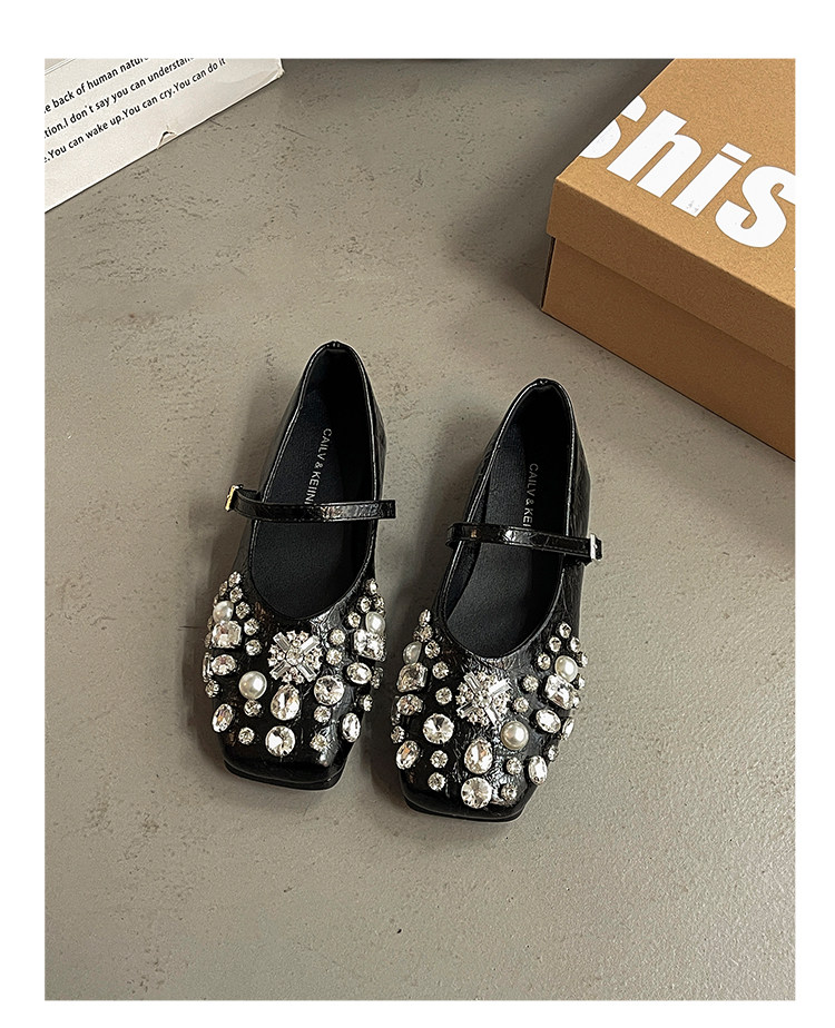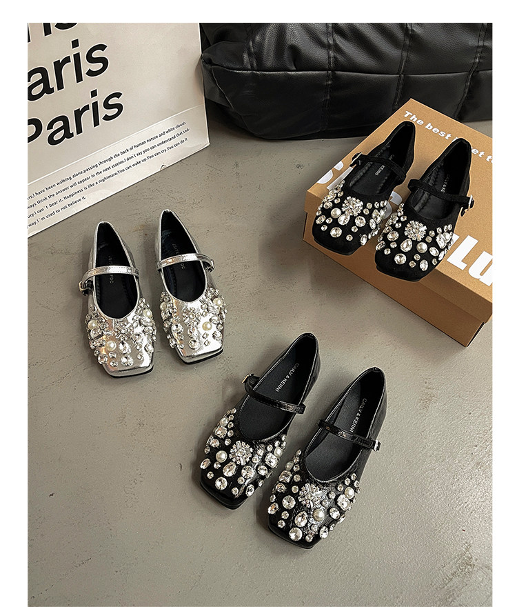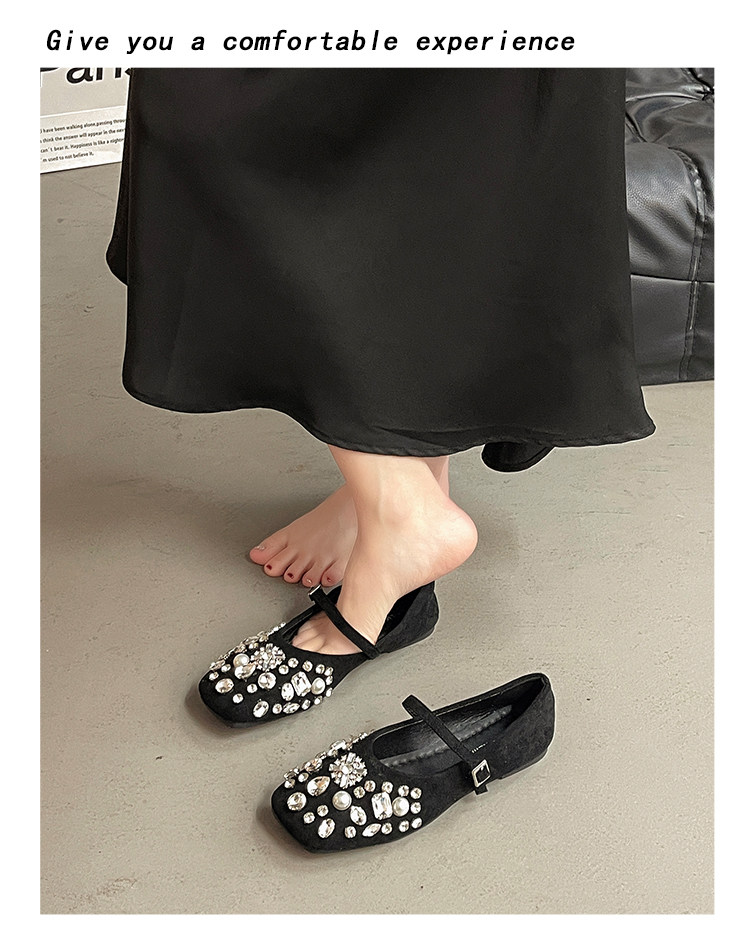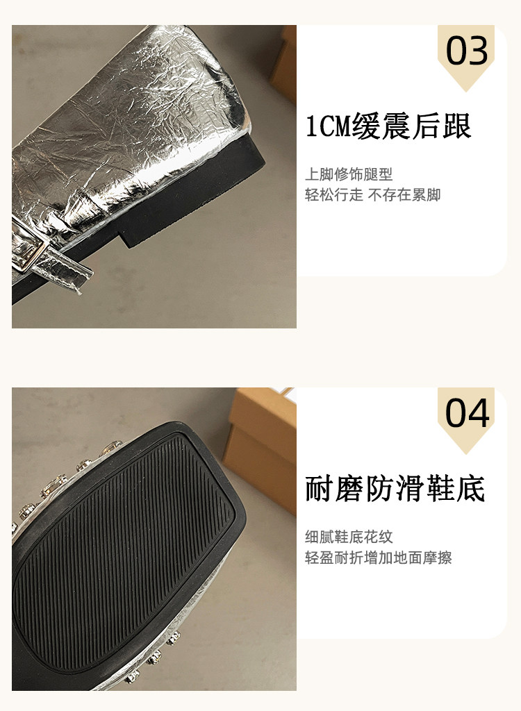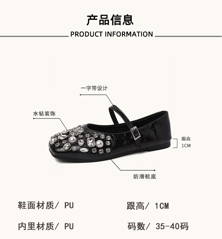 時尚部落仙女風銀色水鑽瑪麗珍鞋女2025年春季新款平底配裙子單鞋