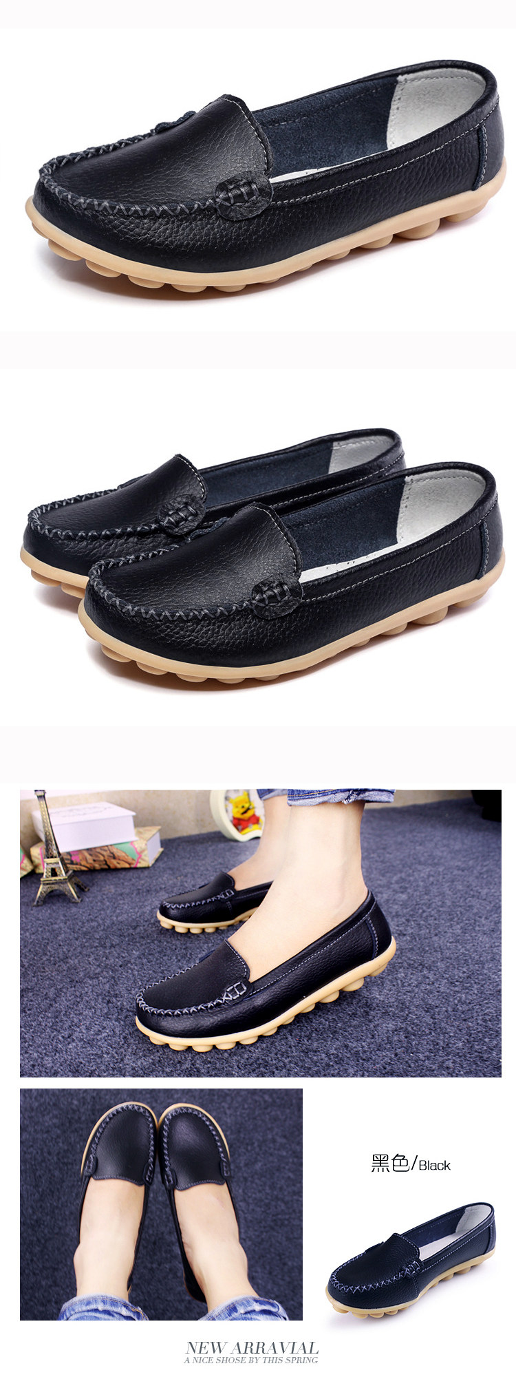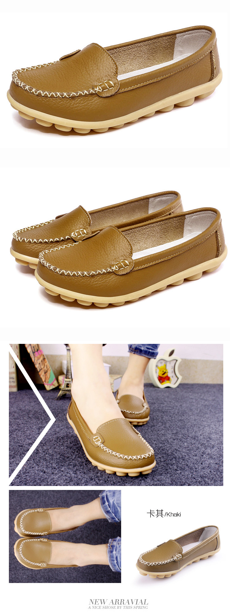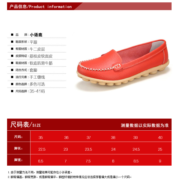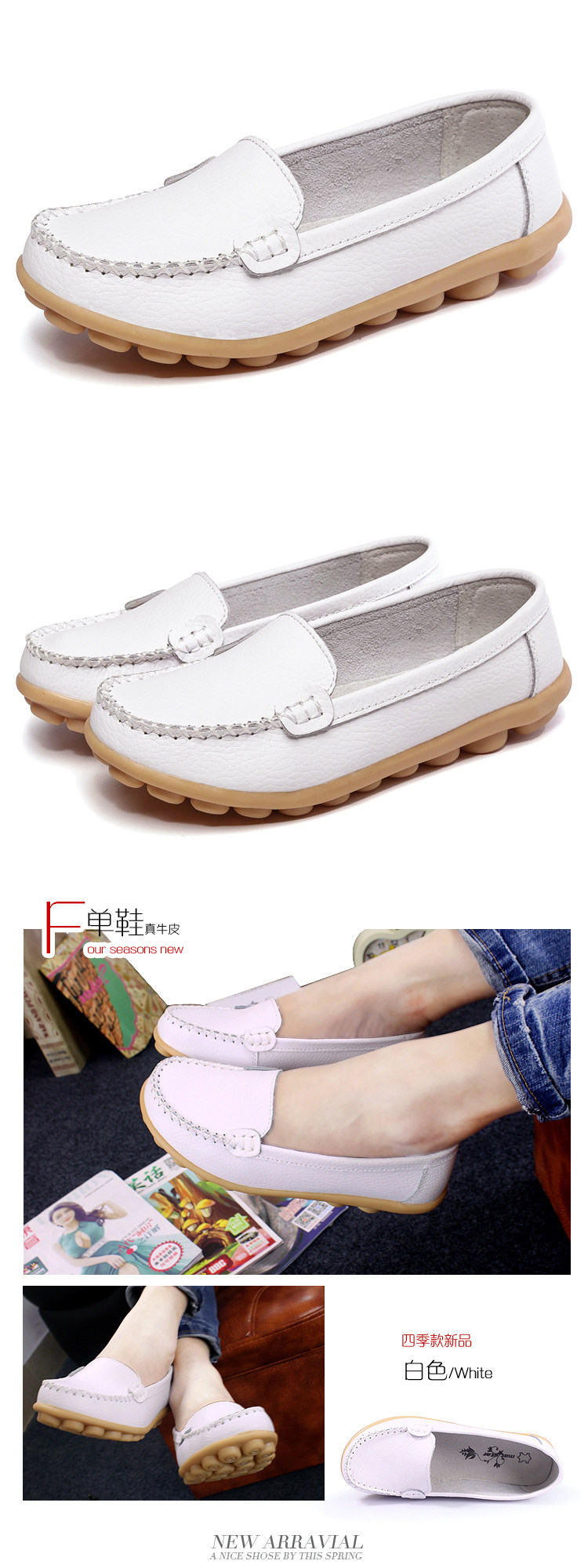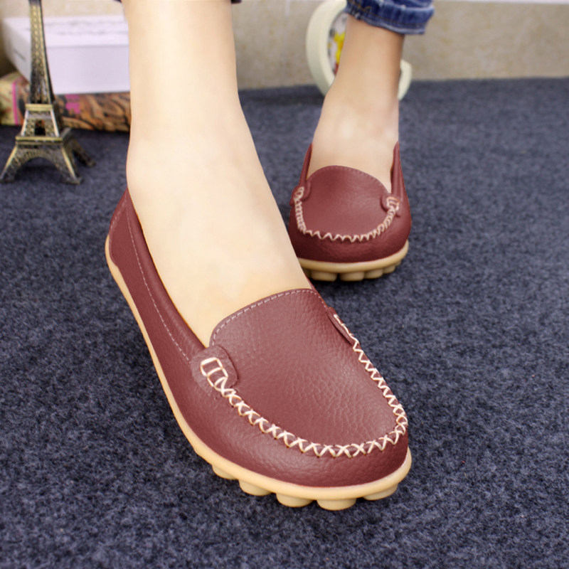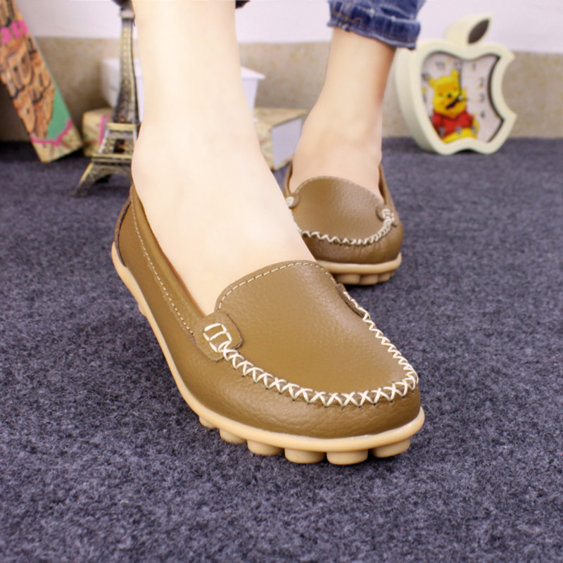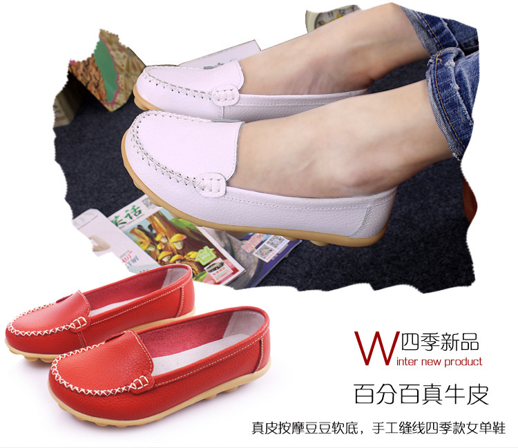 春秋休閒護士小白鞋淺口平底大碼媽媽鞋真皮防滑豆豆鞋軟底樂福鞋