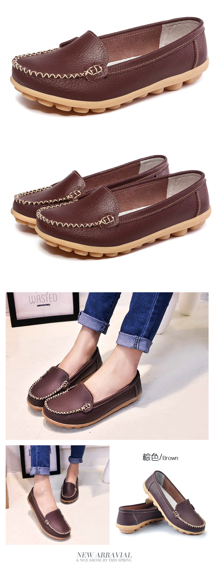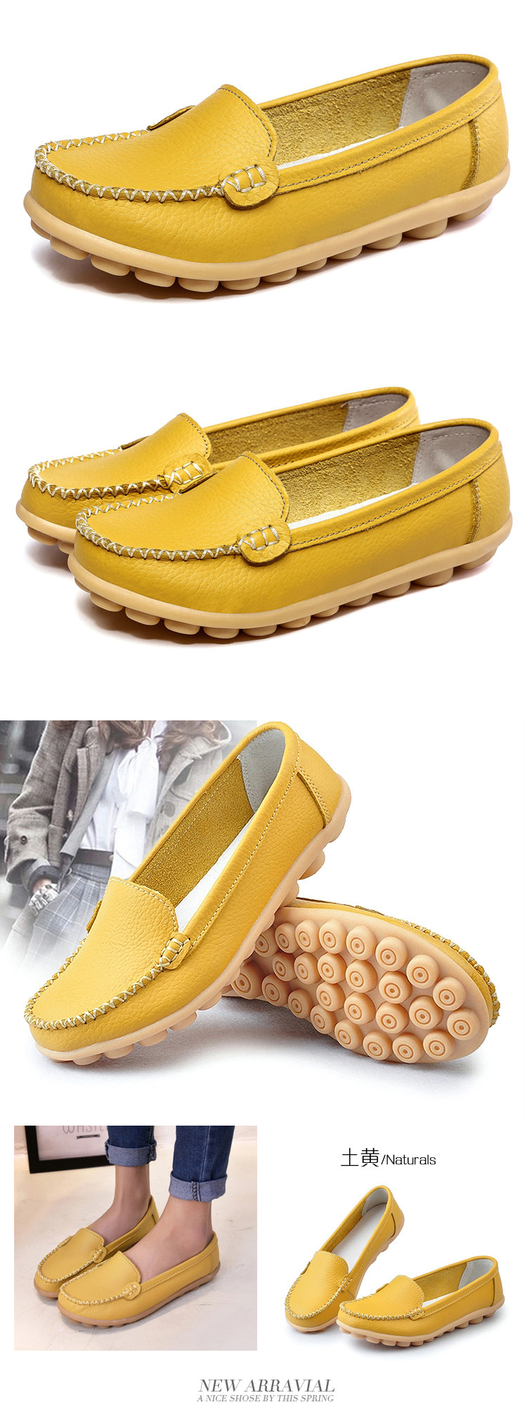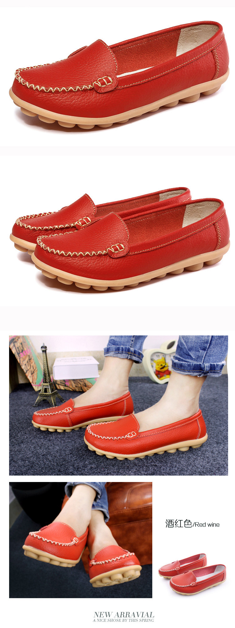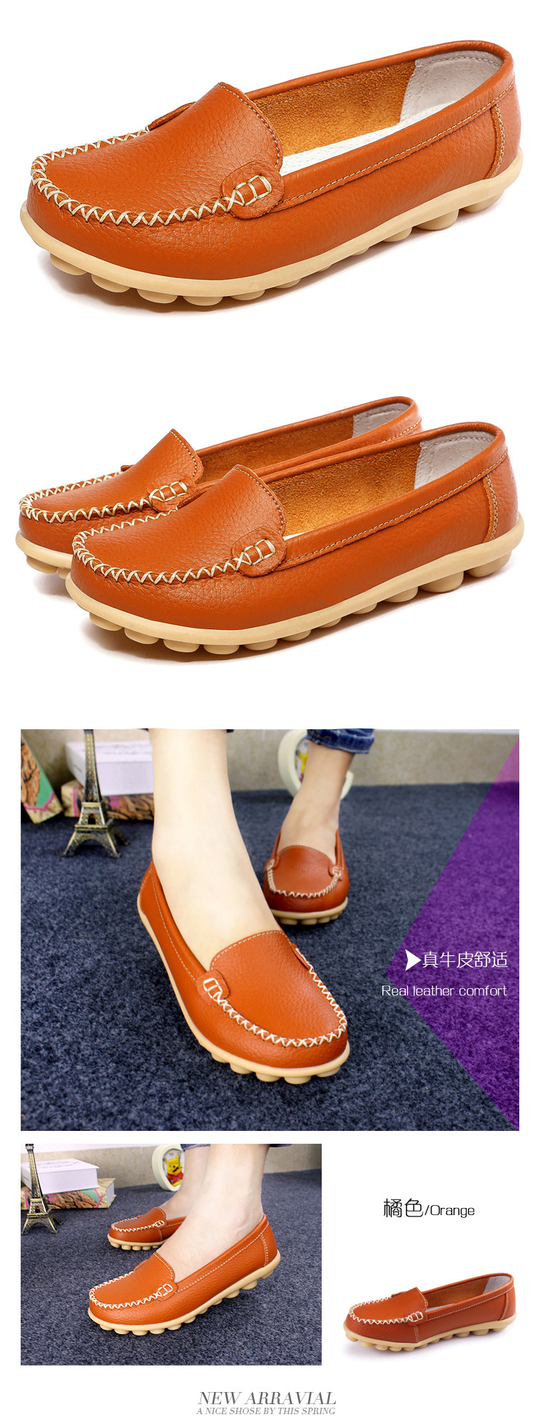 春秋休閒護士小白鞋淺口平底大碼媽媽鞋真皮防滑豆豆鞋軟底樂福鞋