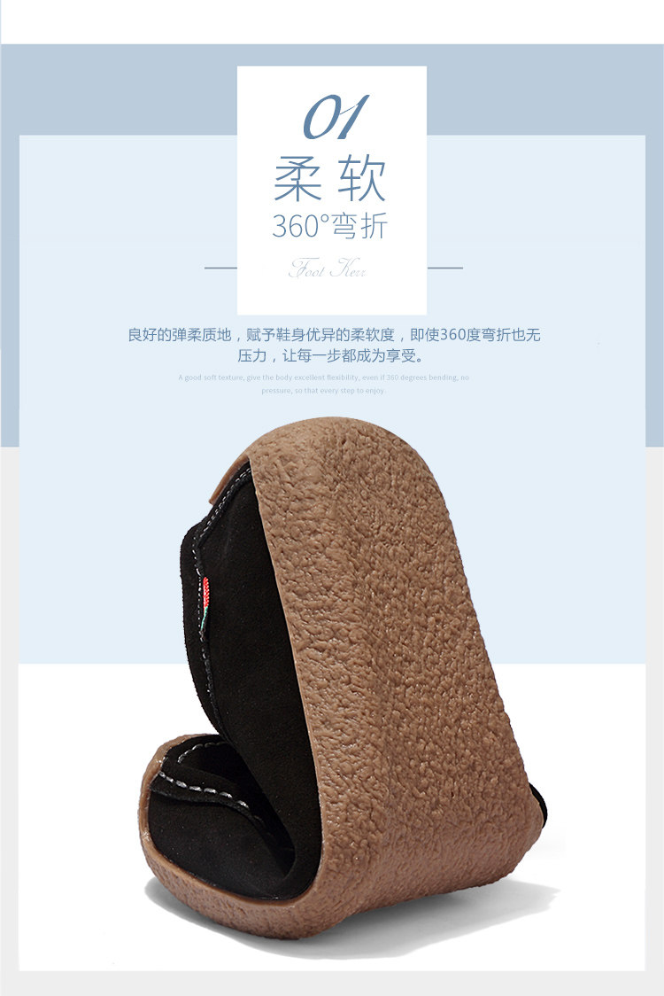 2024春季加絨平底鞋女士豆豆鞋真皮休閒單鞋孕婦媽媽防滑棉鞋大碼