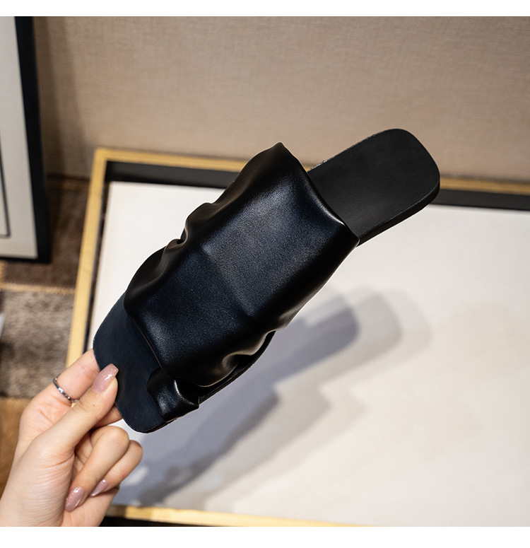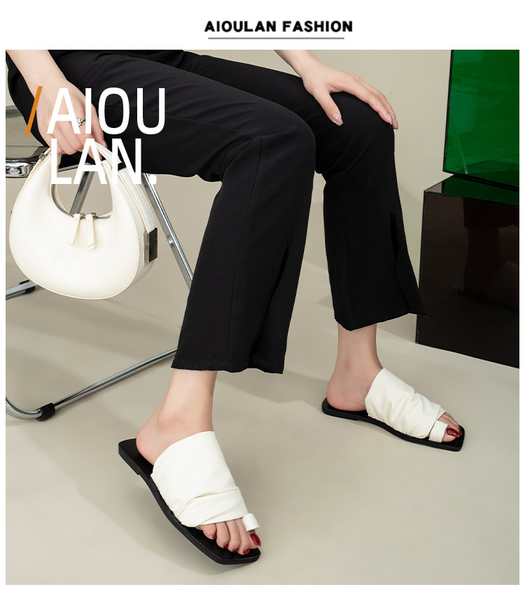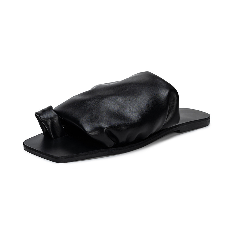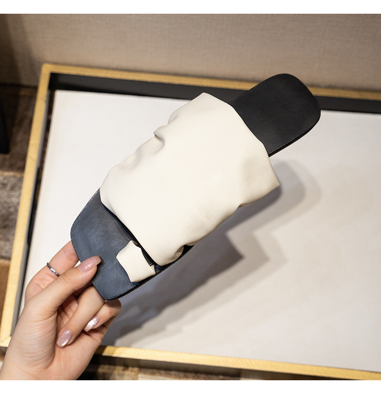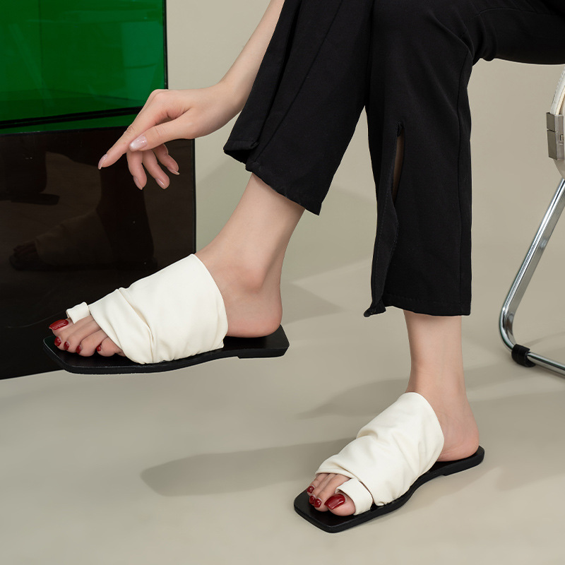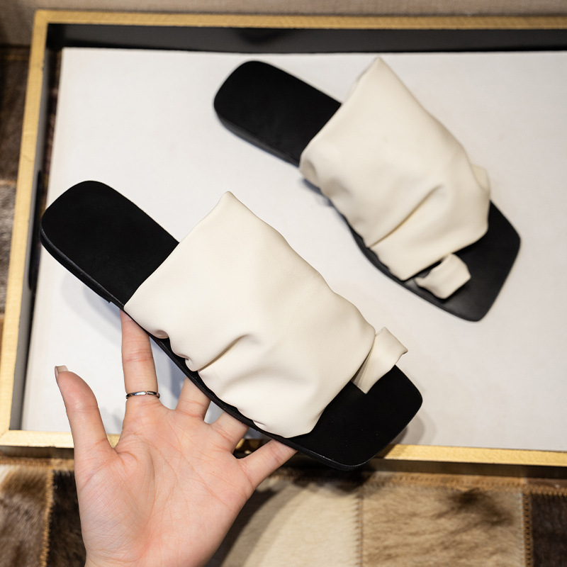 小衆設計感拖鞋女外穿2025年新款夏季褶皺堆堆沙灘平底套夾趾涼鞋
