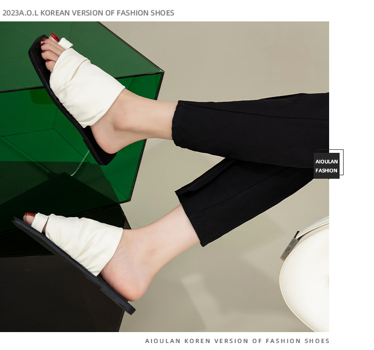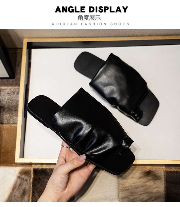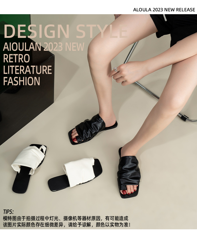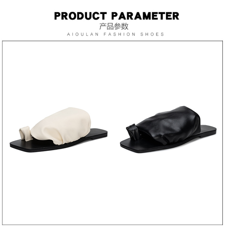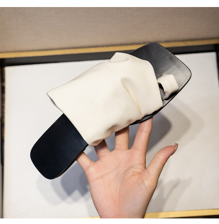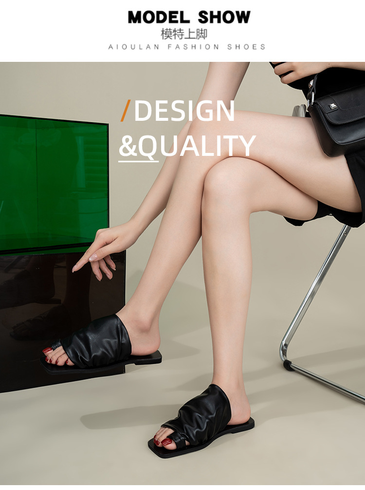小衆設計感拖鞋女外穿2025年新款夏季褶皺堆堆沙灘平底套夾趾涼鞋