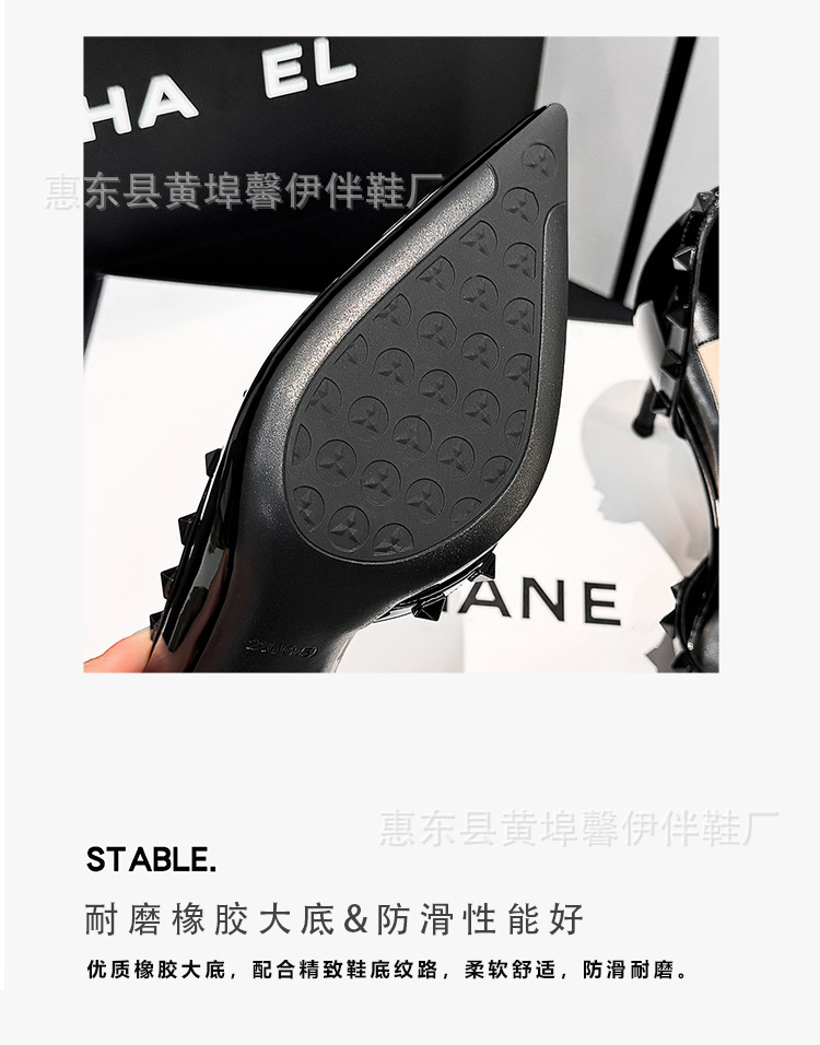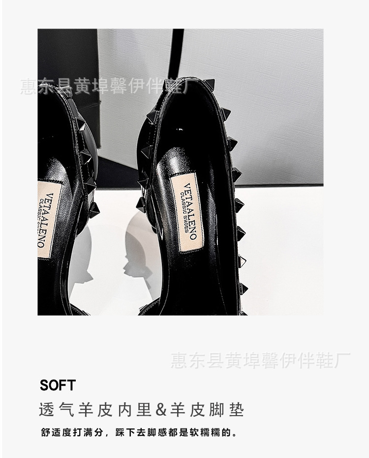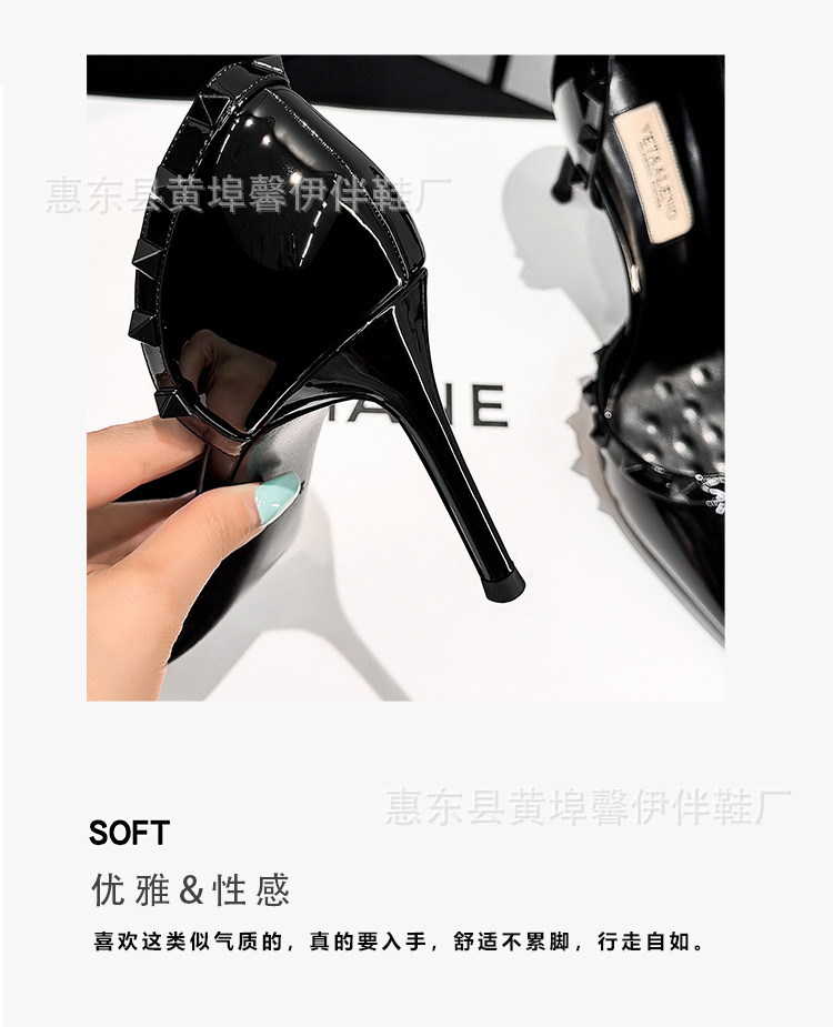 裸色漆皮高跟鞋女2025春夏季性感細跟尖頭側空鉚釘鞋鉚釘款超高跟