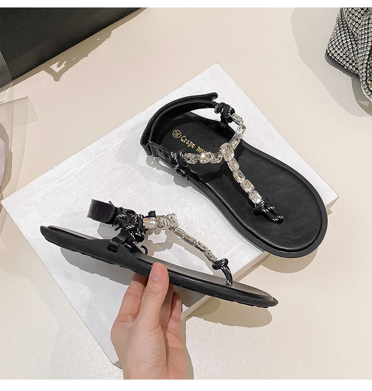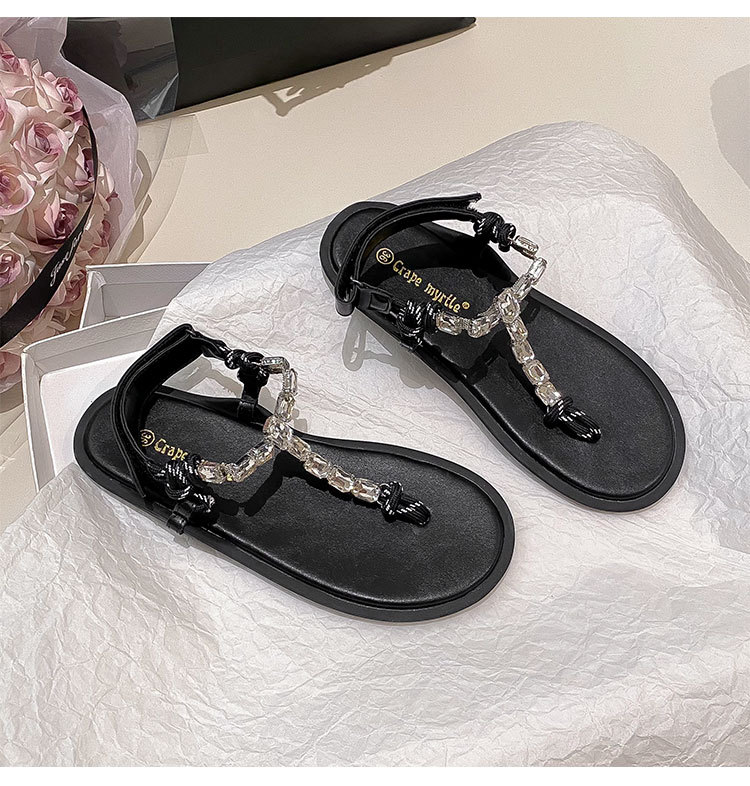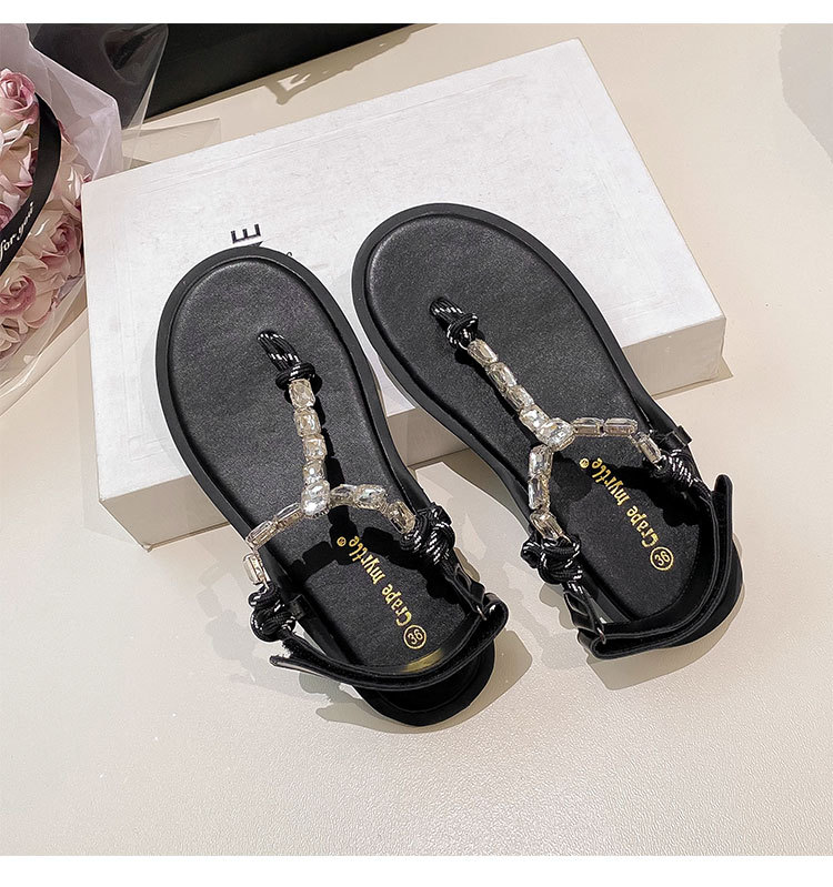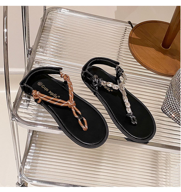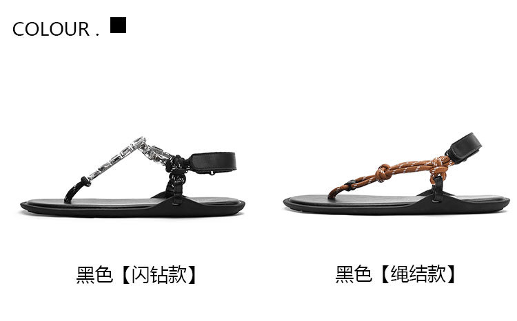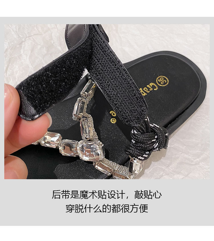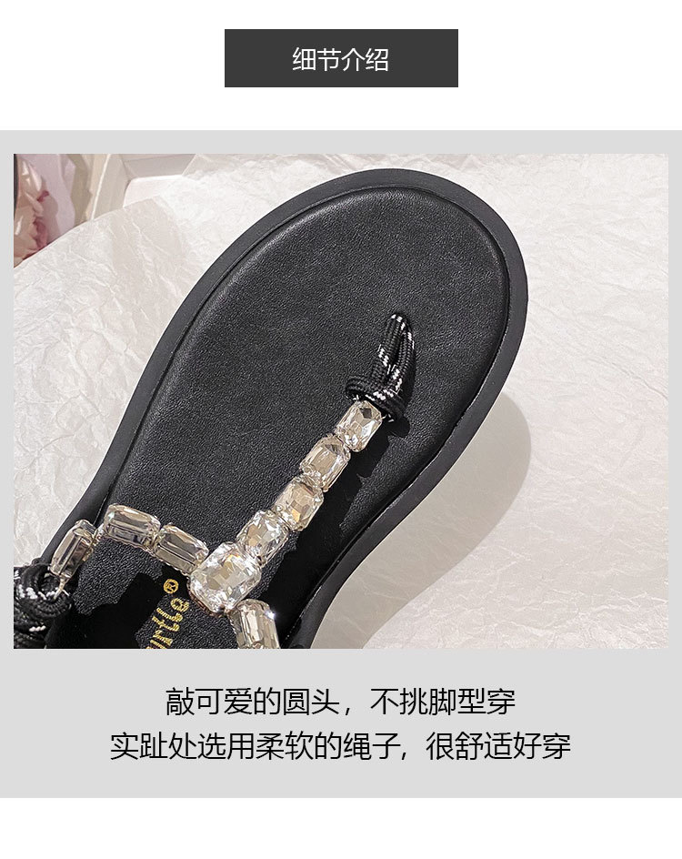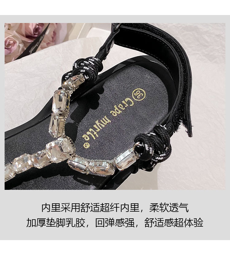葡萄媽閃閃水鑽~羅馬風平底繩結百搭夾趾外穿人字拖涼鞋女夏季款