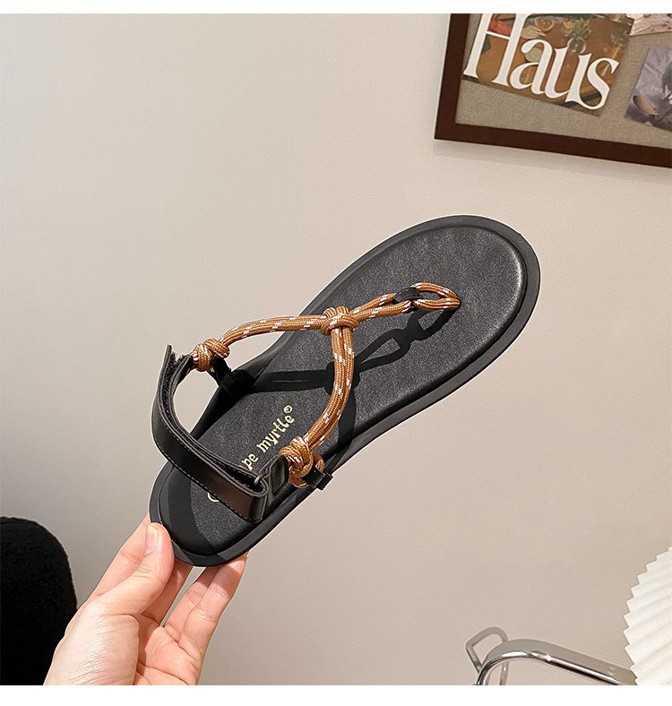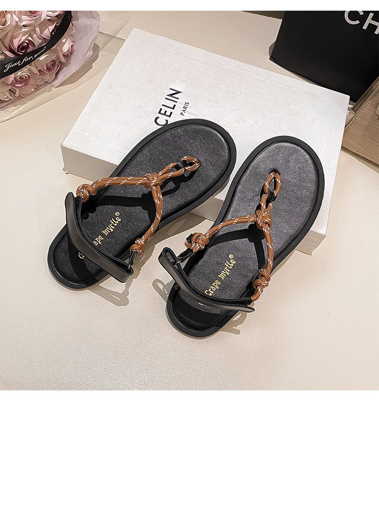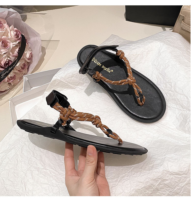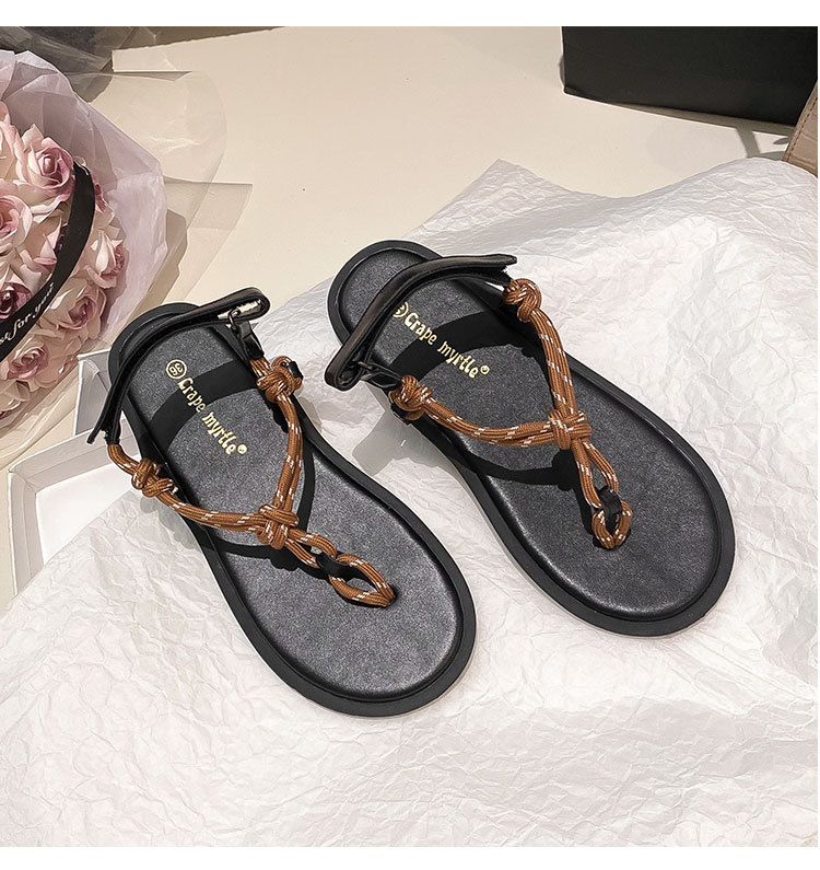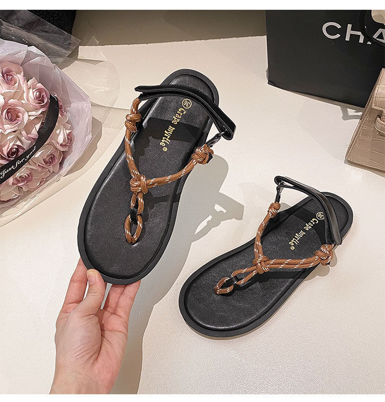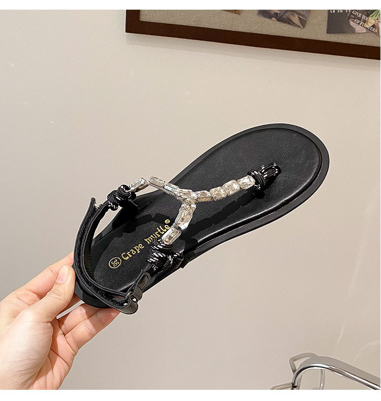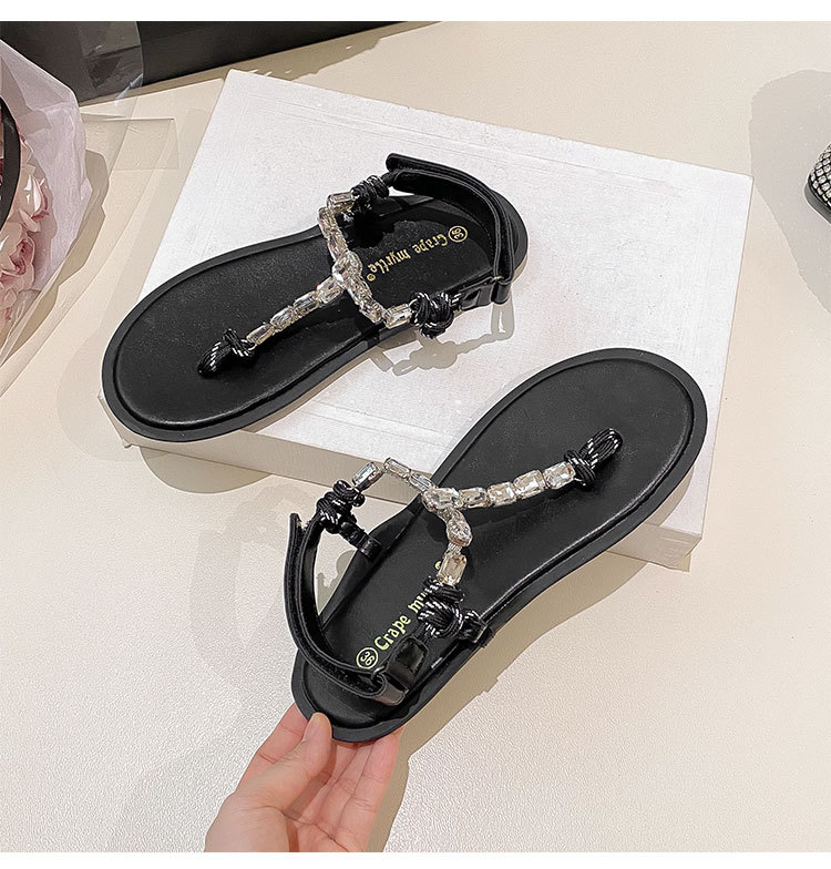 葡萄媽閃閃水鑽~羅馬風平底繩結百搭夾趾外穿人字拖涼鞋女夏季款
