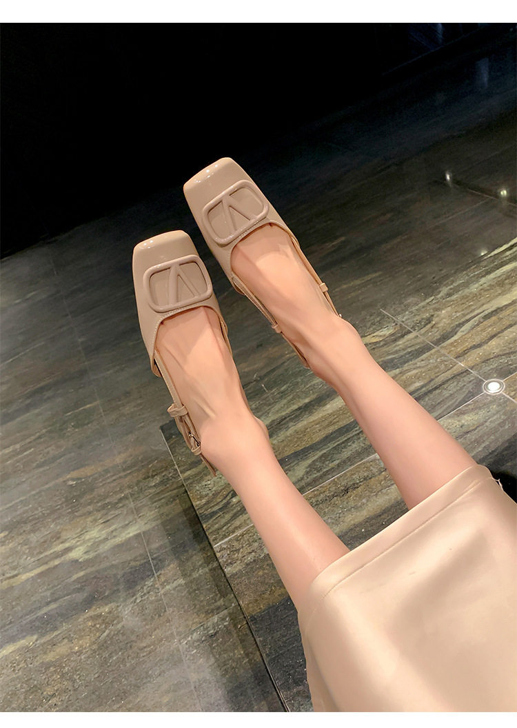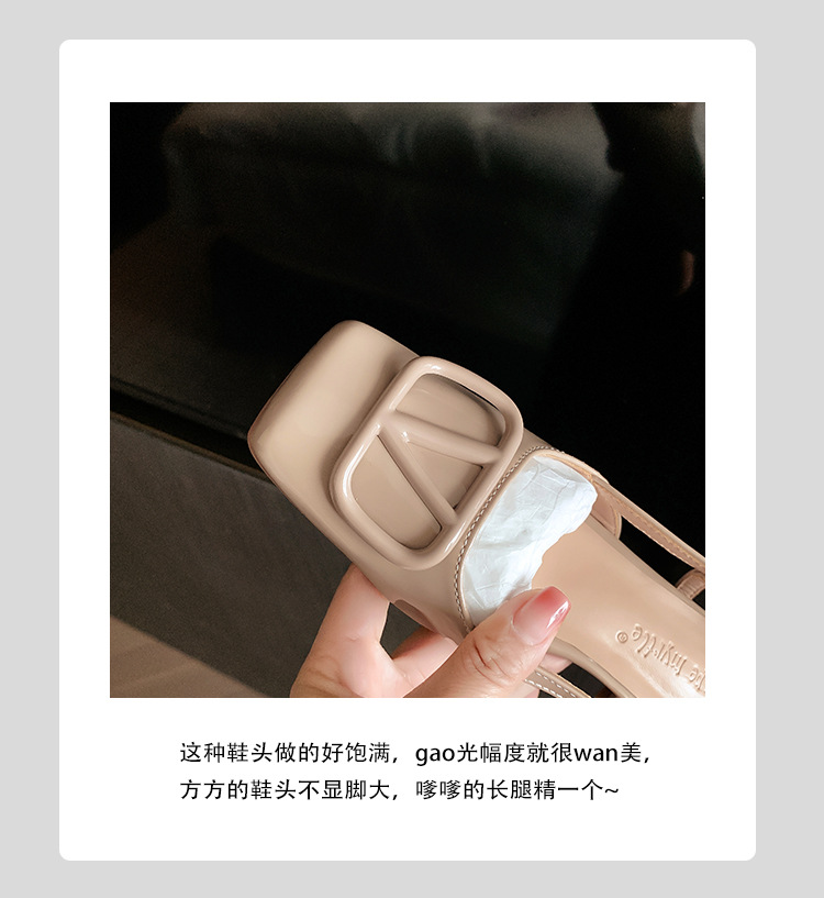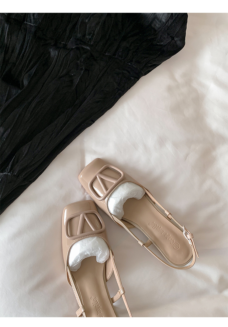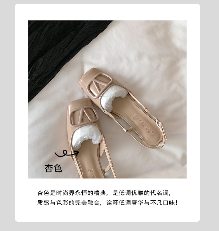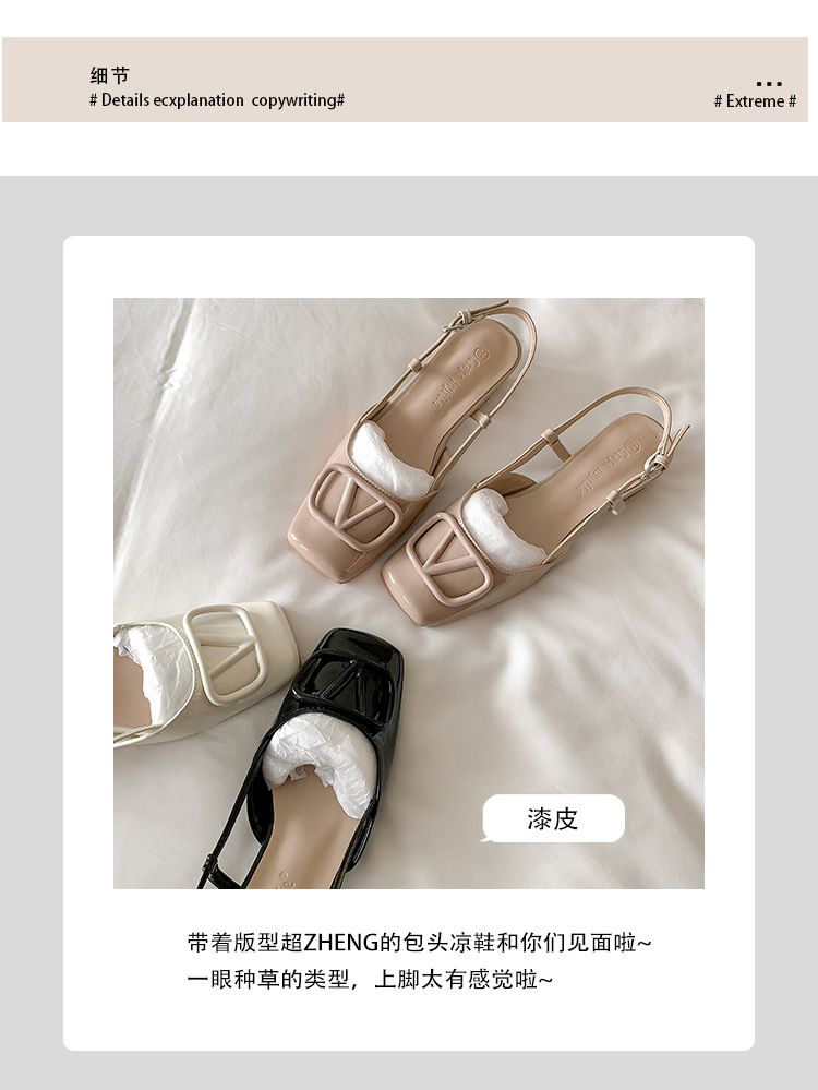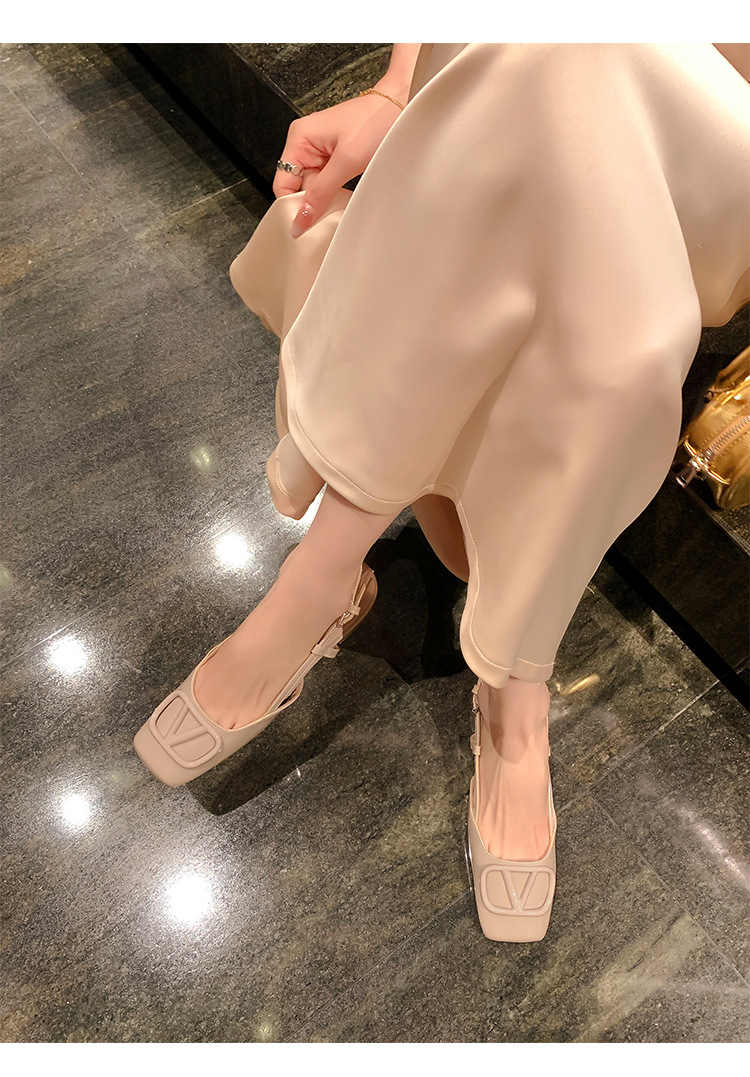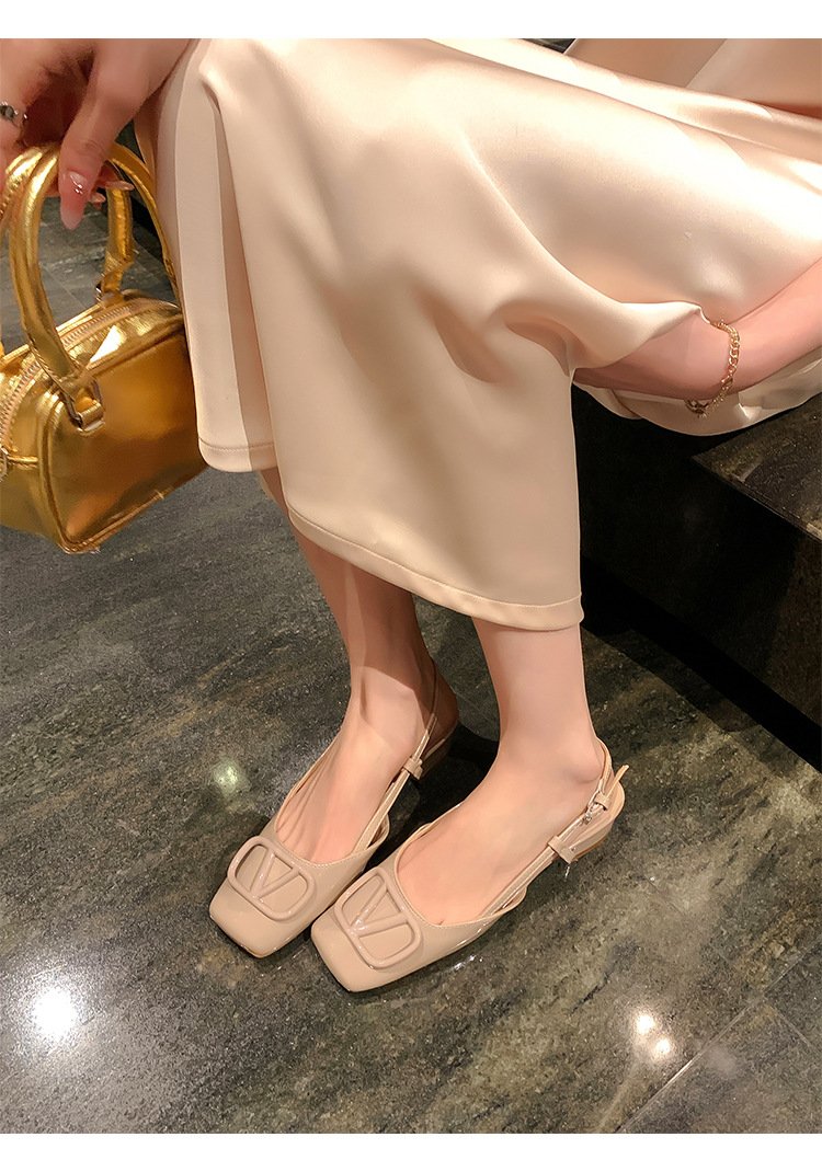 同款黛爾公主~方頭V釦包頭後空裸粉色平底涼鞋女通勤鞋