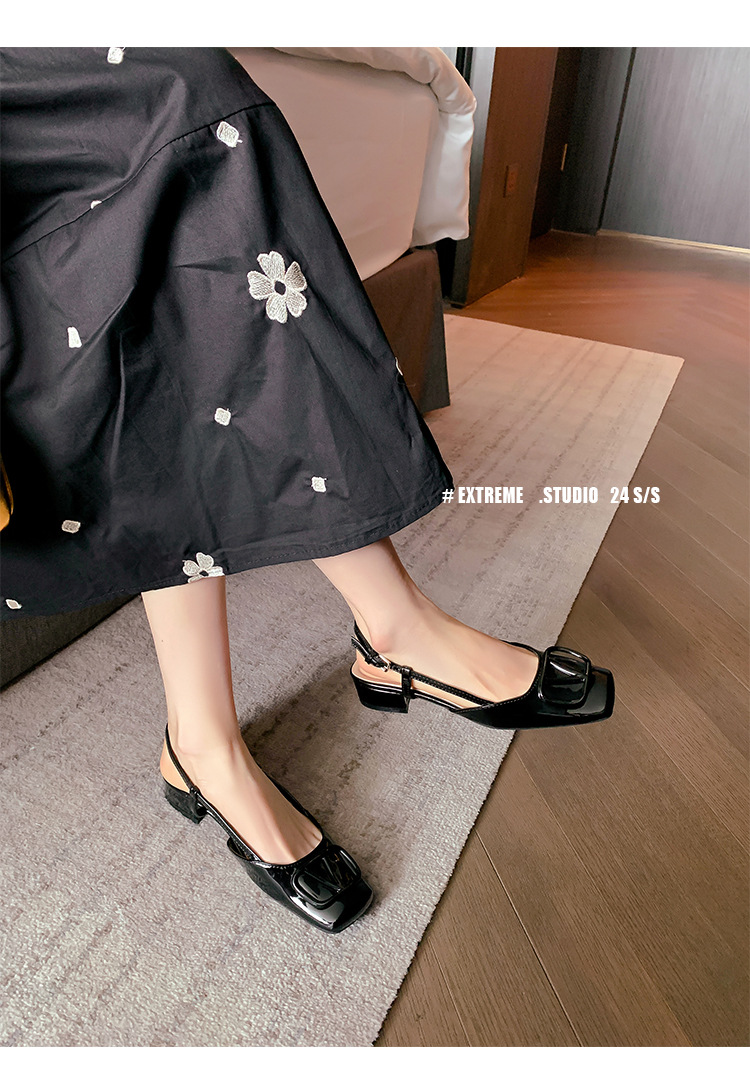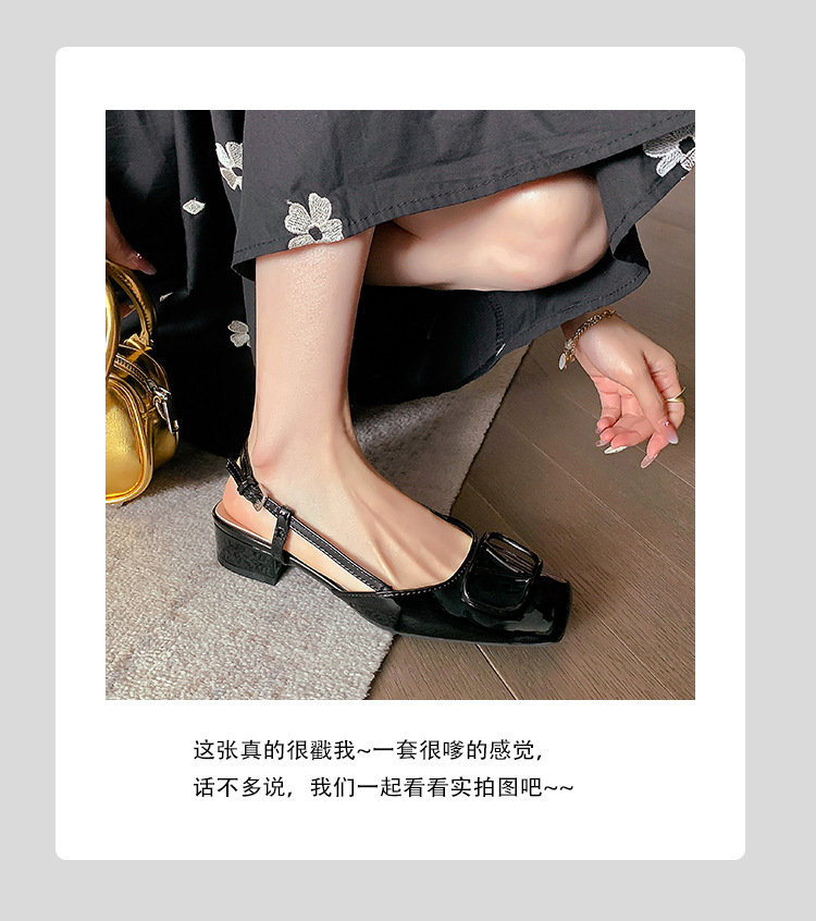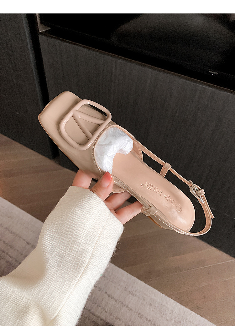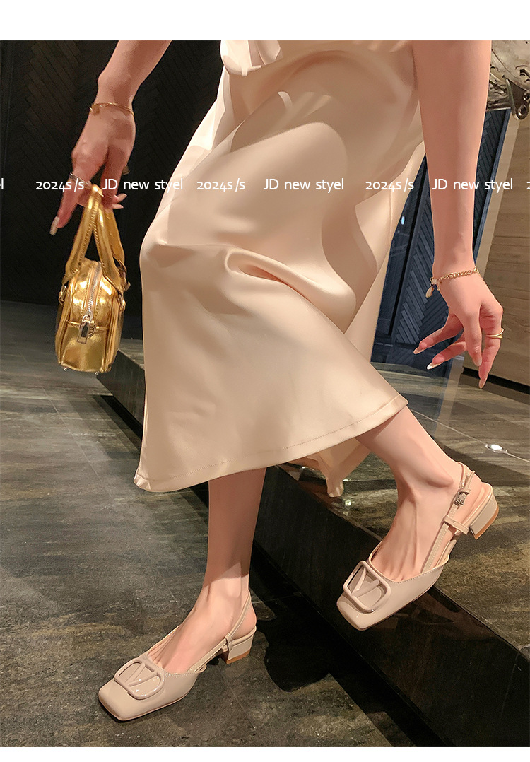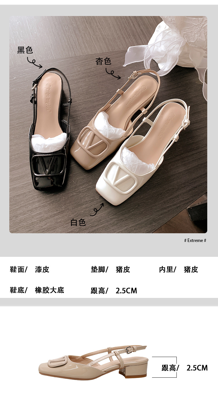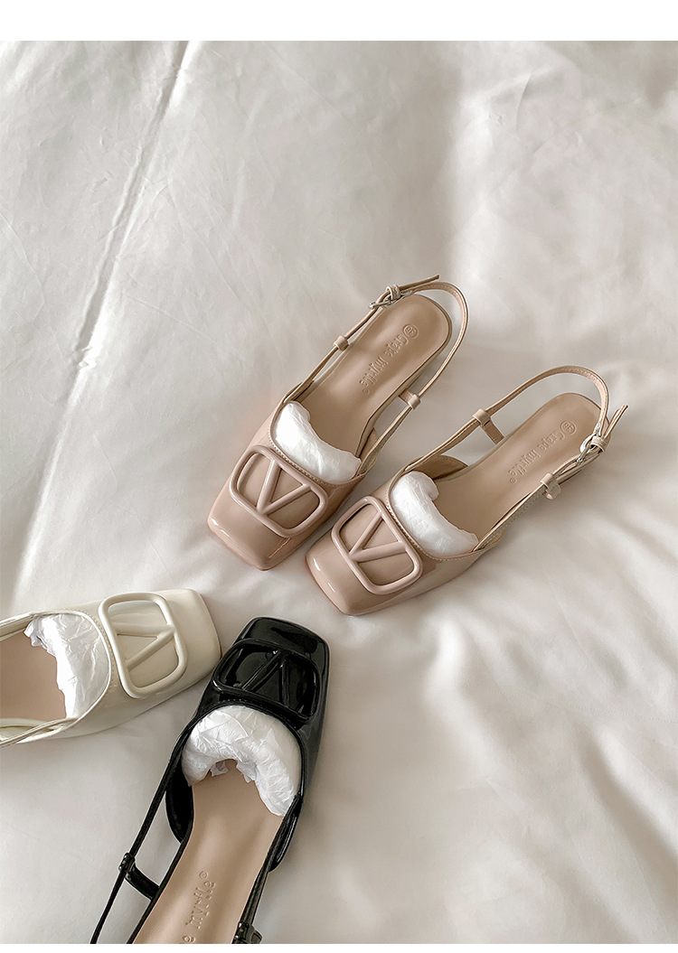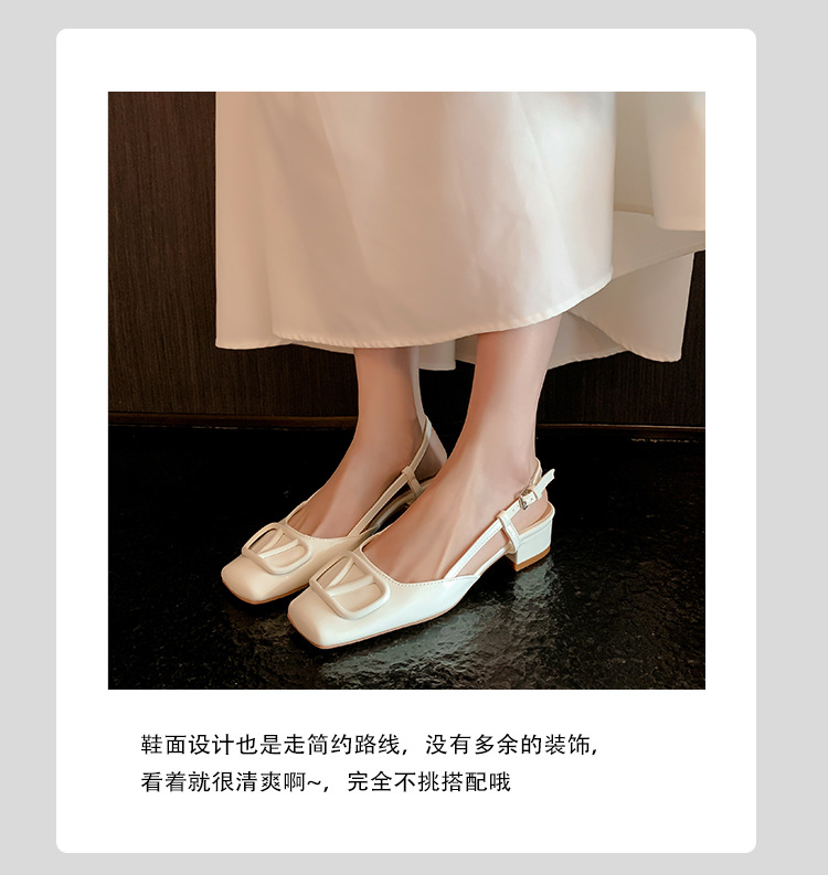 同款黛爾公主~方頭V釦包頭後空裸粉色平底涼鞋女通勤鞋