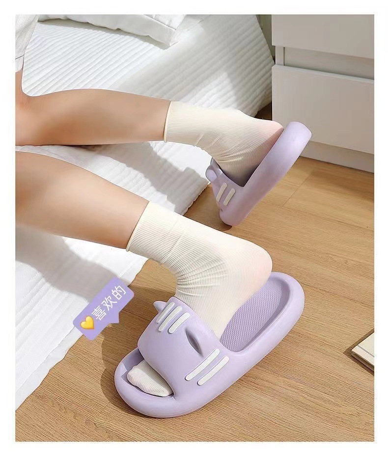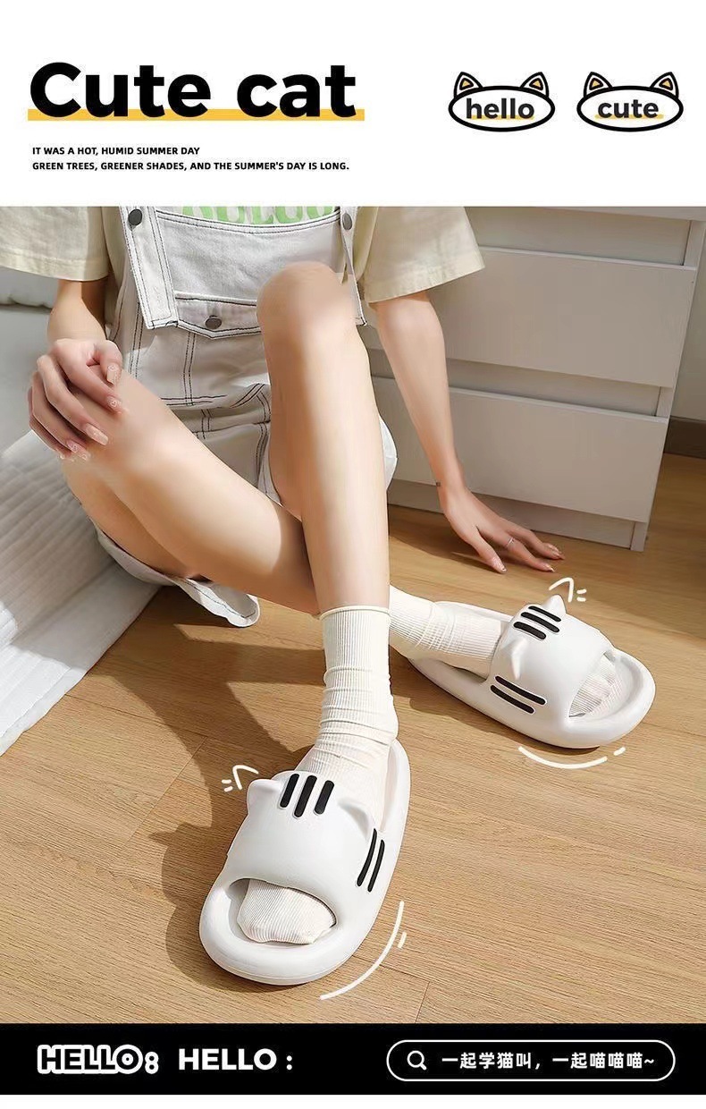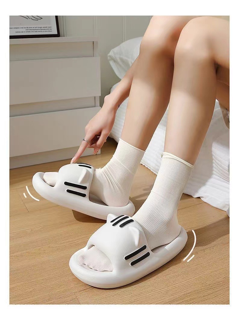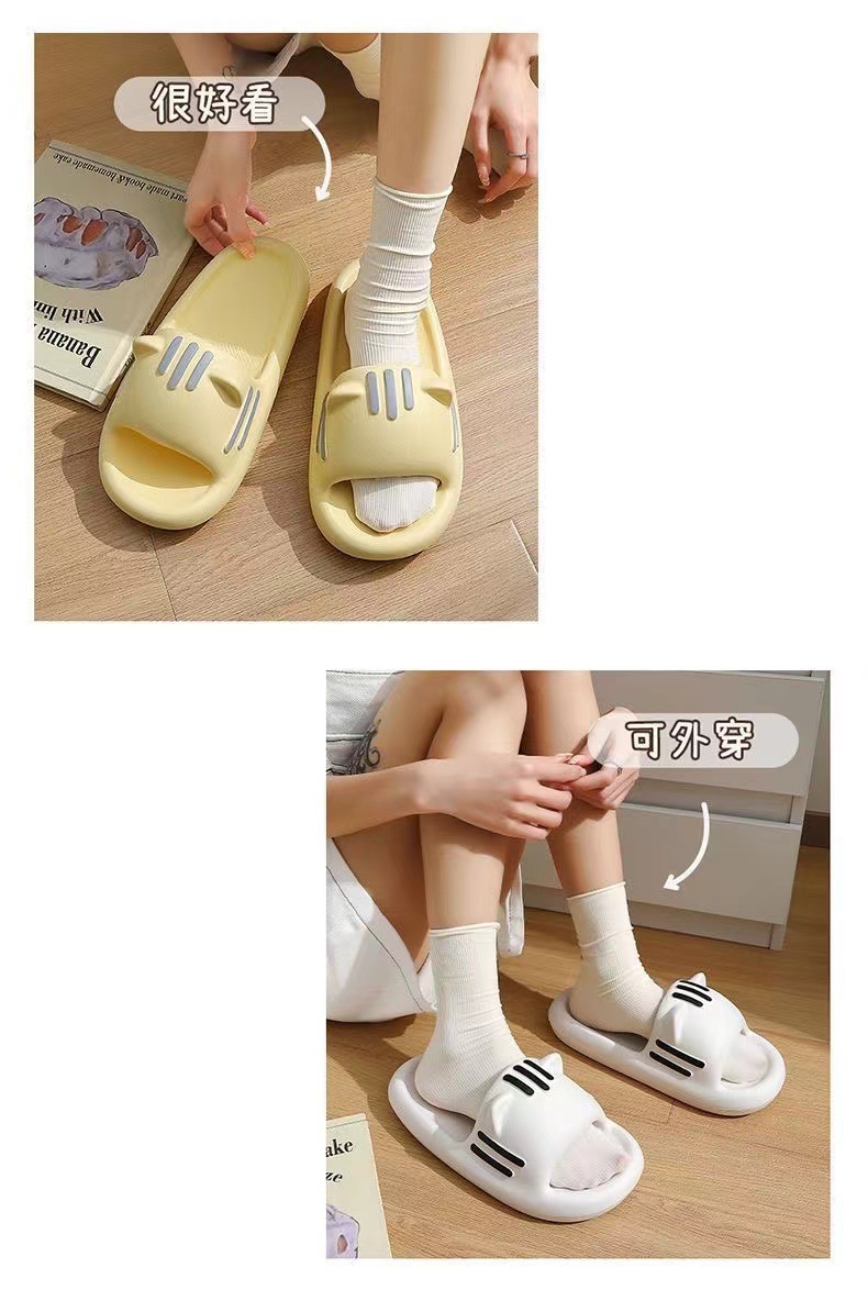 踩屎感拖鞋女夏外穿2024年新款厚底百搭家居一字拖貓耳朵 防滑涼