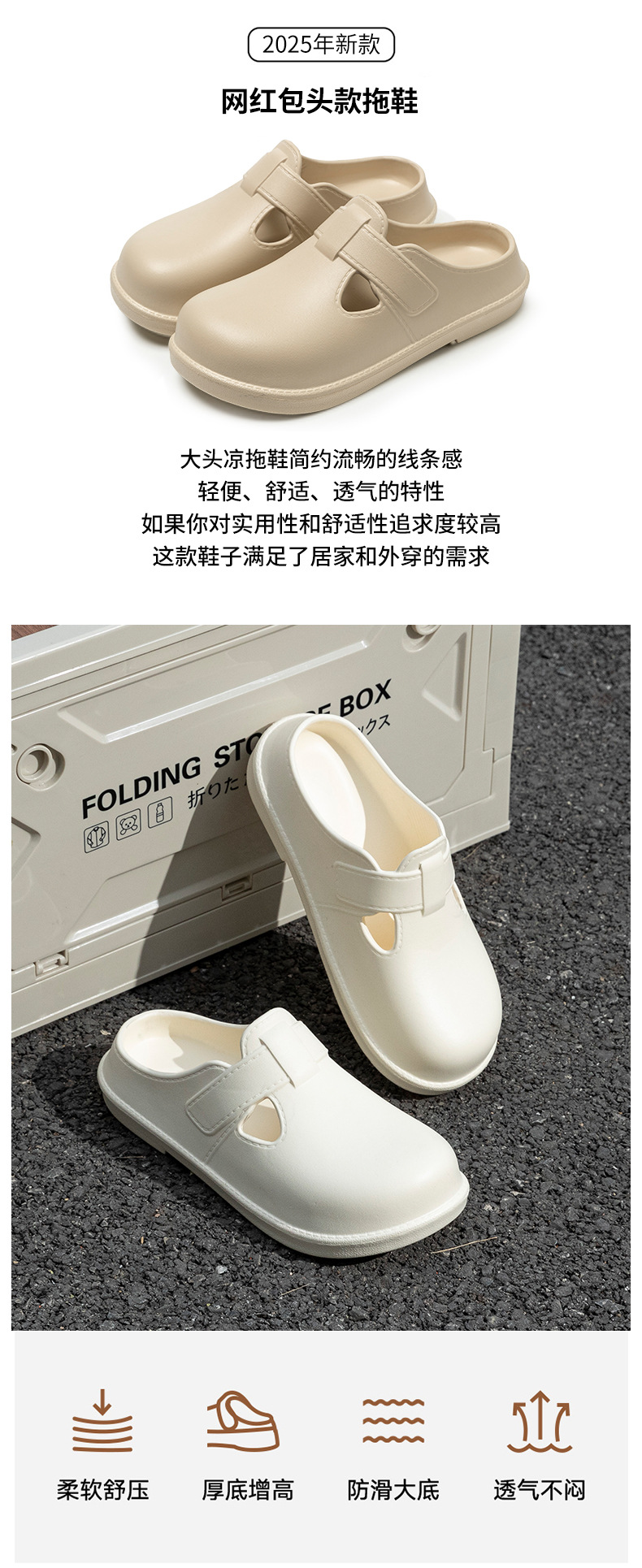 新款踩屎感EVA勃肯鞋女春夏時尚外穿休閒平底單鞋包頭拖鞋