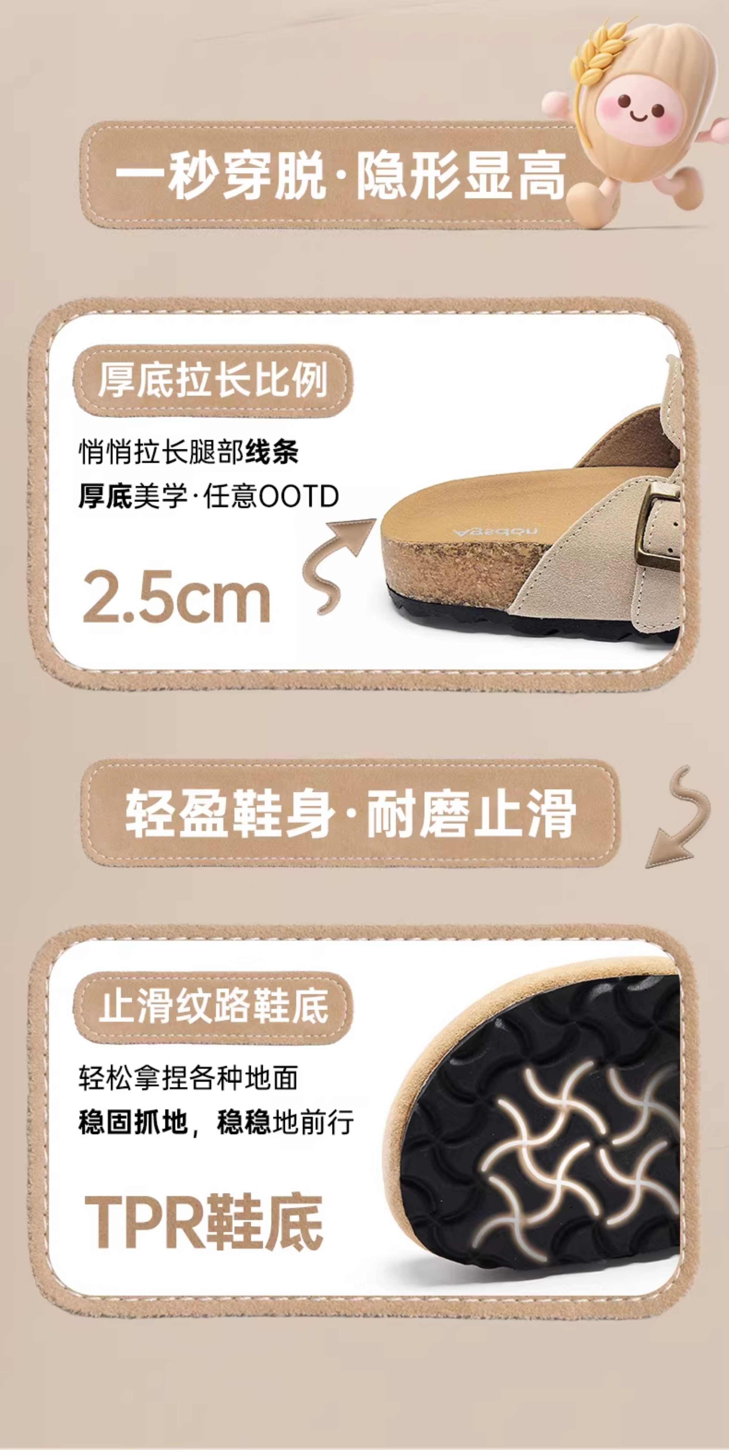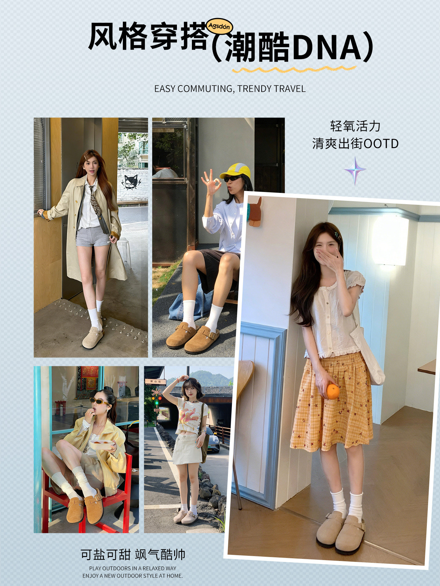 奧古獅登勃肯鞋女2026新款夏季一腳蹬厚底外穿超火包頭半拖鞋子爆
