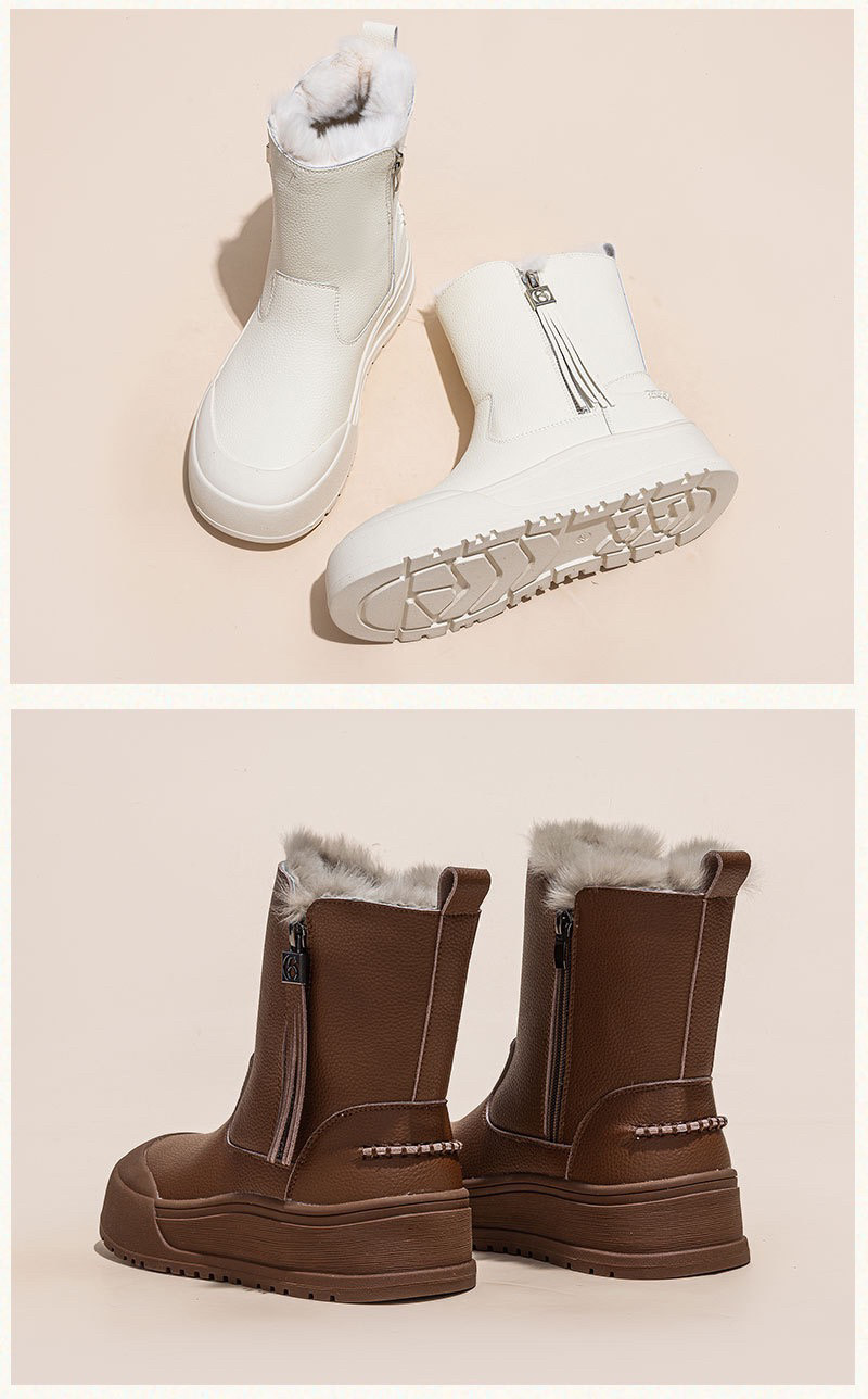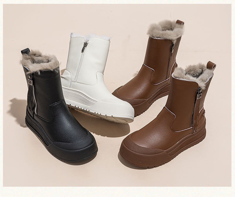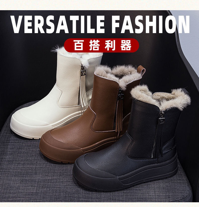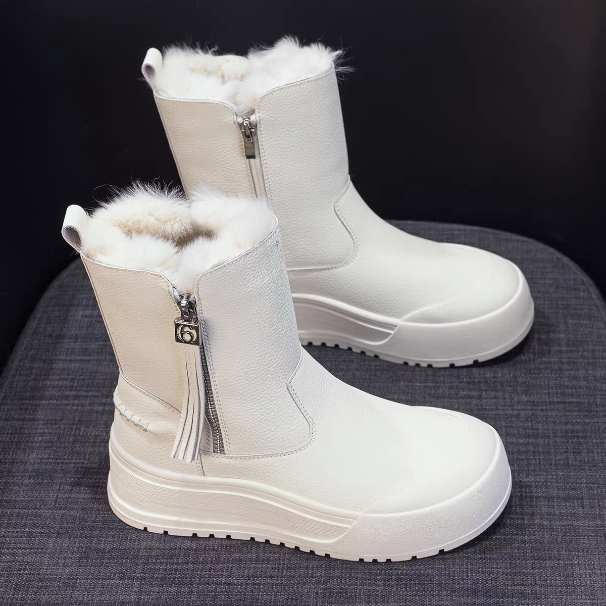 真皮白色雪地靴女皮毛一體2025年新款冬季加絨加厚雪地大棉鞋女冬