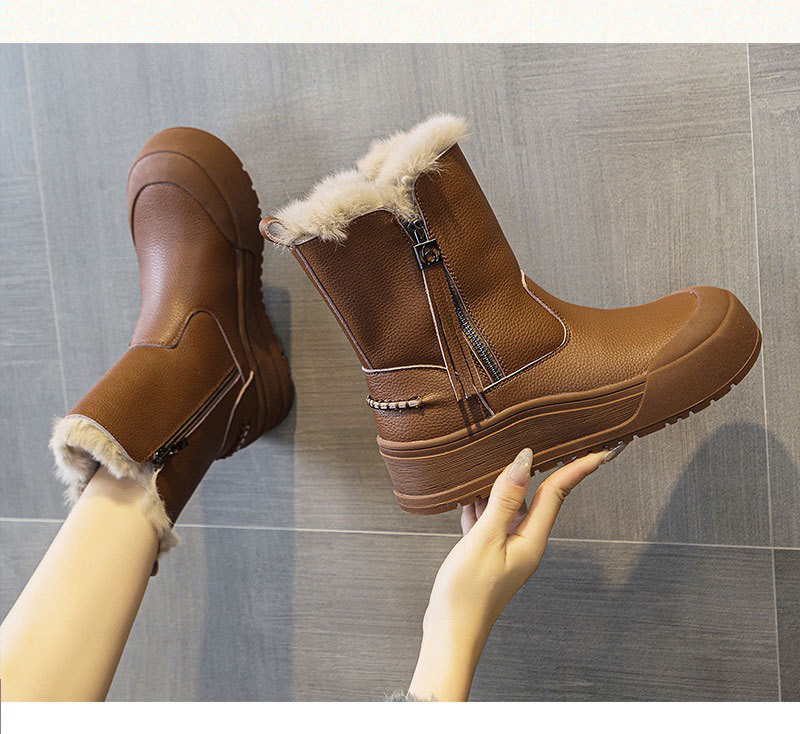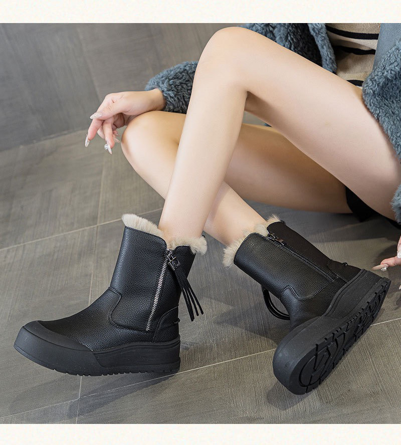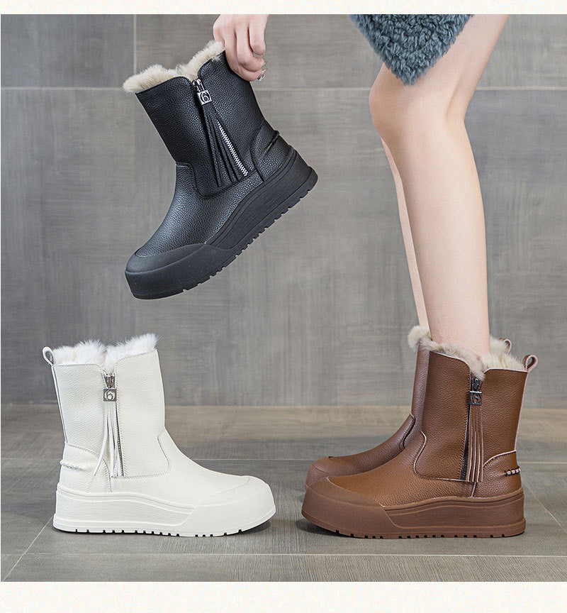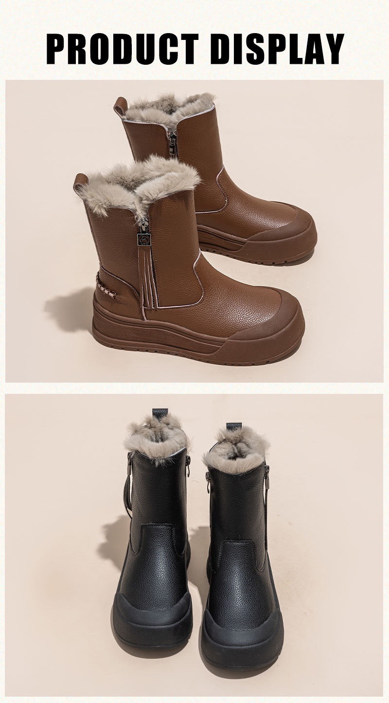 真皮白色雪地靴女皮毛一體2025年新款冬季加絨加厚雪地大棉鞋女冬
