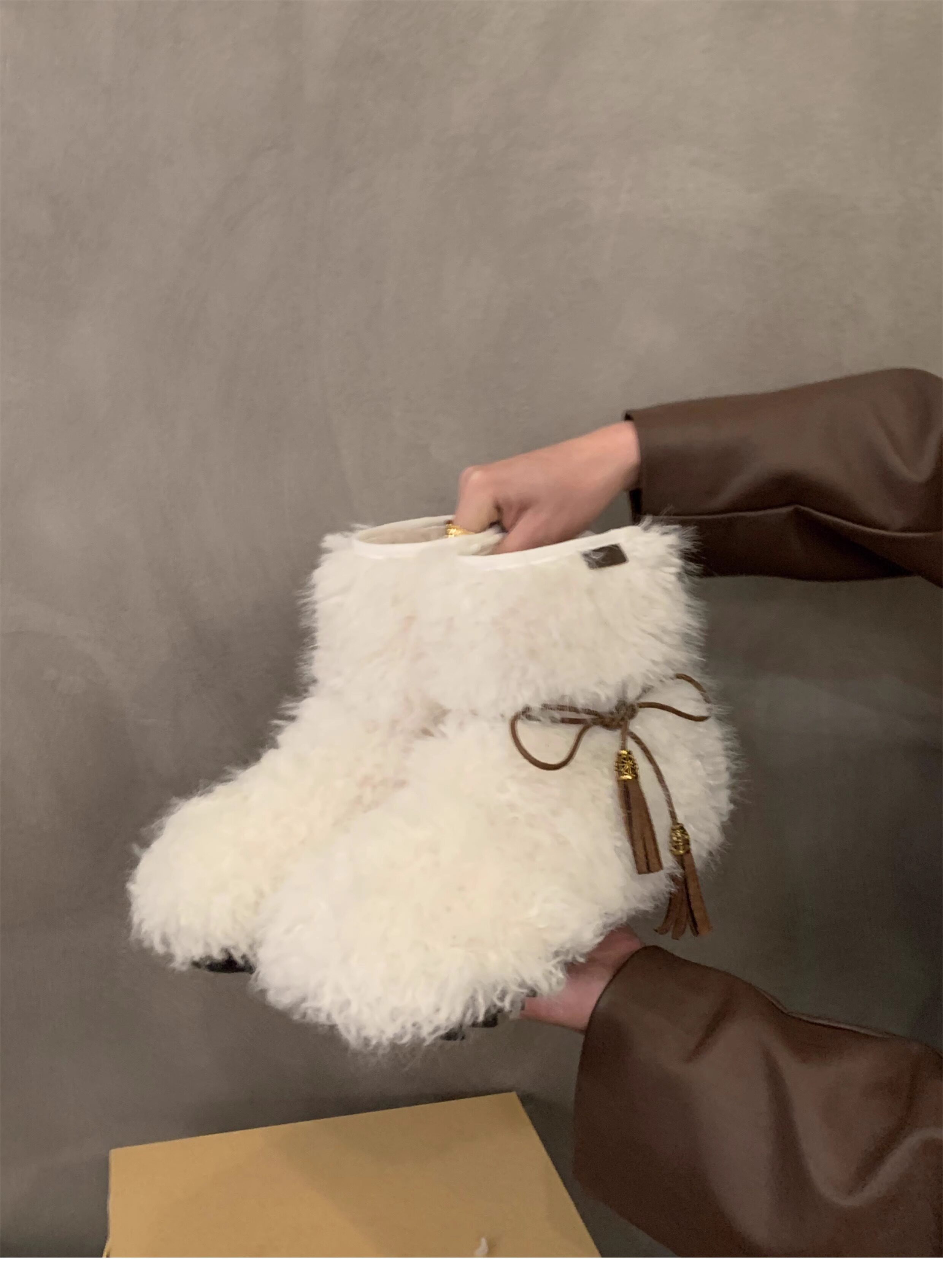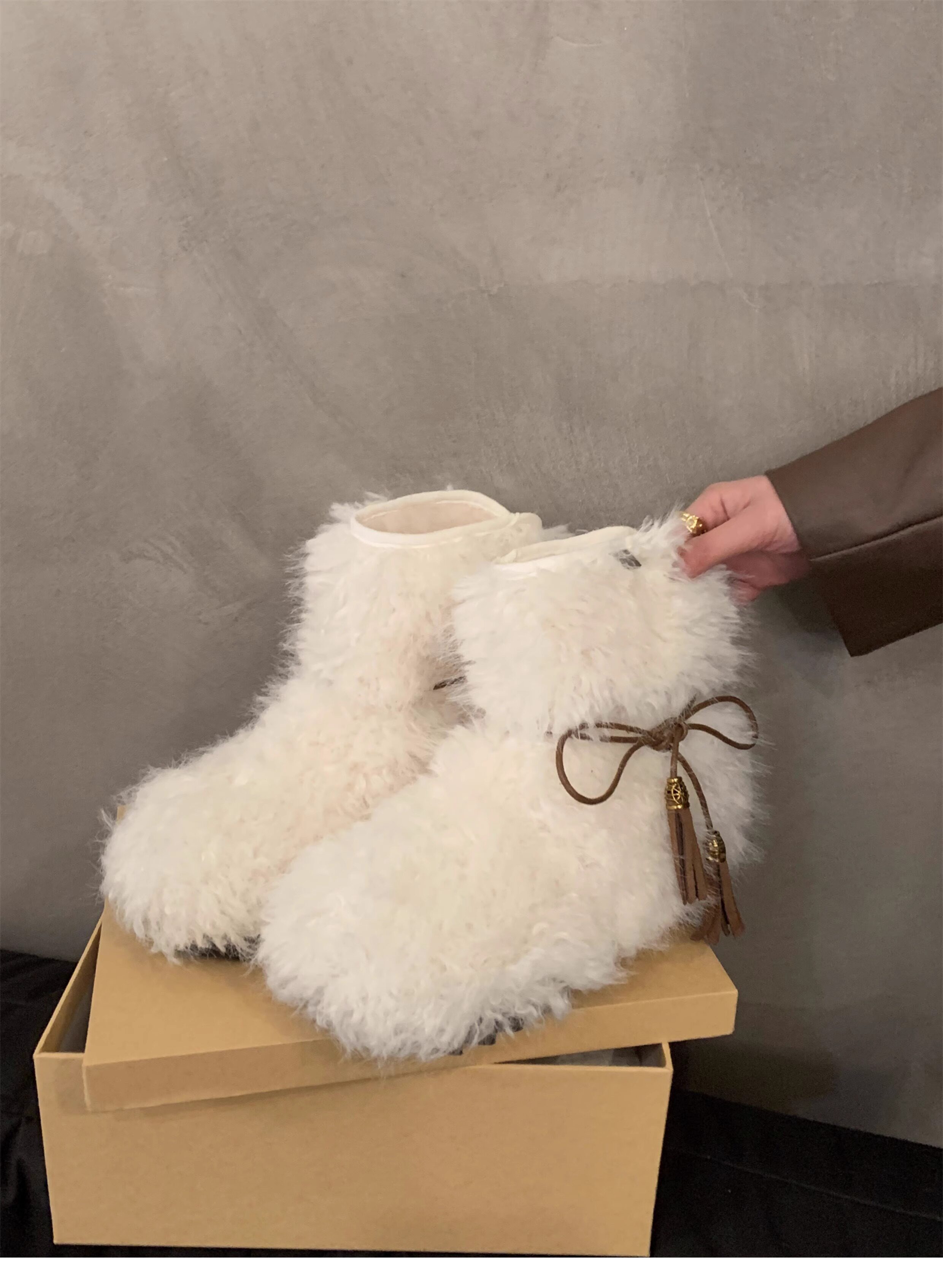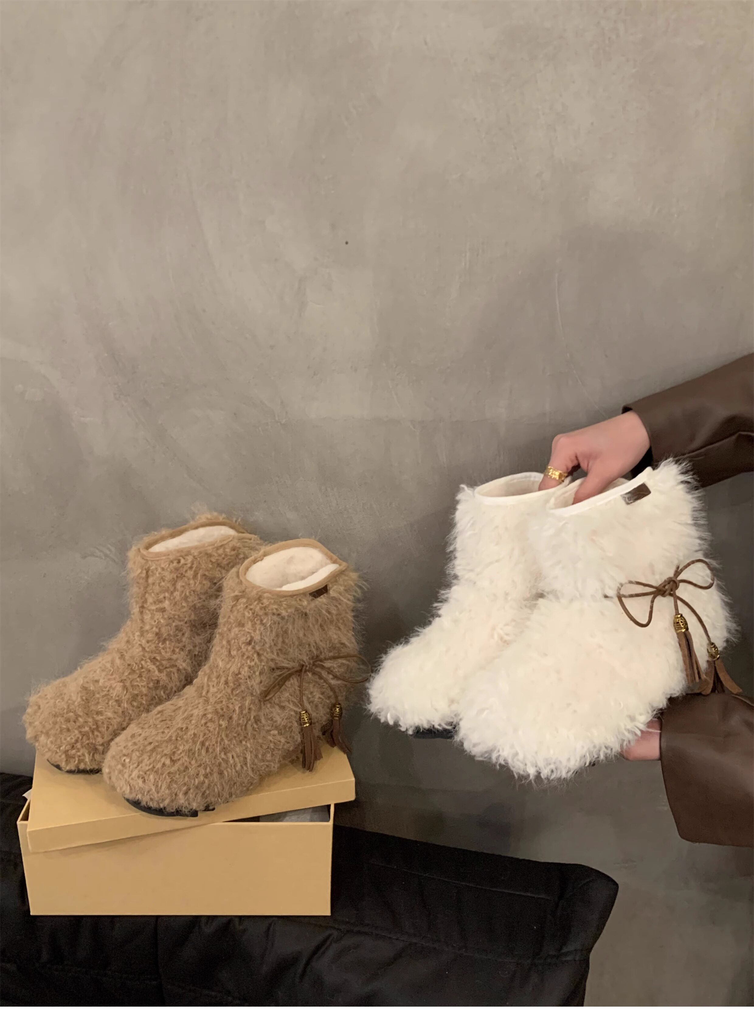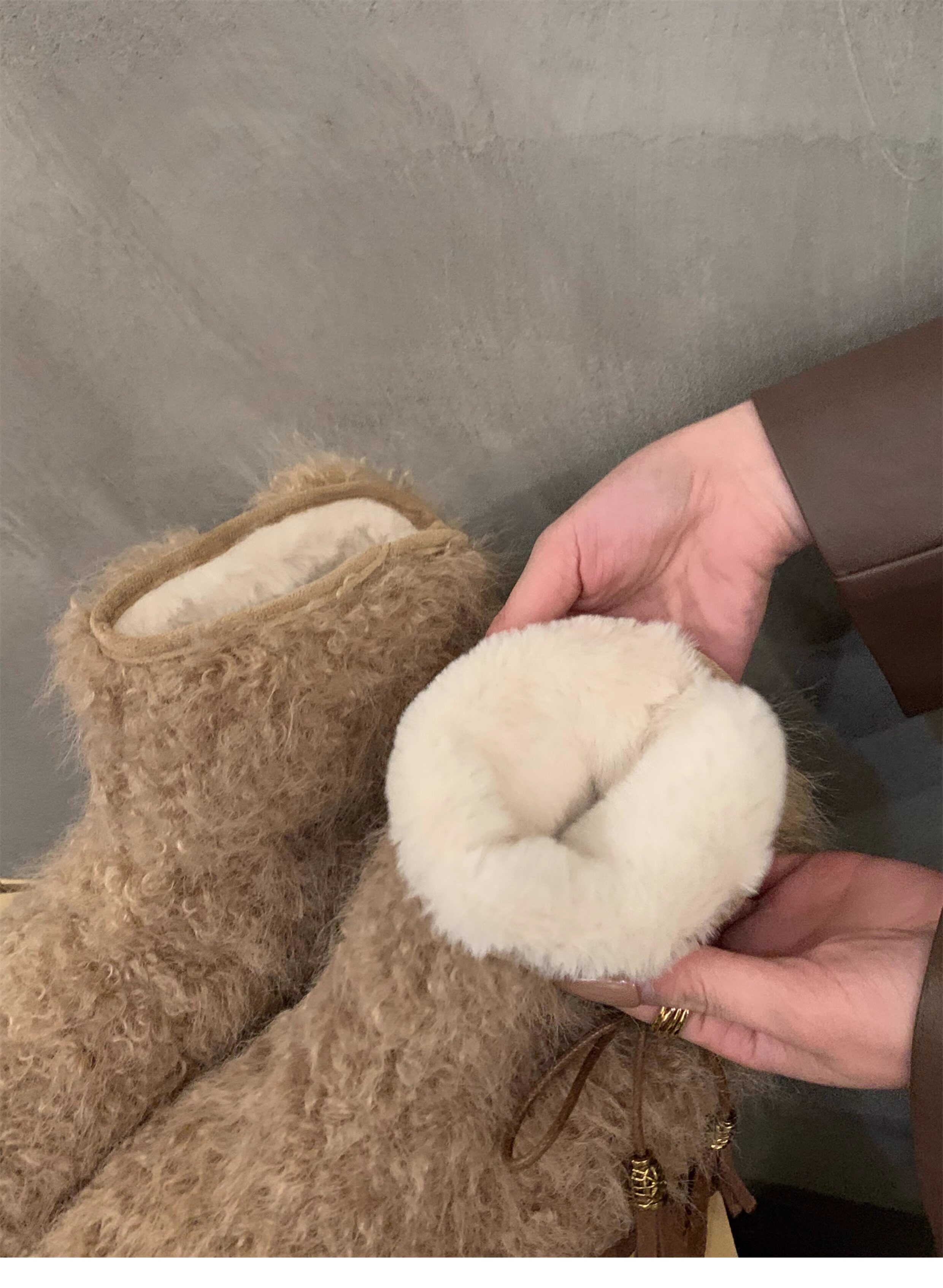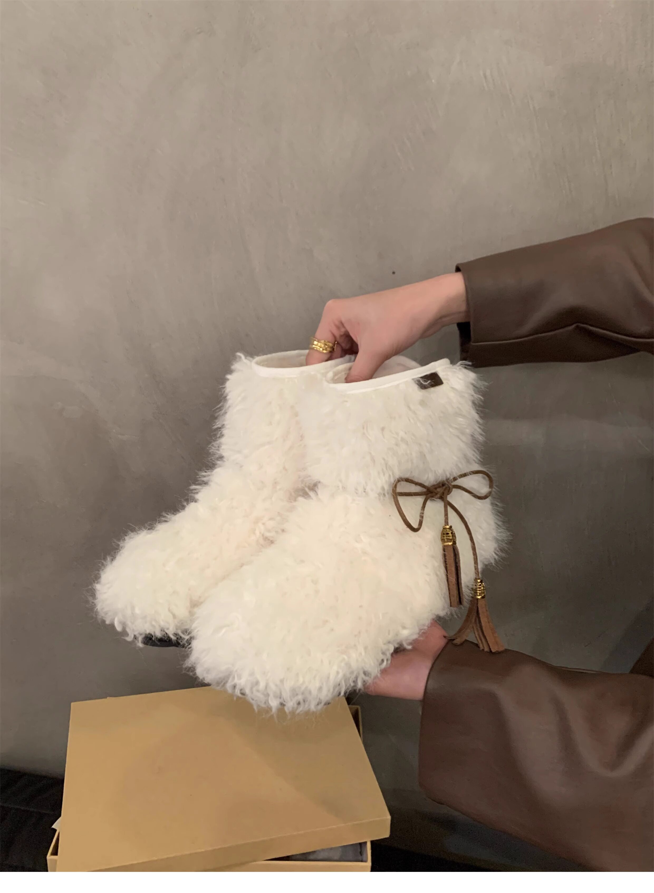 雪地靴女2026年秋冬新款流蘇外穿時尚厚底加絨保暖毛毛鞋家居棉靴