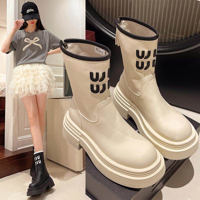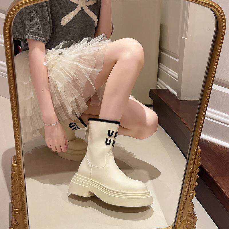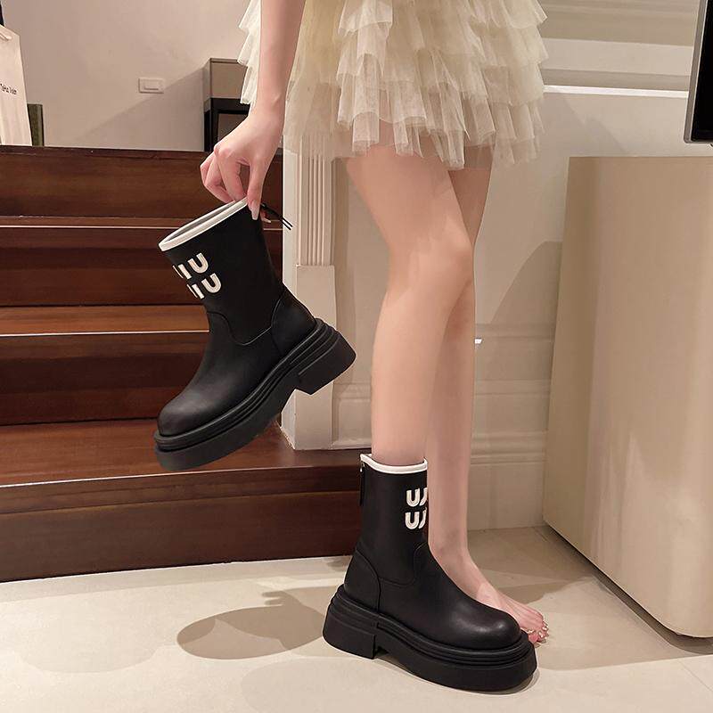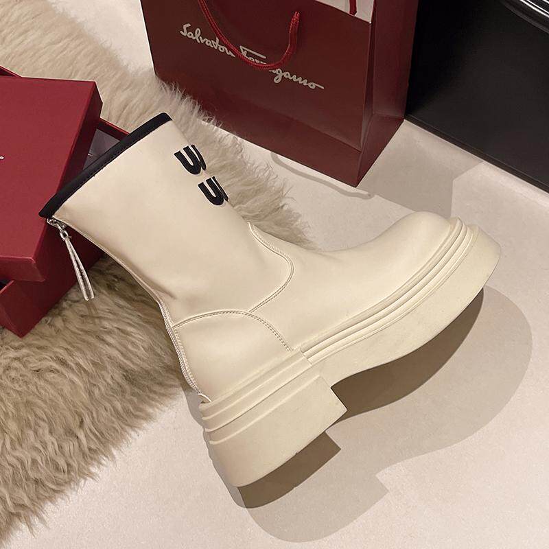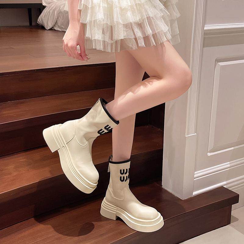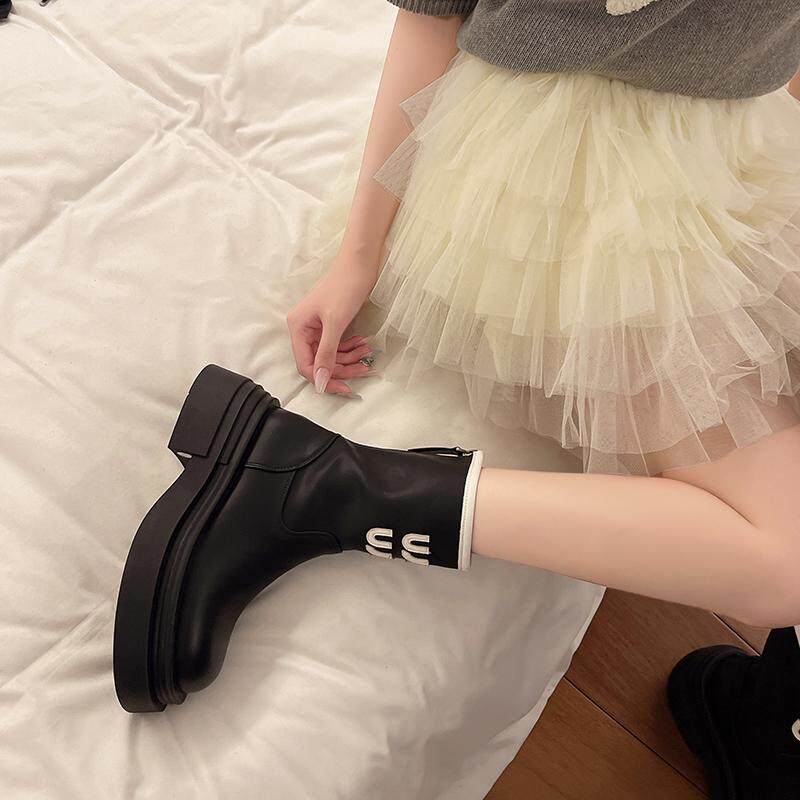 真皮9公分內增高馬丁靴女2026網紅爆款時尚氣質靴子時尚厚底短靴