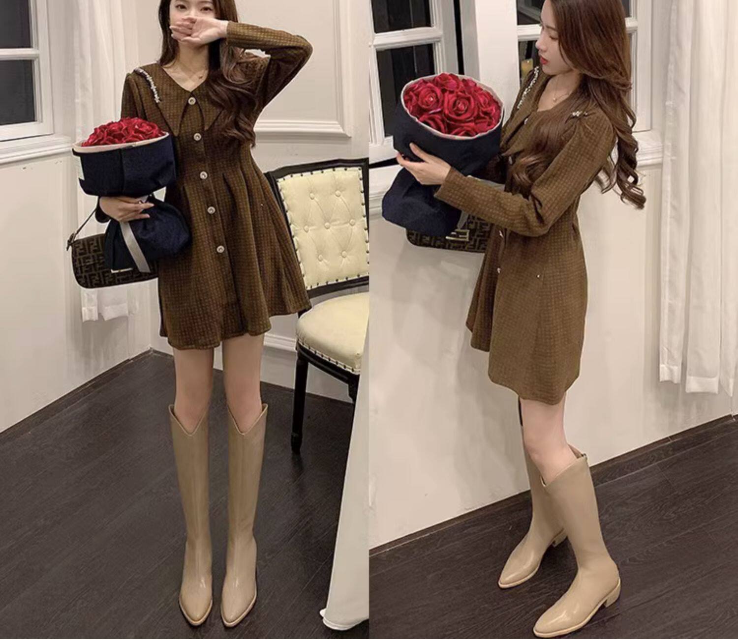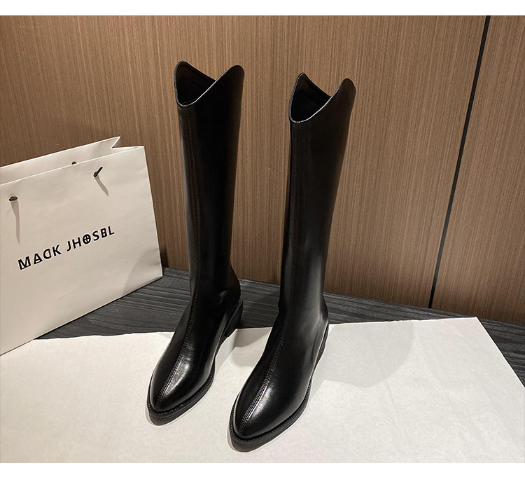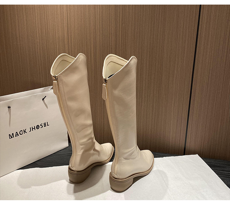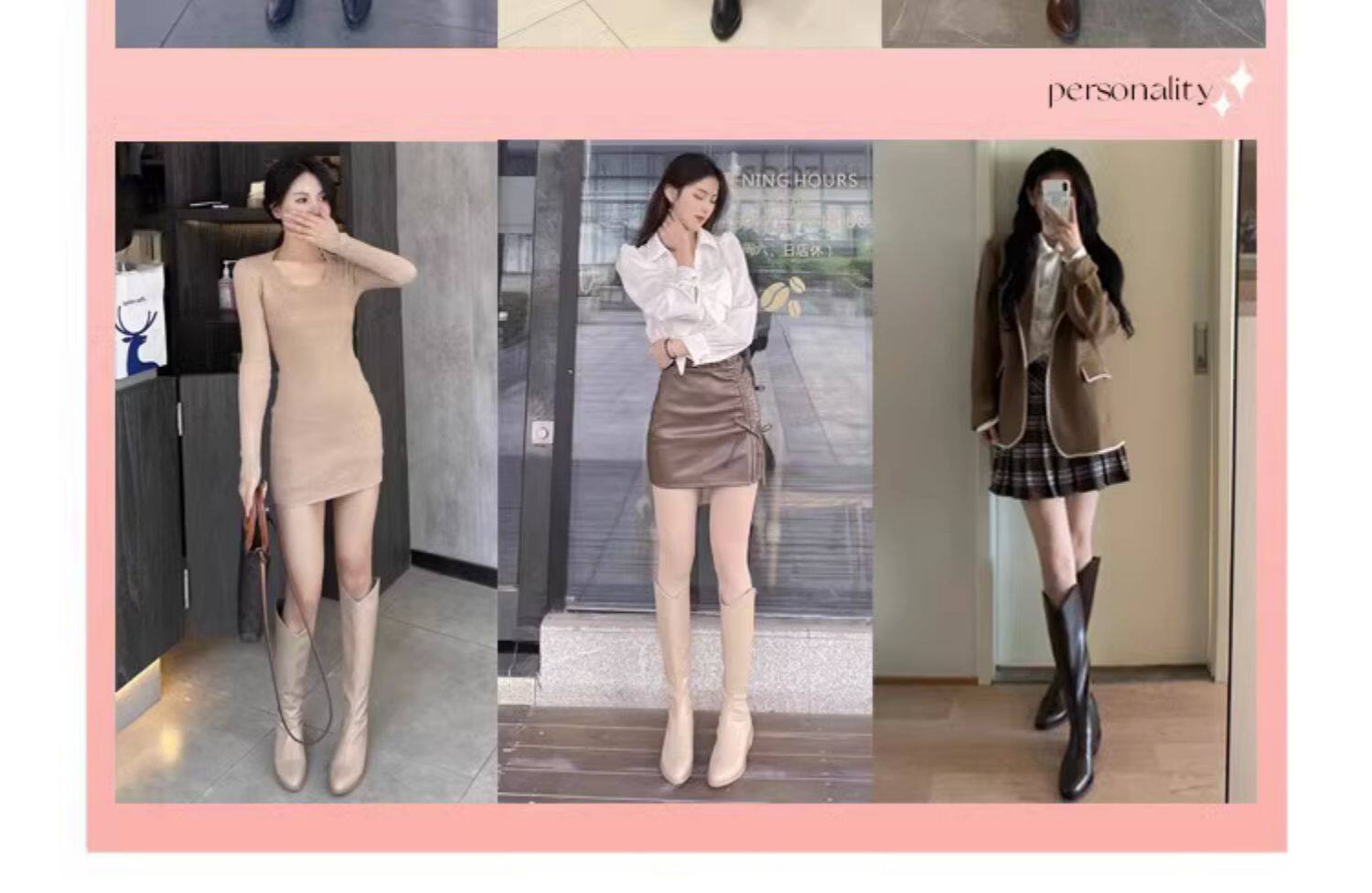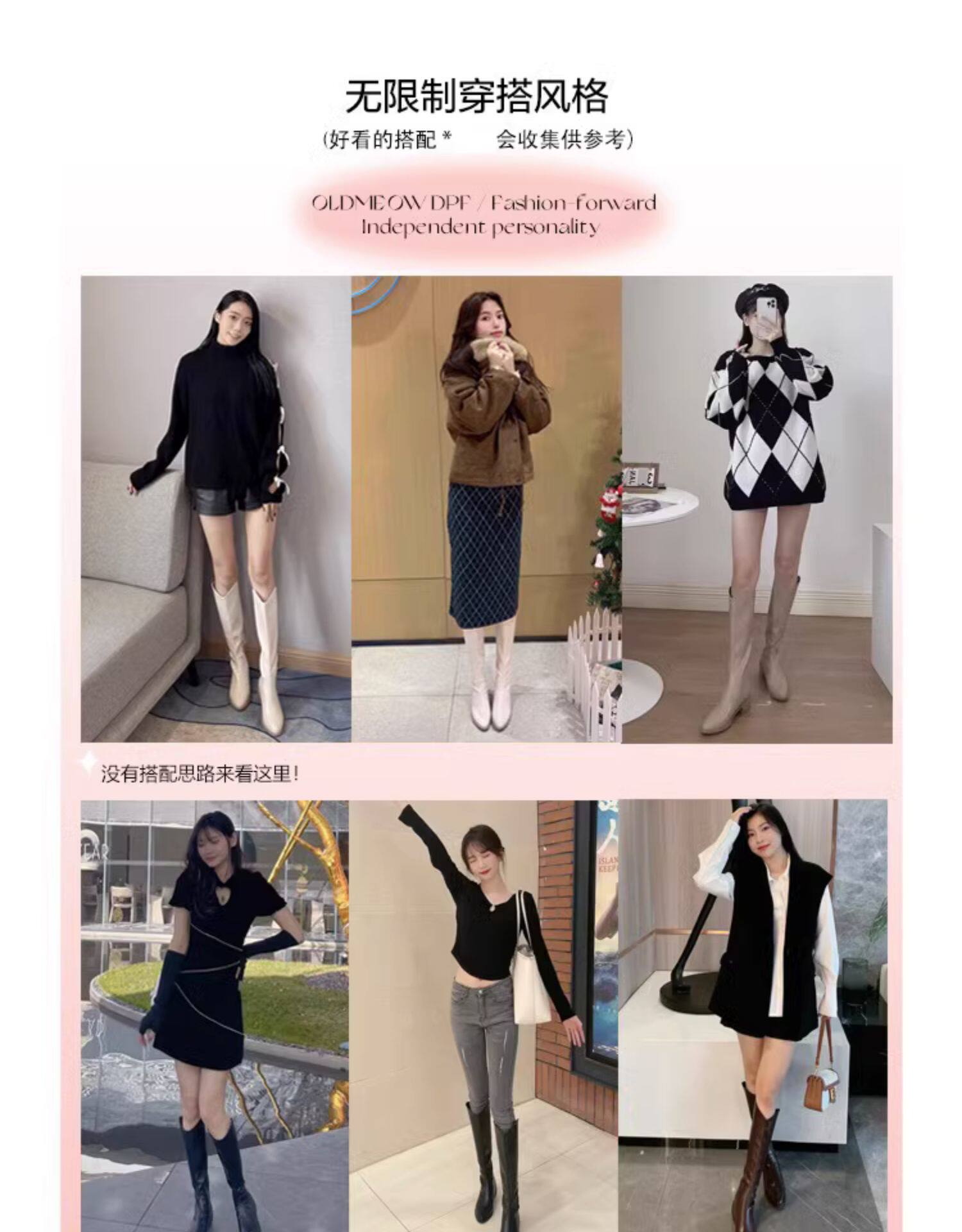 米白色騎士靴2026新款美拉德高跟V口尖頭高筒長靴小個子長筒靴女