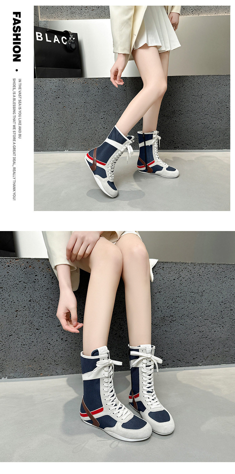 休閒平底馬丁靴德訓內增高幫中筒拳擊靴網紅長筒靴2025新款小開春
