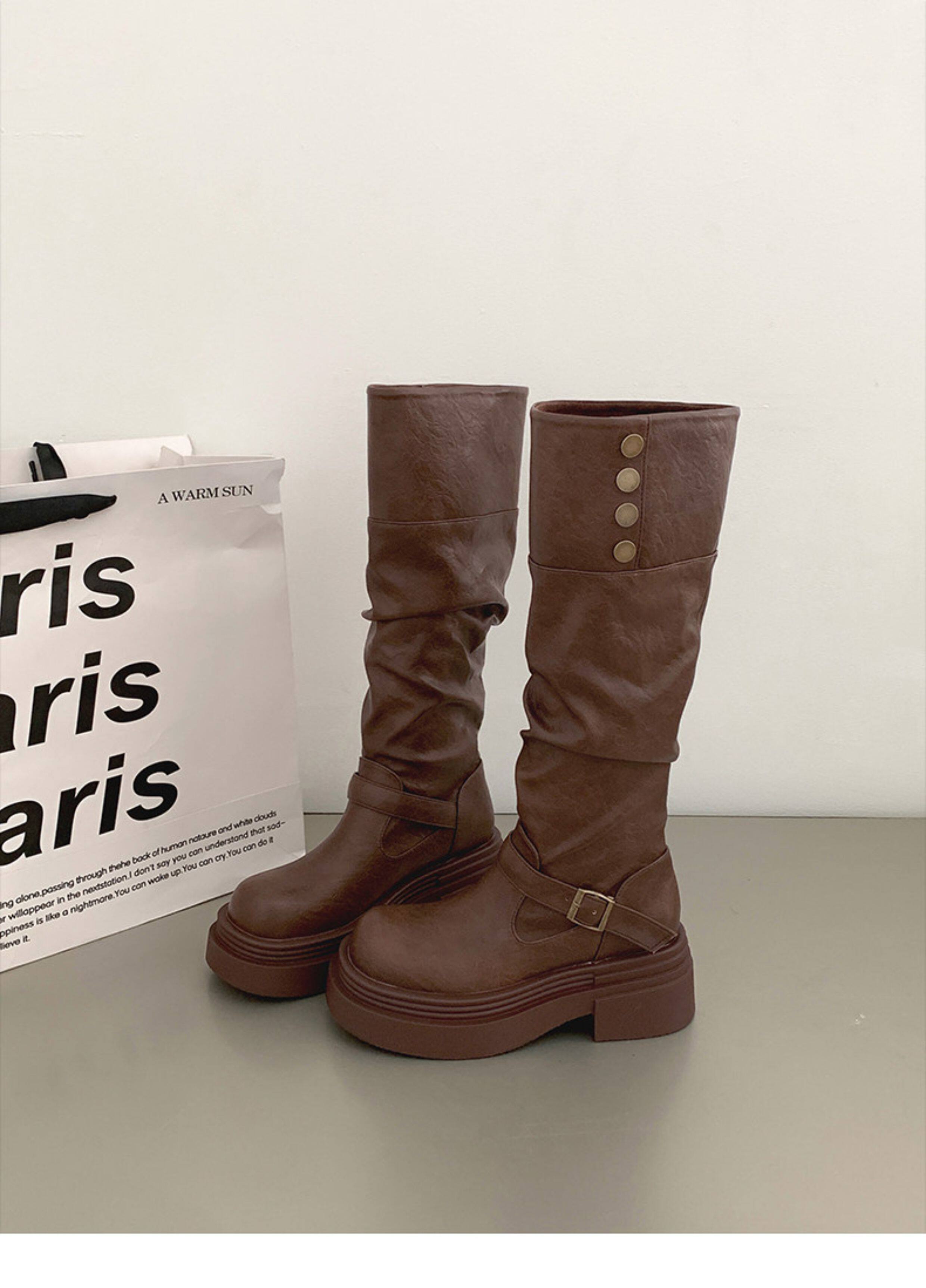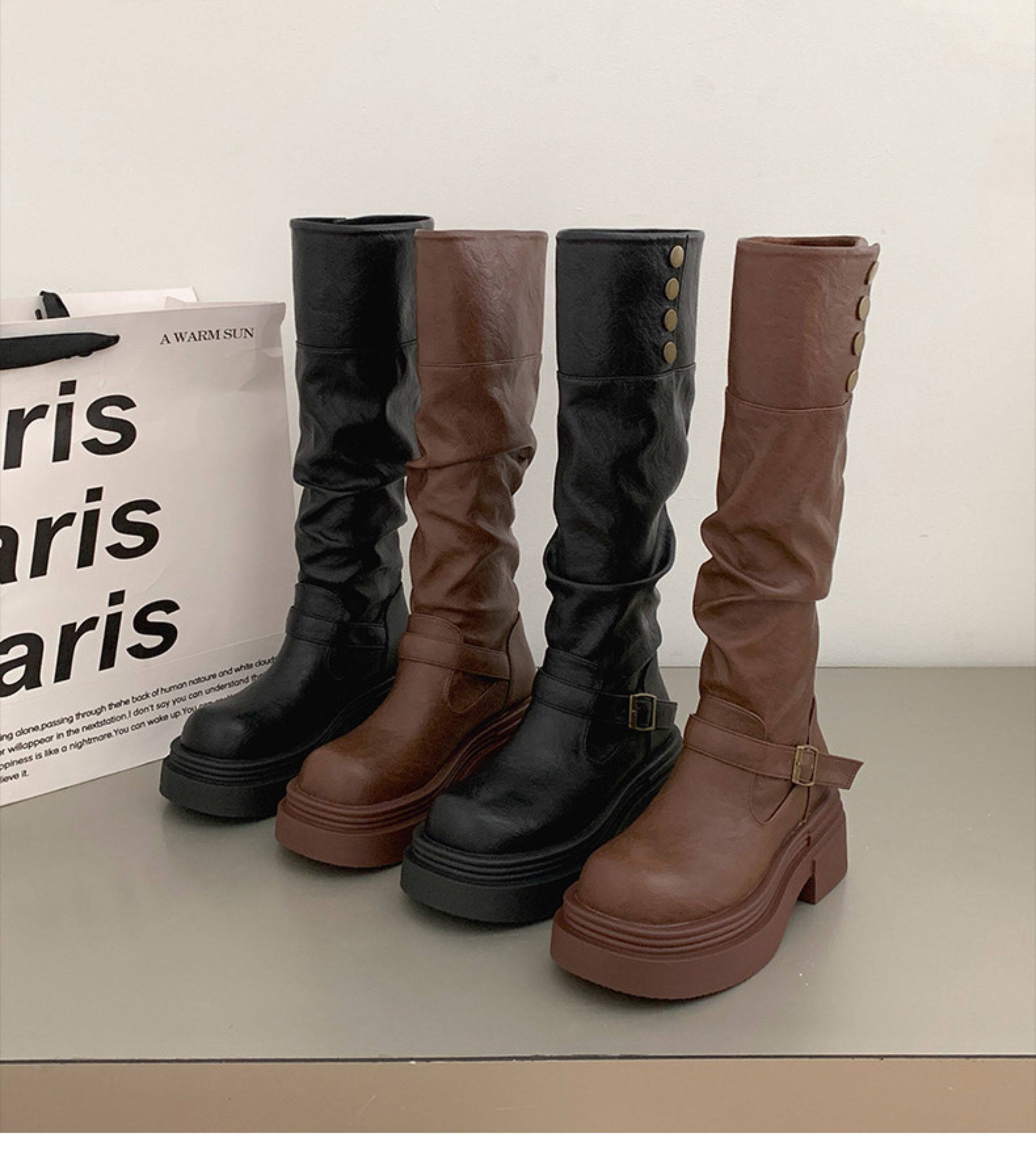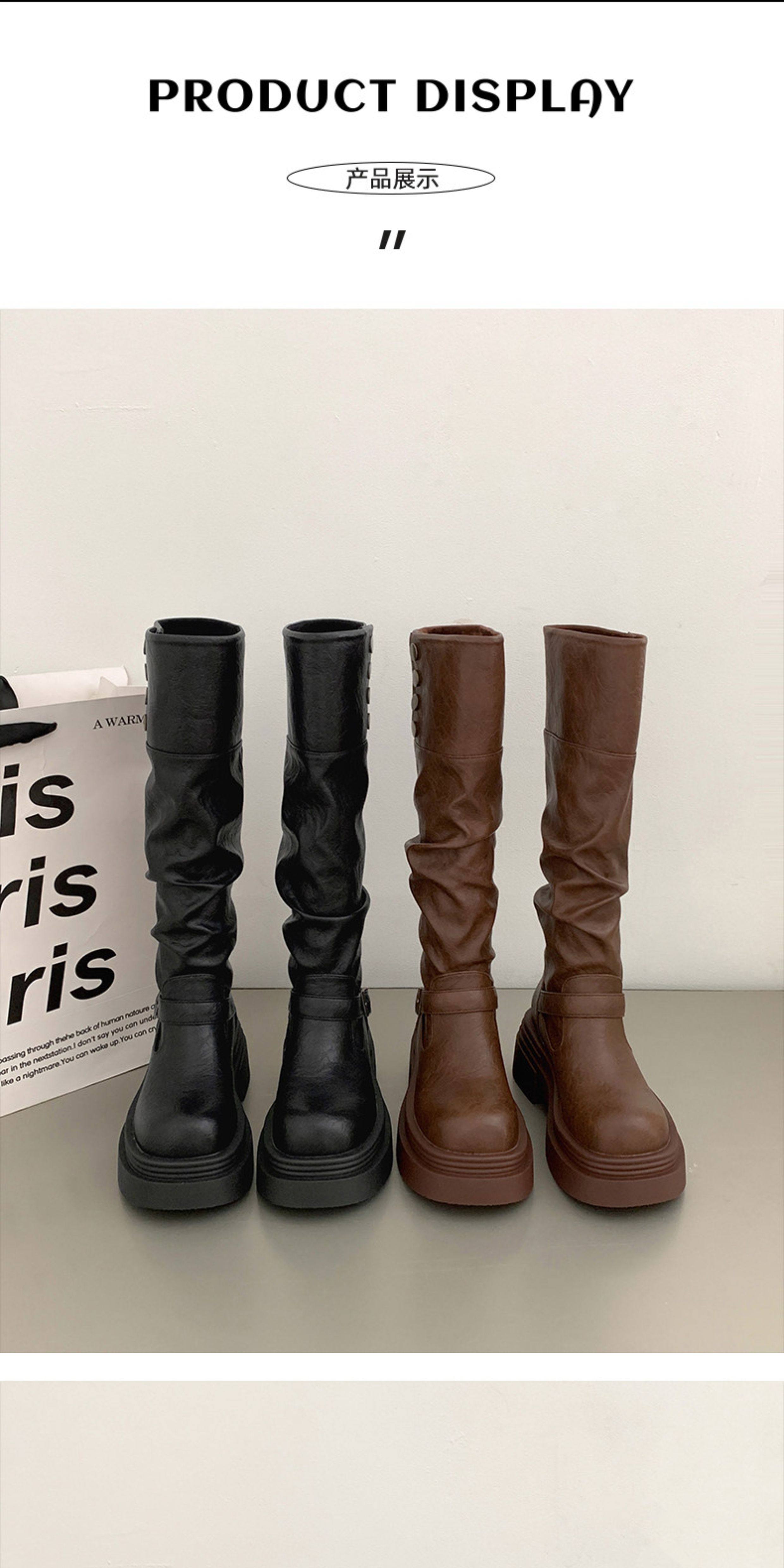 黑色高筒靴子秋冬厚底長筒靴女2025新款顯瘦增高小個子粗腿騎士靴