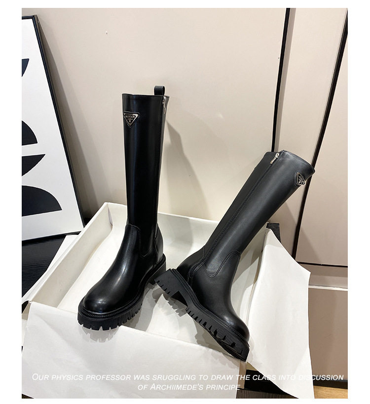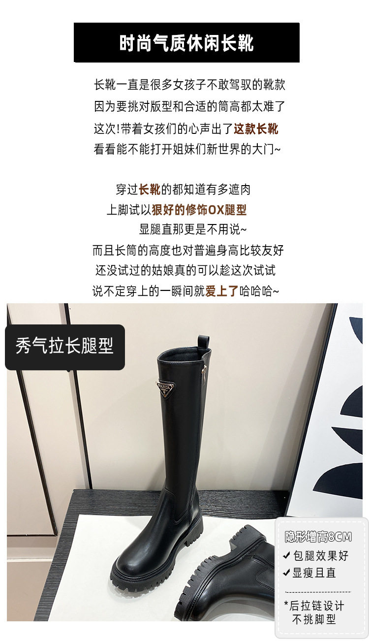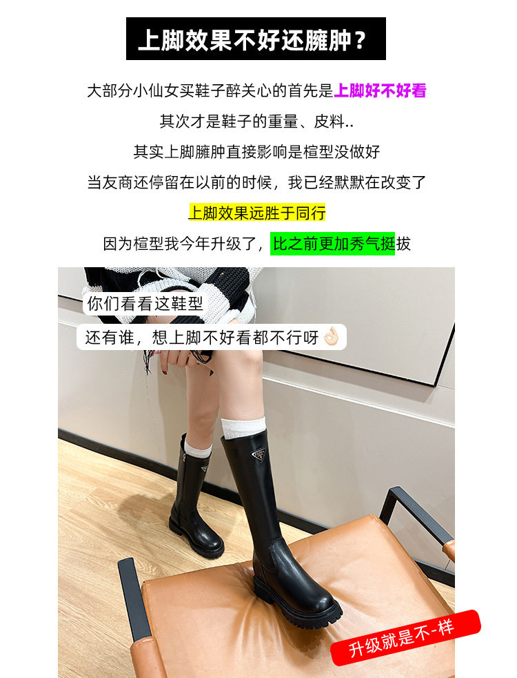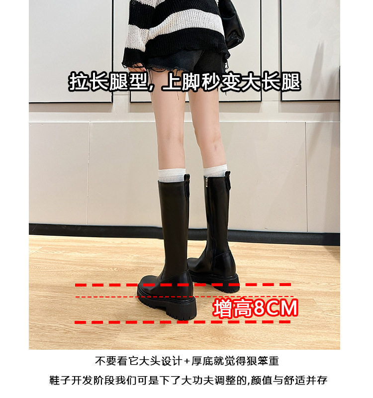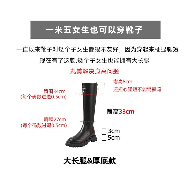 中筒高高長筒顯瘦騎士靴女三角標直筒圓頭厚底秋冬真皮內增高長靴