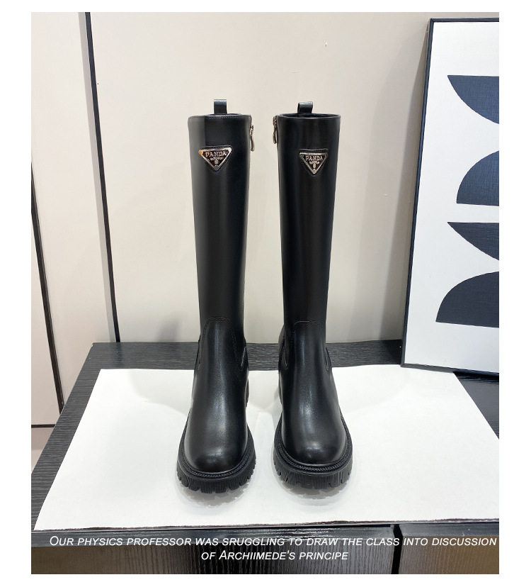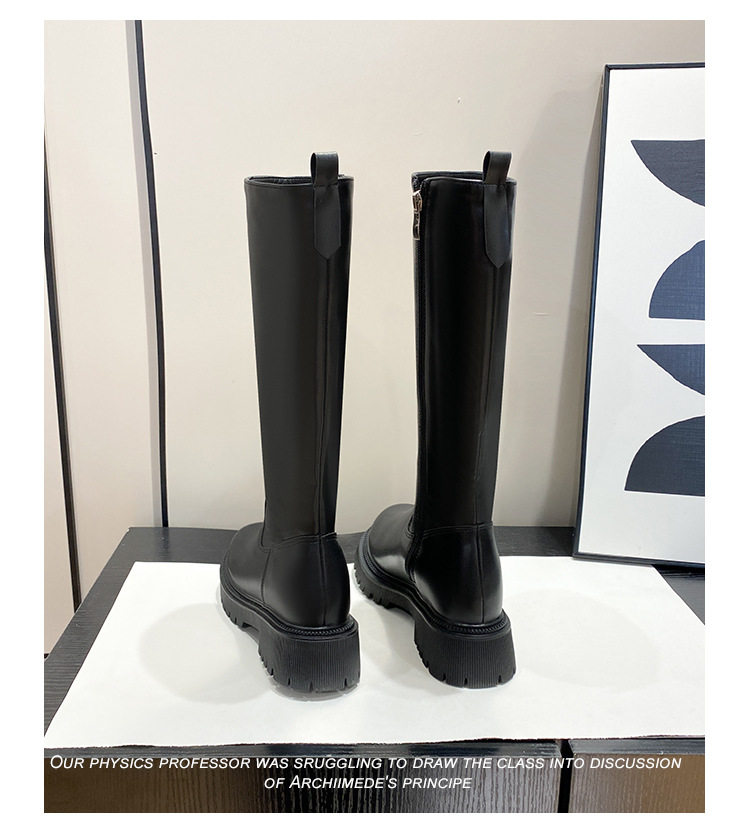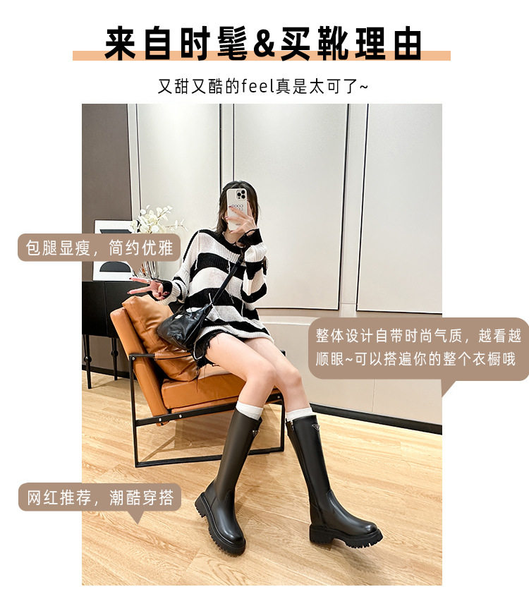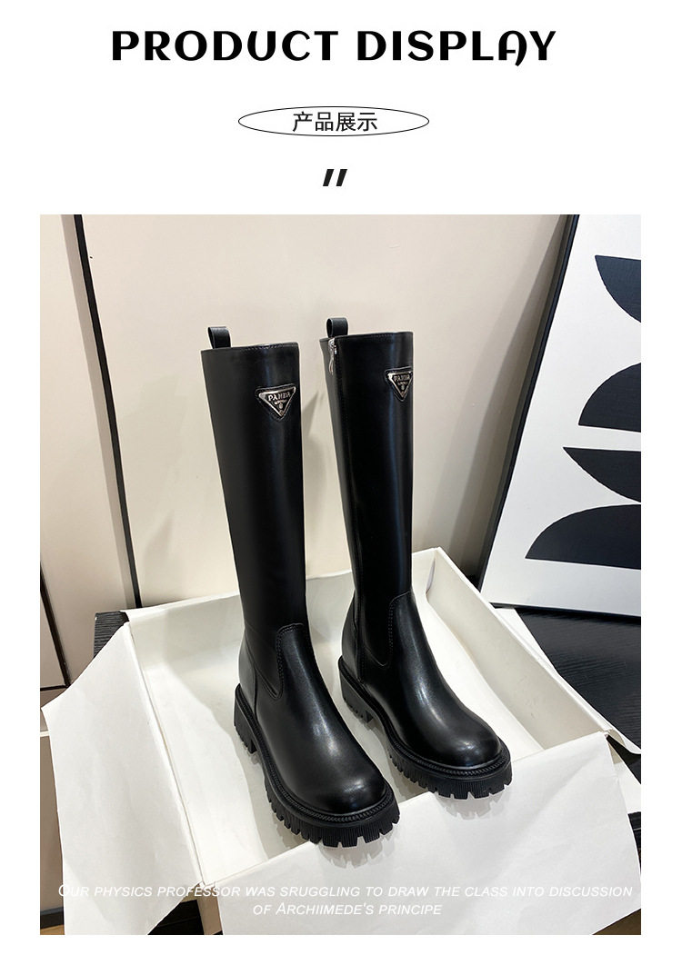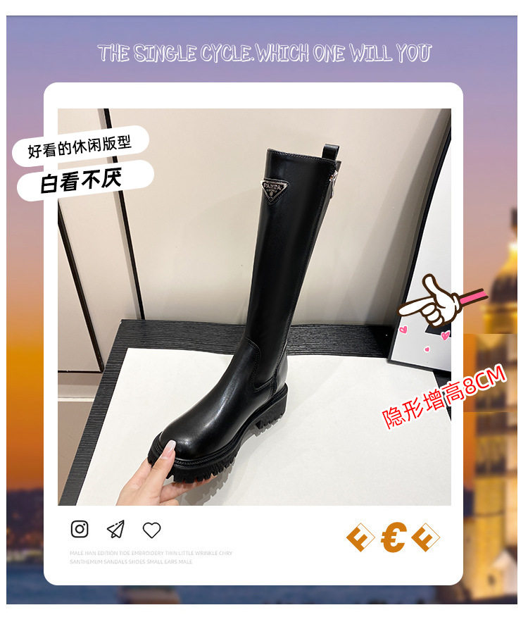 中筒高高長筒顯瘦騎士靴女三角標直筒圓頭厚底秋冬真皮內增高長靴