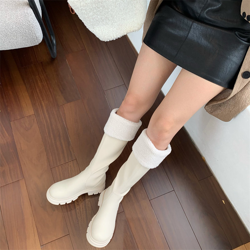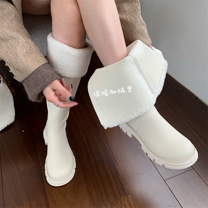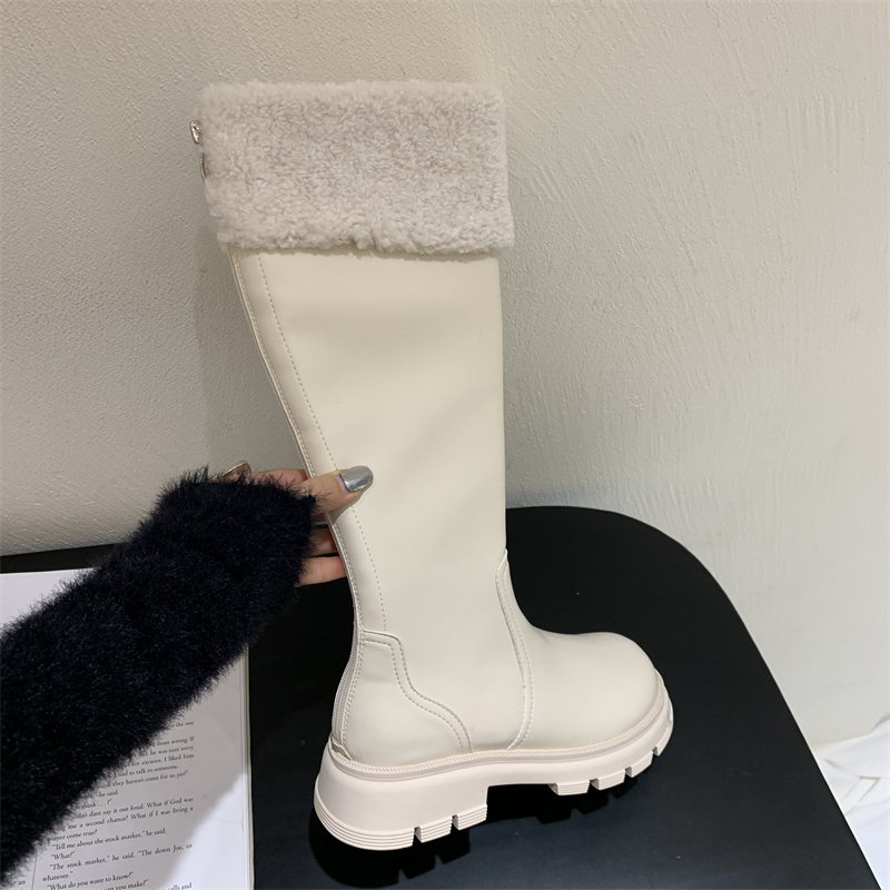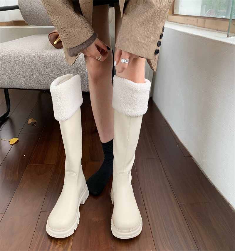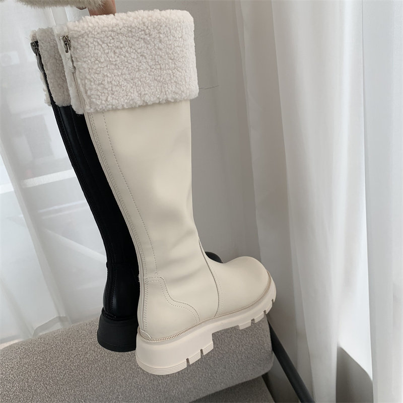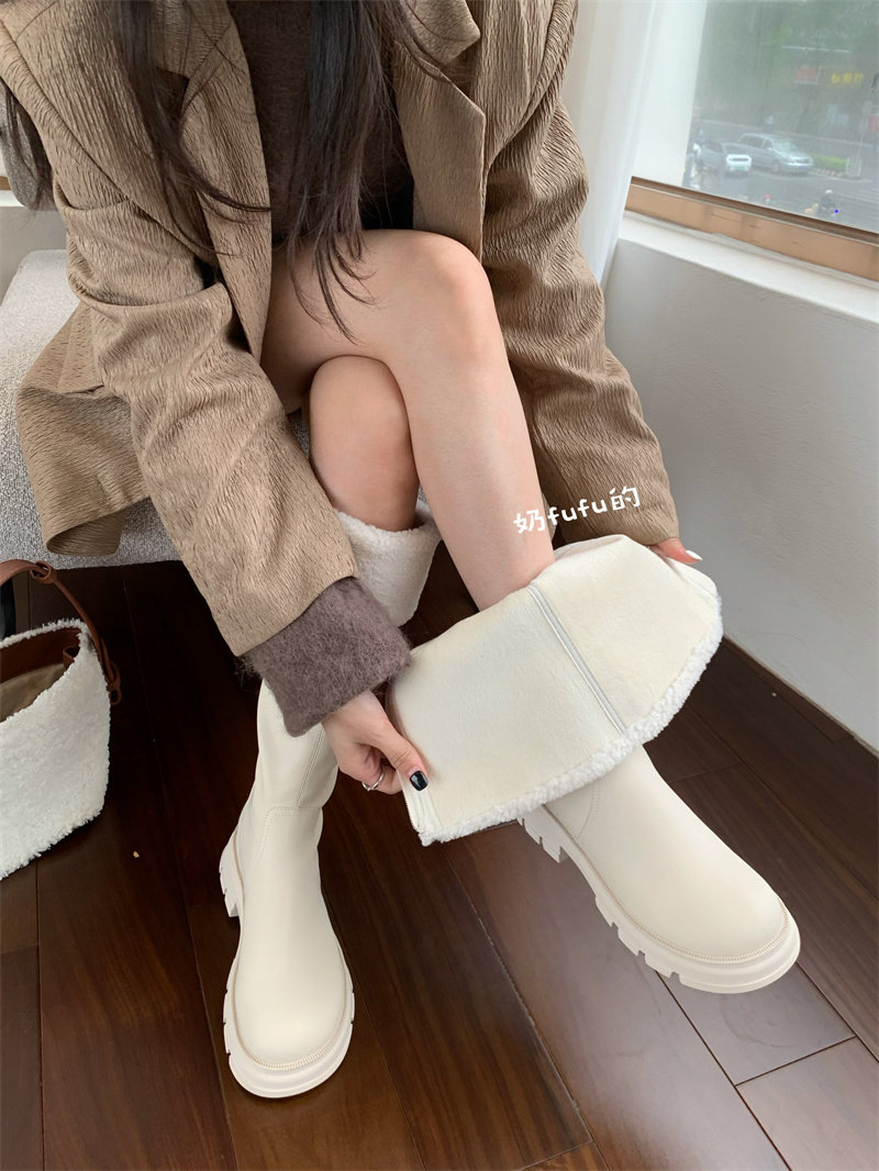 羊羔毛長筒靴女鞋2025年新款秋冬季加絨毛毛冬鞋奶白色長靴不過膝