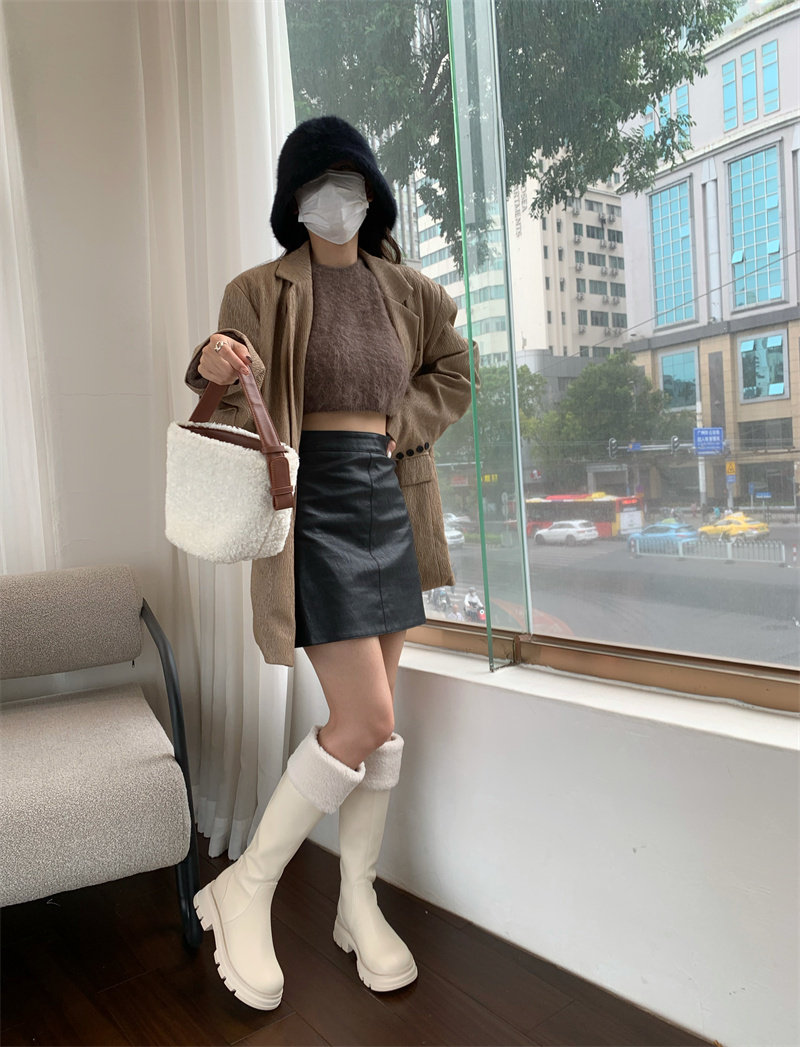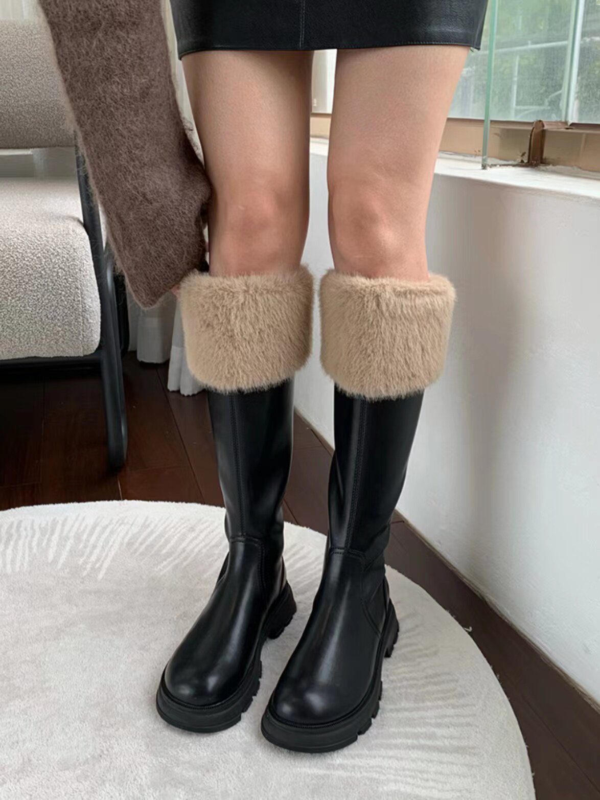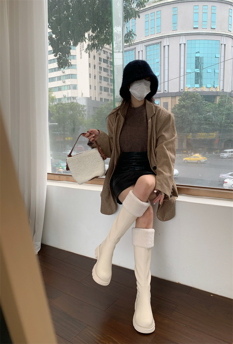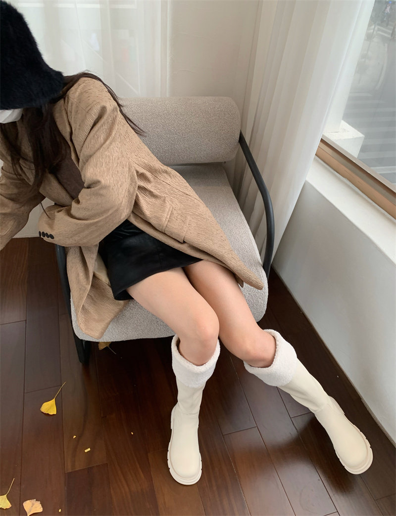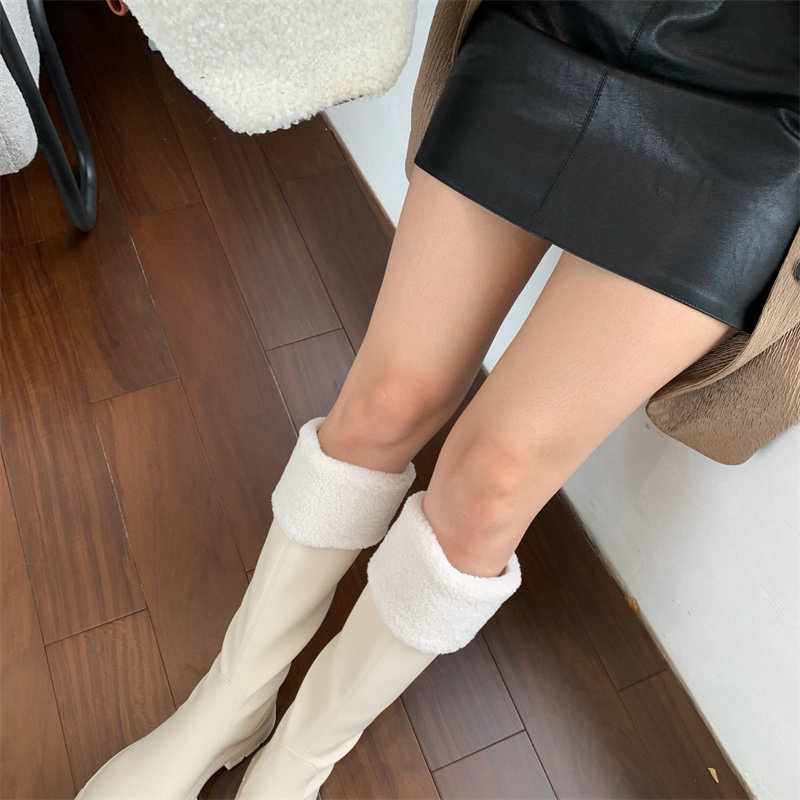 羊羔毛長筒靴女鞋2025年新款秋冬季加絨毛毛冬鞋奶白色長靴不過膝