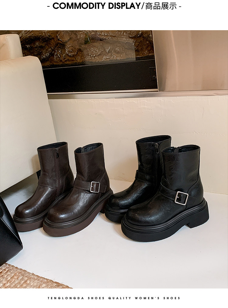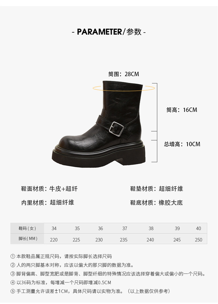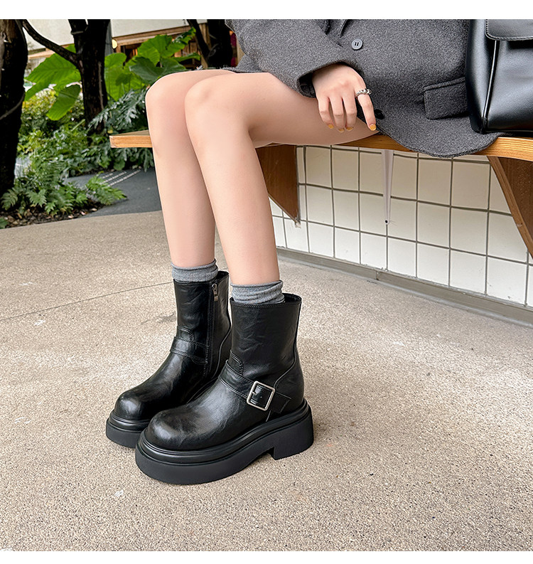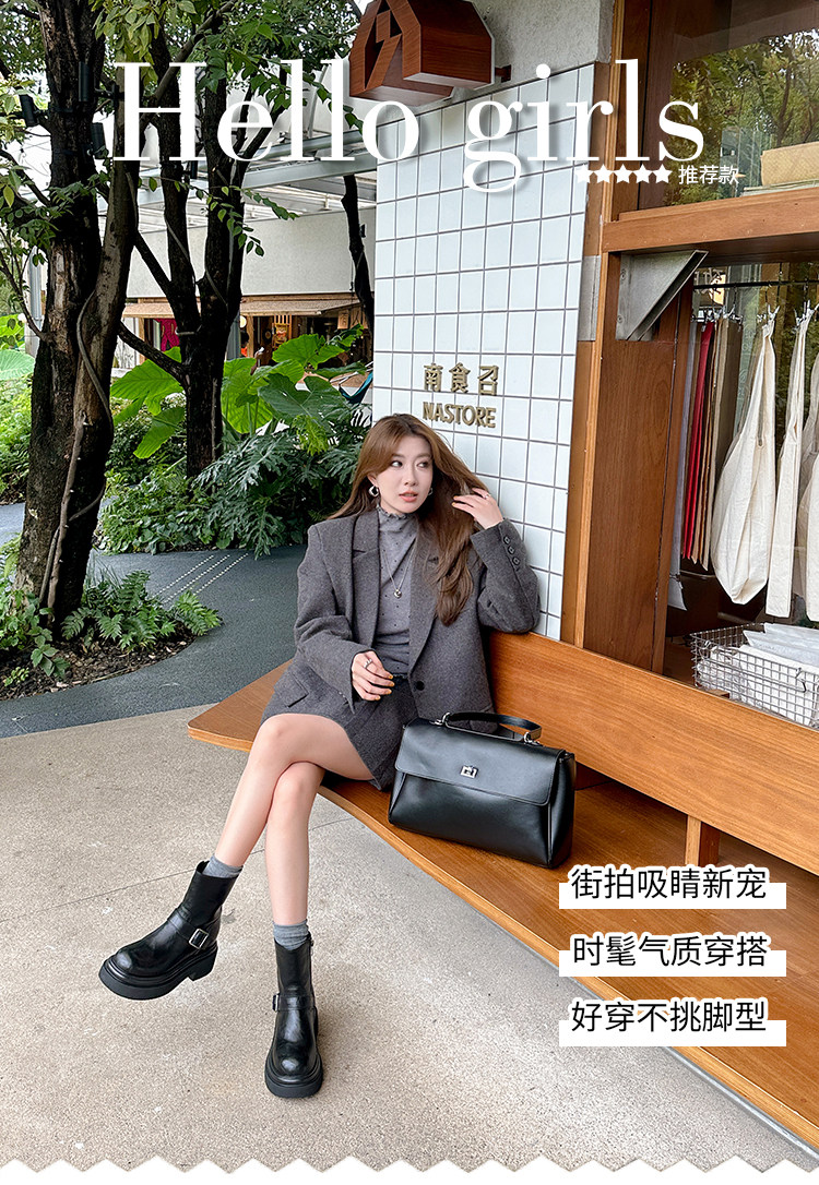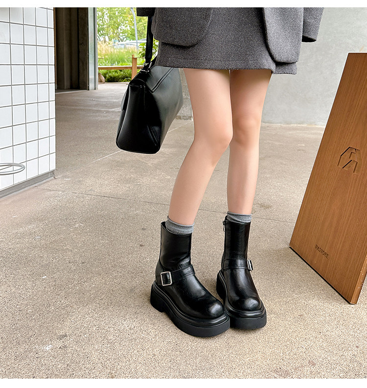 馬大樹 增高10cm~厚底褲琯靴女小個子菸筒靴切爾西馬丁靴顯瘦秋